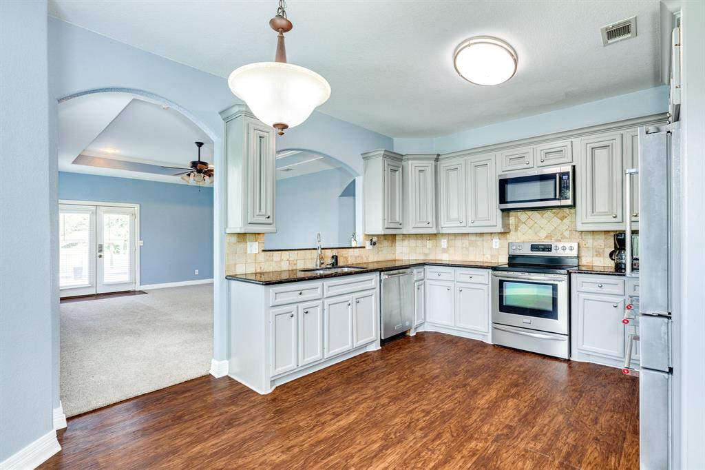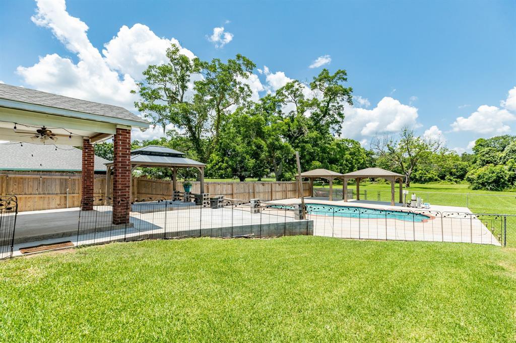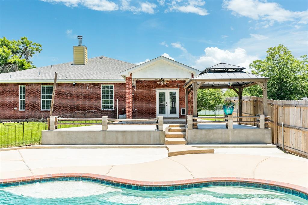 Beautiful Brick 3 bedroom 2.5 bath home located in BarX Subdivision on 2.04 acres surrounded by wildlife. There is a large acreage tract backing up to the property allowing great privacy . This home is a family's dream home with a 18,000 gallon swimming pool and covered pergolas ready for outdoor fun! This home features raised inset ceilings in all rooms, Jack and Jill bathroom between bedrooms, office/study, or possible 4th bedroom, stainless appliances, breakfast nook, formal dining room, two living areas(living room/family room) and a wood burning fireplace.Home has a motion sensing camera security system and recording monitor system valued at $16,000. Easy access to Highway 35. The home has never flooded!