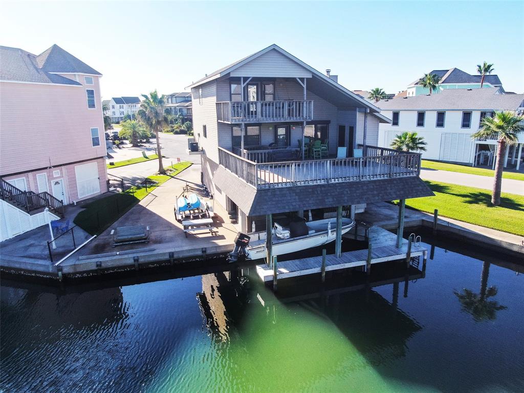 Start living on Tiki time with this 3/2 plus bonus room, built by current and only owner. There have been minimal changes, home is very well built & maintained. Nice boat dock and lift for easy docking with large waterfront. Located on deep canal this property allows for quick access to West Bay and the intracoastal. Some furnishings negotiable outside of sale. Washer, dryer and refrigerator included. Bonus room is currently being used as a study, but could be exercise, media or game room. The possibilities are endless. Large dressing room, exercise room or bonus room as you go into the large master closet. You can even enlarge the master closet if you need more space!! A must see!!