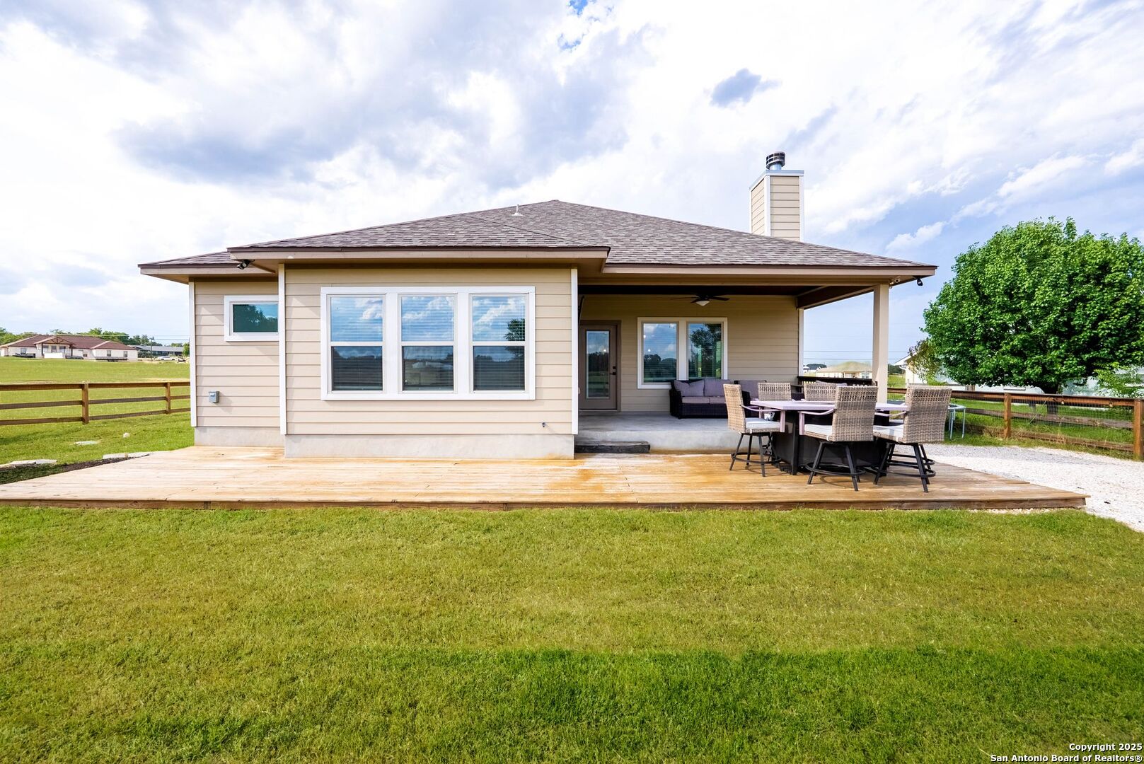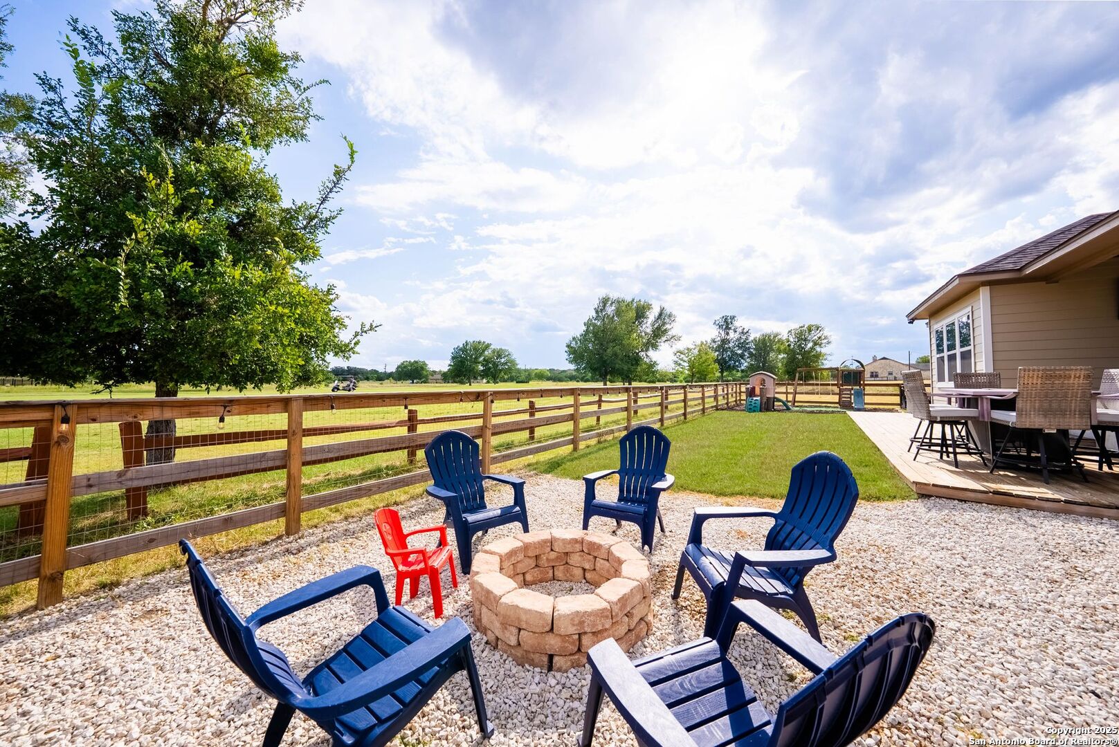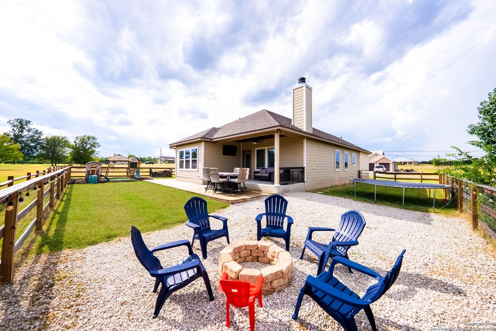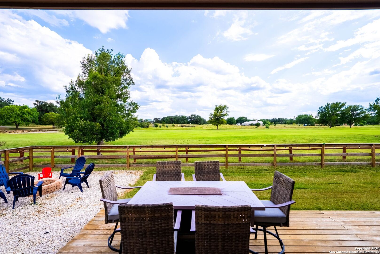 Welcome to your Hill Country retreat, where modern comfort meets resort-style living in the heart of Bandera, Texas, famously known as "The Cowboy Capital of the World." This stunning home sits on the Flying L Ranch Resort and Golf Course, offering not just a place to live but a lifestyle that blends the charm of Texas hospitality with the ease of everyday luxury. From the moment you arrive, the stone exterior sets the tone with timeless elegance. Step inside to find hardwood-look tile flooring that stretches throughout the home, bringing warmth and durability with none of the upkeep of carpet. The living room is anchored by a beautiful fireplace, the perfect spot to gather on cool evenings as flames flicker and laughter fills the air. The kitchen is a dream for both the seasoned cook and the takeout enthusiast. Crisp white cabinets, sleek quartz countertops, and a spacious layout invite everything from quiet morning coffee rituals to lively weekend brunches with friends. As the sunlight streams through the windows, you can already imagine the rhythm of daily life unfolding here. The spa-inspired primary suite feels like a personal retreat at the end of each day. Pamper yourself in the oversized shower or soak away stress in the deep garden tub. A huge walk-in closet ensures space for every season and occasion, making getting ready each morning a pleasure instead of a chore. Step outside to find your own private sanctuary. With no rear neighbor, you'll enjoy uninterrupted golf course views framed by majestic Texas hills. A covered patio opens to an extended deck and dedicated fireplace area, perfect for evening conversations under the stars or weekend barbecues while watching golfers in the distance. The expanded driveway offers space for RVs and boats, while the fenced backyard keeps pets and children safe as they explore. Life at Flying L Ranch is about more than the home. This is about the community and amenities that make every day feel like a vacation. Tee off on the golf course surrounded by breathtaking scenery, cool off at the resort-style pool that's open year-round, or enjoy an afternoon match of basketball, tennis, sand volleyball, or pickleball. Kids will love the playgrounds while adults can relax by the campfire. For quieter moments, head Creekside along the San Julian River for fishing and reflection, or gather friends for a round of western-themed miniature golf. This home is more than a property. It is a chance to live where neighbors become friends, where weekends are filled with recreation and relaxation, and where every sunset reminds you why you chose the Texas Hill Country.