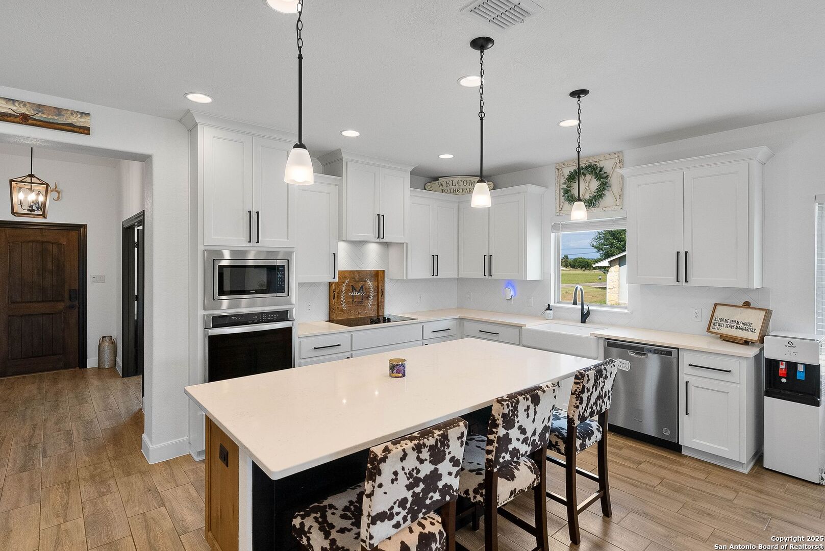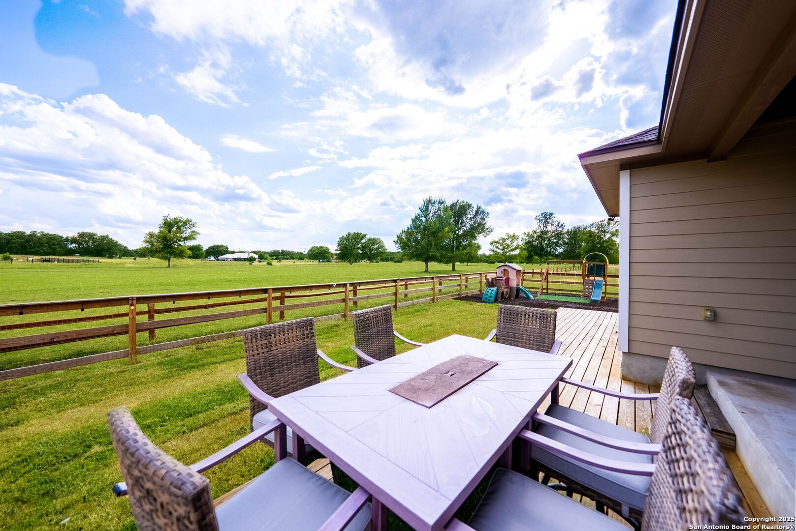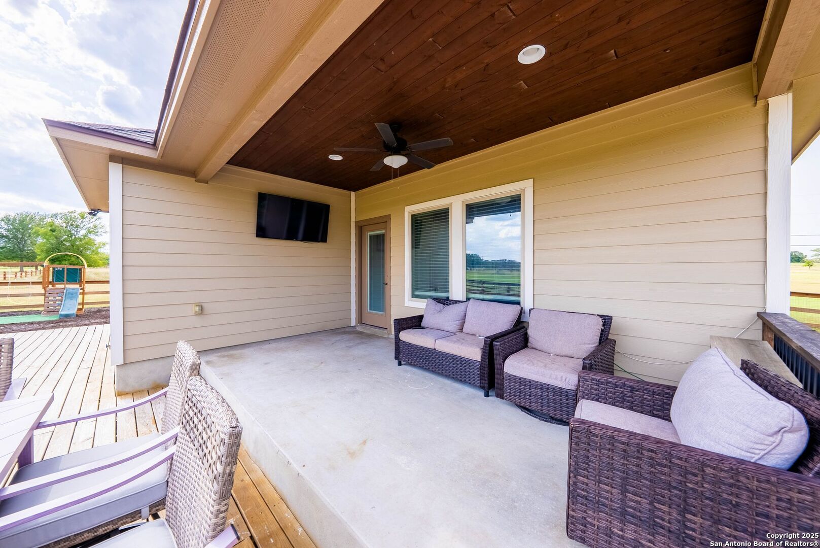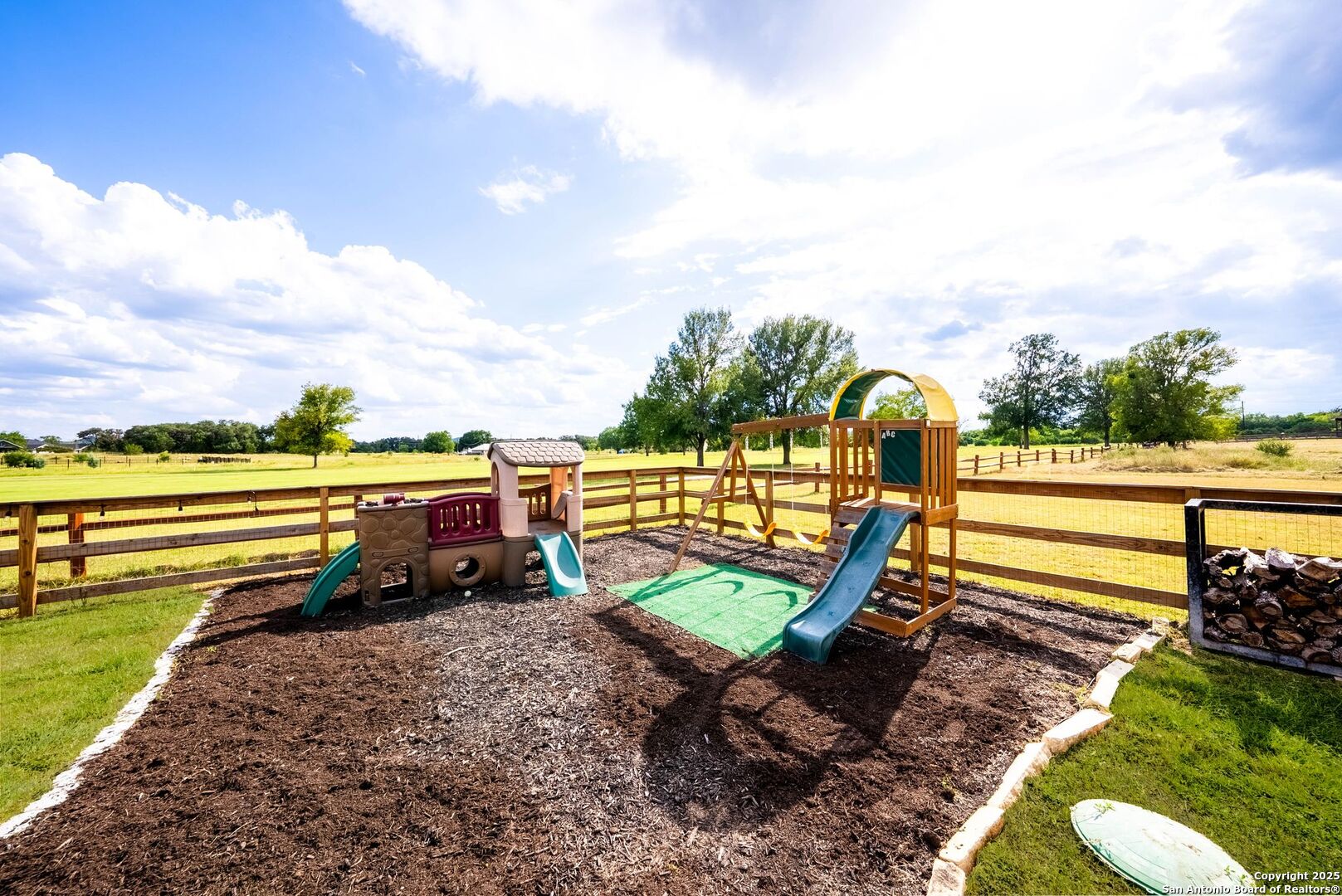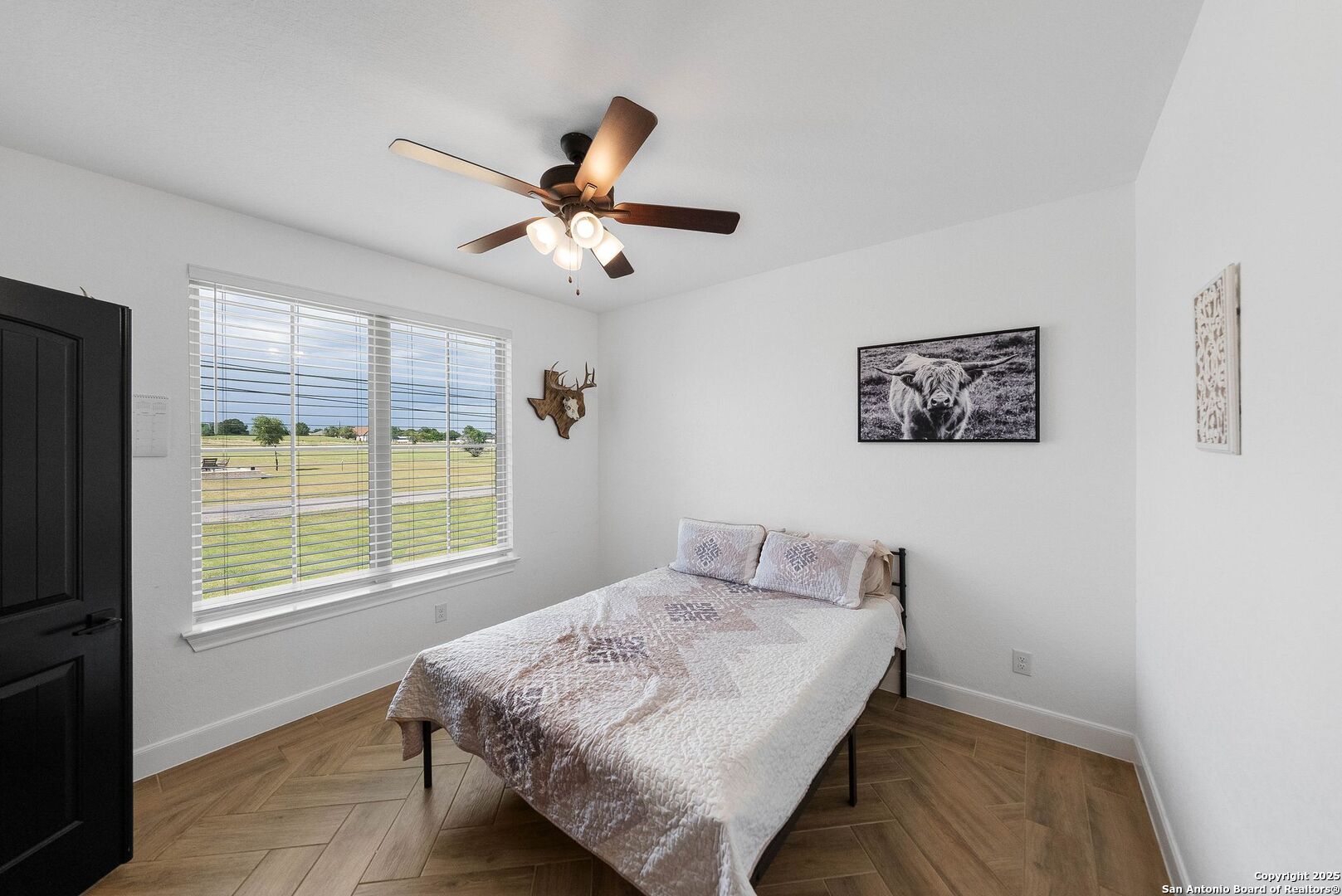 Welcome to your Hill Country retreat, where modern comfort meets resort-style living in the heart of Bandera, Texas, famously known as "The Cowboy Capital of the World." This stunning home sits on the Flying L Ranch Resort and Golf Course, offering not just a place to live but a lifestyle that blends the charm of Texas hospitality with the ease of everyday luxury. From the moment you arrive, the stone exterior sets the tone with timeless elegance. Step inside to find hardwood-look tile flooring that stretches throughout the home, bringing warmth and durability with none of the upkeep of carpet. The living room is anchored by a beautiful fireplace, the perfect spot to gather on cool evenings as flames flicker and laughter fills the air. The kitchen is a dream for both the seasoned cook and the takeout enthusiast. Crisp white cabinets, sleek quartz countertops, and a spacious layout invite everything from quiet morning coffee rituals to lively weekend brunches with friends. As the sunlight streams through the windows, you can already imagine the rhythm of daily life unfolding here. The spa-inspired primary suite feels like a personal retreat at the end of each day. Pamper yourself in the oversized shower or soak away stress in the deep garden tub. A huge walk-in closet ensures space for every season and occasion, making getting ready each morning a pleasure instead of a chore. Step outside to find your own private sanctuary. With no rear neighbor, you'll enjoy uninterrupted golf course views framed by majestic Texas hills. A covered patio opens to an extended deck and dedicated fireplace area, perfect for evening conversations under the stars or weekend barbecues while watching golfers in the distance. The expanded driveway offers space for RVs and boats, while the fenced backyard keeps pets and children safe as they explore. Life at Flying L Ranch is about more than the home. This is about the community and amenities that make every day feel like a vacation. Tee off on the golf course surrounded by breathtaking scenery, cool off at the resort-style pool that's open year-round, or enjoy an afternoon match of basketball, tennis, sand volleyball, or pickleball. Kids will love the playgrounds while adults can relax by the campfire. For quieter moments, head Creekside along the San Julian River for fishing and reflection, or gather friends for a round of western-themed miniature golf. This home is more than a property. It is a chance to live where neighbors become friends, where weekends are filled with recreation and relaxation, and where every sunset reminds you why you chose the Texas Hill Country.