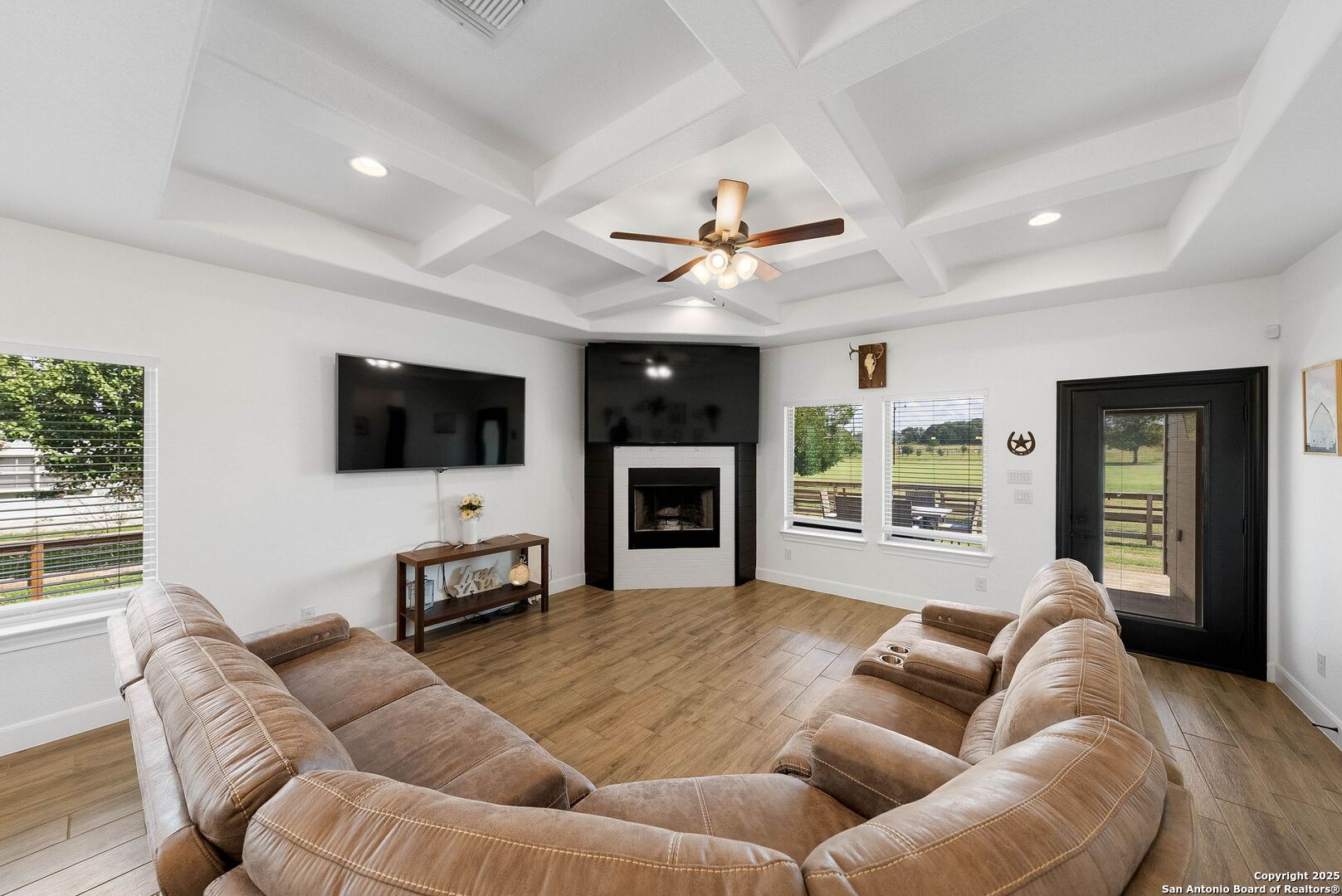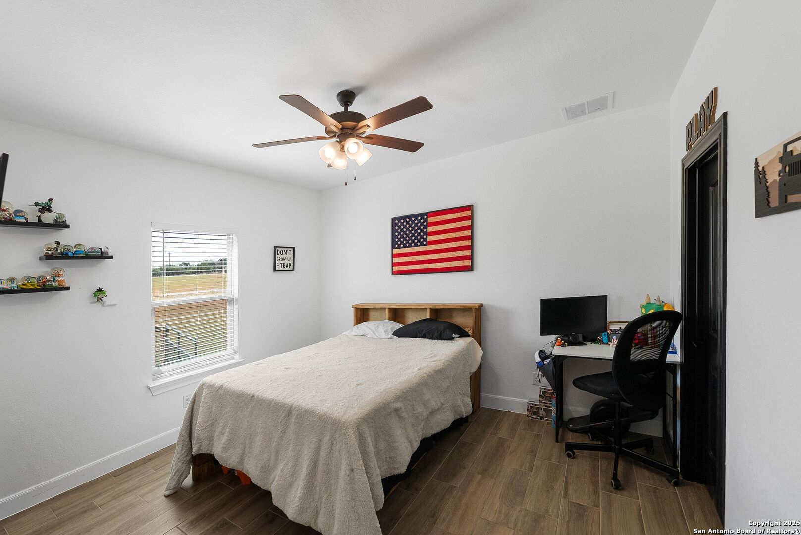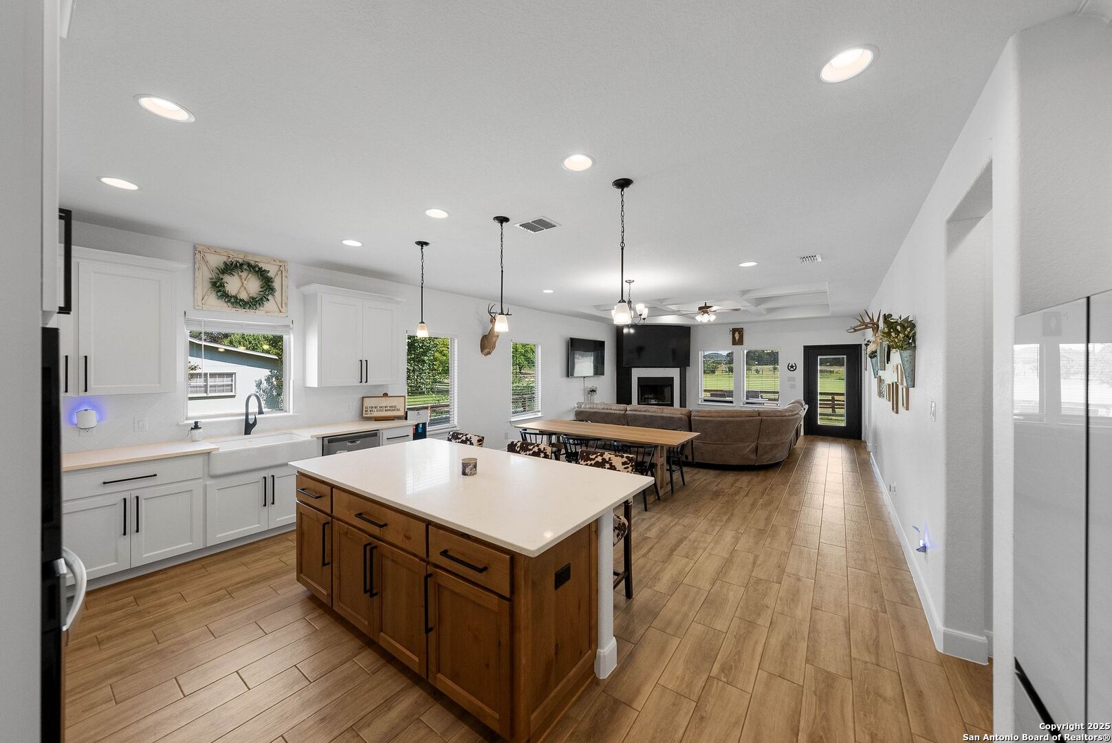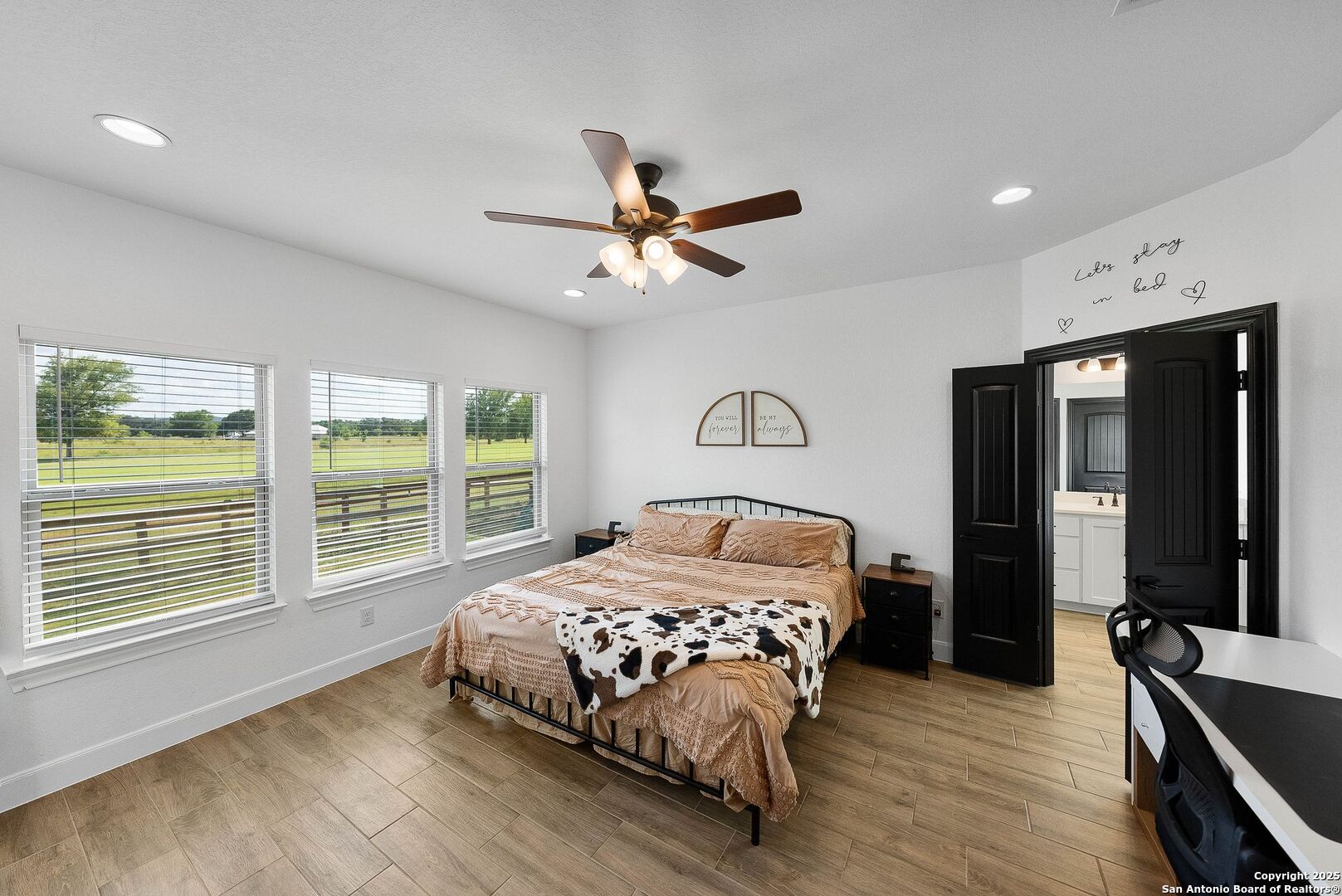 Welcome to your Hill Country retreat, where modern comfort meets resort-style living in the heart of Bandera, Texas, famously known as "The Cowboy Capital of the World." This stunning home sits on the Flying L Ranch Resort and Golf Course, offering not just a place to live but a lifestyle that blends the charm of Texas hospitality with the ease of everyday luxury. From the moment you arrive, the stone exterior sets the tone with timeless elegance. Step inside to find hardwood-look tile flooring that stretches throughout the home, bringing warmth and durability with none of the upkeep of carpet. The living room is anchored by a beautiful fireplace, the perfect spot to gather on cool evenings as flames flicker and laughter fills the air. The kitchen is a dream for both the seasoned cook and the takeout enthusiast. Crisp white cabinets, sleek quartz countertops, and a spacious layout invite everything from quiet morning coffee rituals to lively weekend brunches with friends. As the sunlight streams through the windows, you can already imagine the rhythm of daily life unfolding here. The spa-inspired primary suite feels like a personal retreat at the end of each day. Pamper yourself in the oversized shower or soak away stress in the deep garden tub. A huge walk-in closet ensures space for every season and occasion, making getting ready each morning a pleasure instead of a chore. Step outside to find your own private sanctuary. With no rear neighbor, you'll enjoy uninterrupted golf course views framed by majestic Texas hills. A covered patio opens to an extended deck and dedicated fireplace area, perfect for evening conversations under the stars or weekend barbecues while watching golfers in the distance. The expanded driveway offers space for RVs and boats, while the fenced backyard keeps pets and children safe as they explore. Life at Flying L Ranch is about more than the home. This is about the community and amenities that make every day feel like a vacation. Tee off on the golf course surrounded by breathtaking scenery, cool off at the resort-style pool that's open year-round, or enjoy an afternoon match of basketball, tennis, sand volleyball, or pickleball. Kids will love the playgrounds while adults can relax by the campfire. For quieter moments, head Creekside along the San Julian River for fishing and reflection, or gather friends for a round of western-themed miniature golf. This home is more than a property. It is a chance to live where neighbors become friends, where weekends are filled with recreation and relaxation, and where every sunset reminds you why you chose the Texas Hill Country.