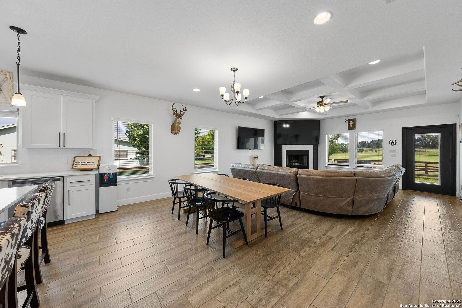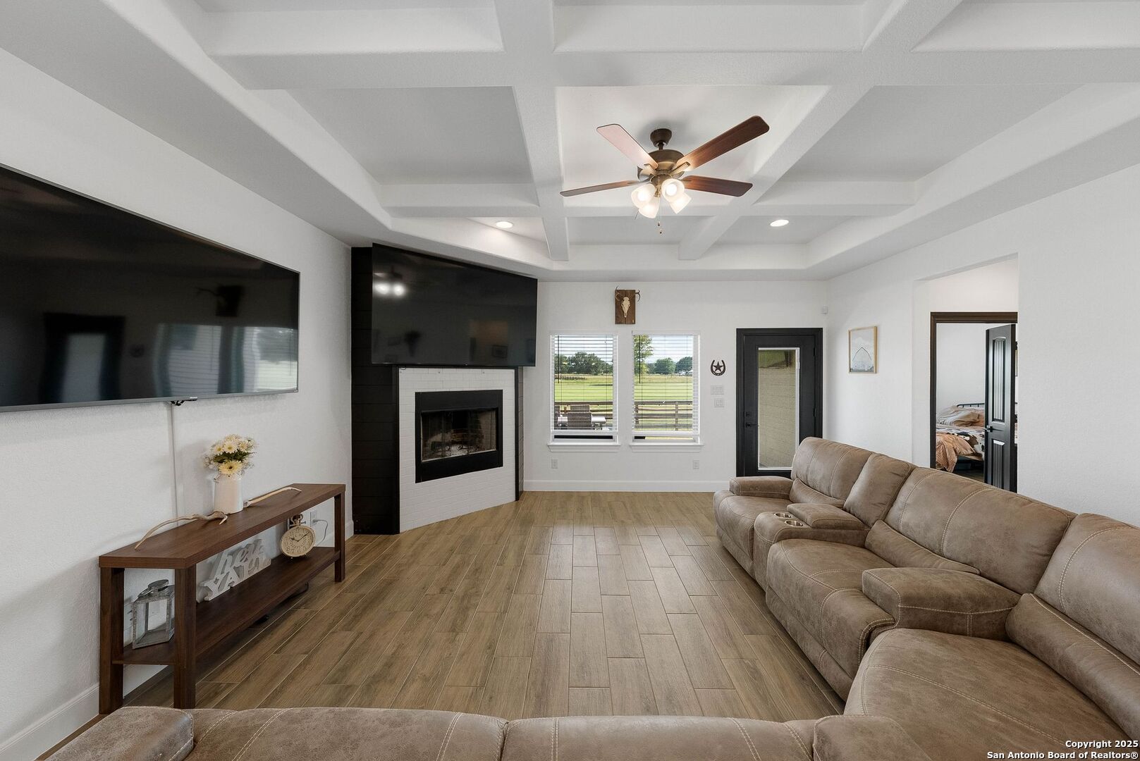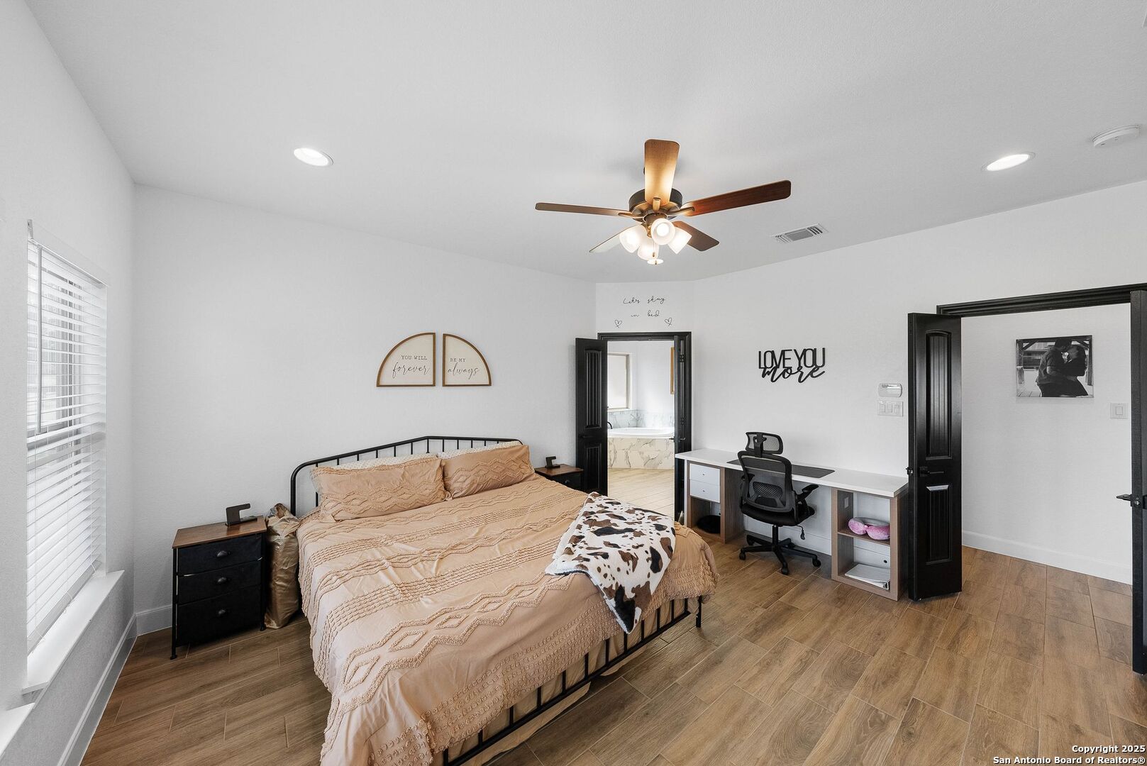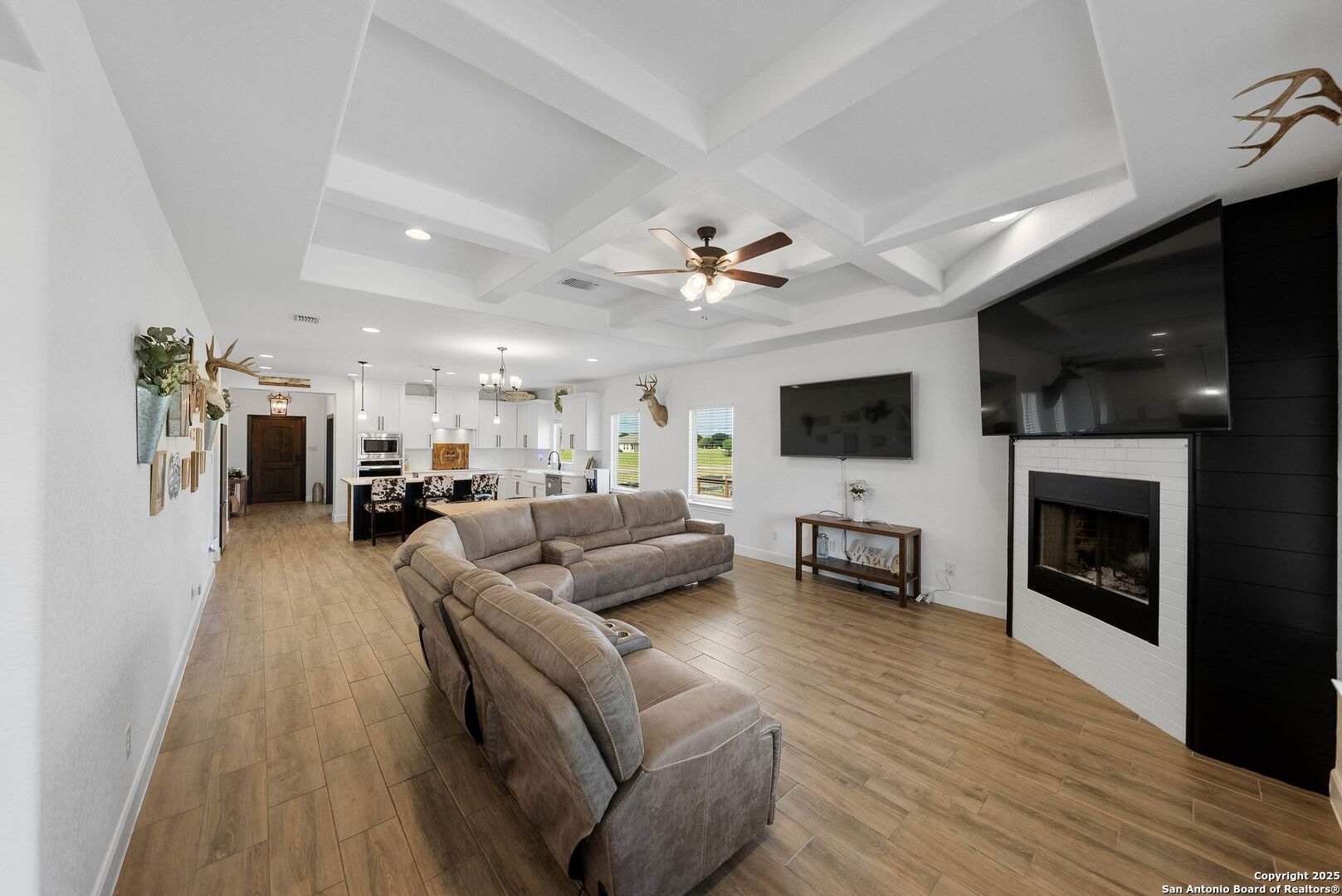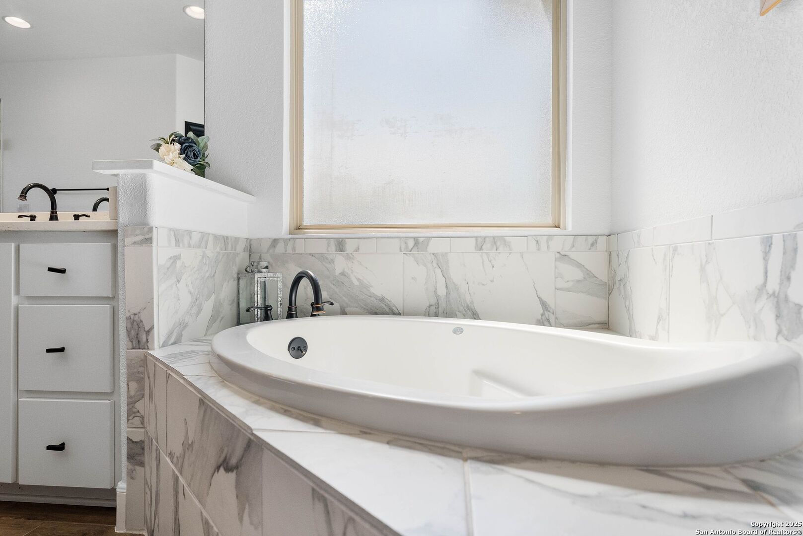 Welcome to your Hill Country retreat, where modern comfort meets resort-style living in the heart of Bandera, Texas, famously known as "The Cowboy Capital of the World." This stunning home sits on the Flying L Ranch Resort and Golf Course, offering not just a place to live but a lifestyle that blends the charm of Texas hospitality with the ease of everyday luxury. From the moment you arrive, the stone exterior sets the tone with timeless elegance. Step inside to find hardwood-look tile flooring that stretches throughout the home, bringing warmth and durability with none of the upkeep of carpet. The living room is anchored by a beautiful fireplace, the perfect spot to gather on cool evenings as flames flicker and laughter fills the air. The kitchen is a dream for both the seasoned cook and the takeout enthusiast. Crisp white cabinets, sleek quartz countertops, and a spacious layout invite everything from quiet morning coffee rituals to lively weekend brunches with friends. As the sunlight streams through the windows, you can already imagine the rhythm of daily life unfolding here. The spa-inspired primary suite feels like a personal retreat at the end of each day. Pamper yourself in the oversized shower or soak away stress in the deep garden tub. A huge walk-in closet ensures space for every season and occasion, making getting ready each morning a pleasure instead of a chore. Step outside to find your own private sanctuary. With no rear neighbor, you'll enjoy uninterrupted golf course views framed by majestic Texas hills. A covered patio opens to an extended deck and dedicated fireplace area, perfect for evening conversations under the stars or weekend barbecues while watching golfers in the distance. The expanded driveway offers space for RVs and boats, while the fenced backyard keeps pets and children safe as they explore. Life at Flying L Ranch is about more than the home. This is about the community and amenities that make every day feel like a vacation. Tee off on the golf course surrounded by breathtaking scenery, cool off at the resort-style pool that's open year-round, or enjoy an afternoon match of basketball, tennis, sand volleyball, or pickleball. Kids will love the playgrounds while adults can relax by the campfire. For quieter moments, head Creekside along the San Julian River for fishing and reflection, or gather friends for a round of western-themed miniature golf. This home is more than a property. It is a chance to live where neighbors become friends, where weekends are filled with recreation and relaxation, and where every sunset reminds you why you chose the Texas Hill Country.