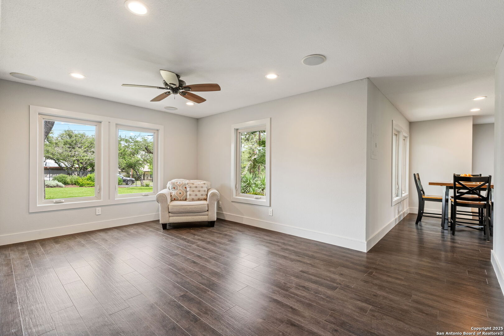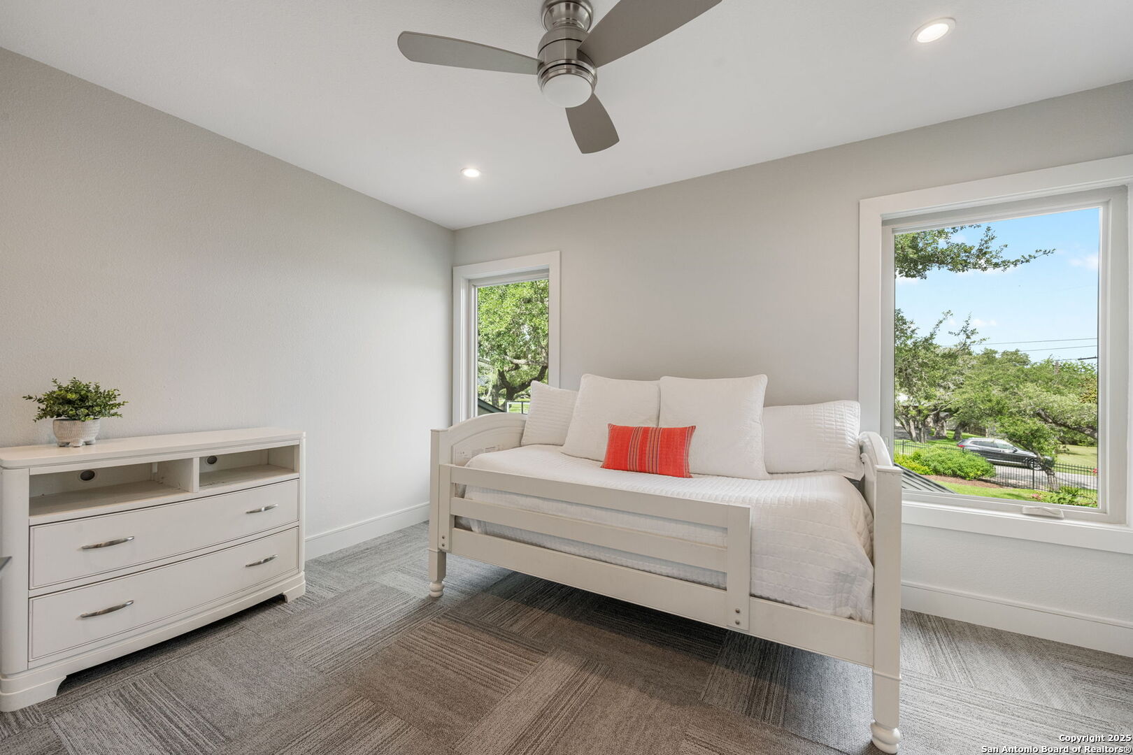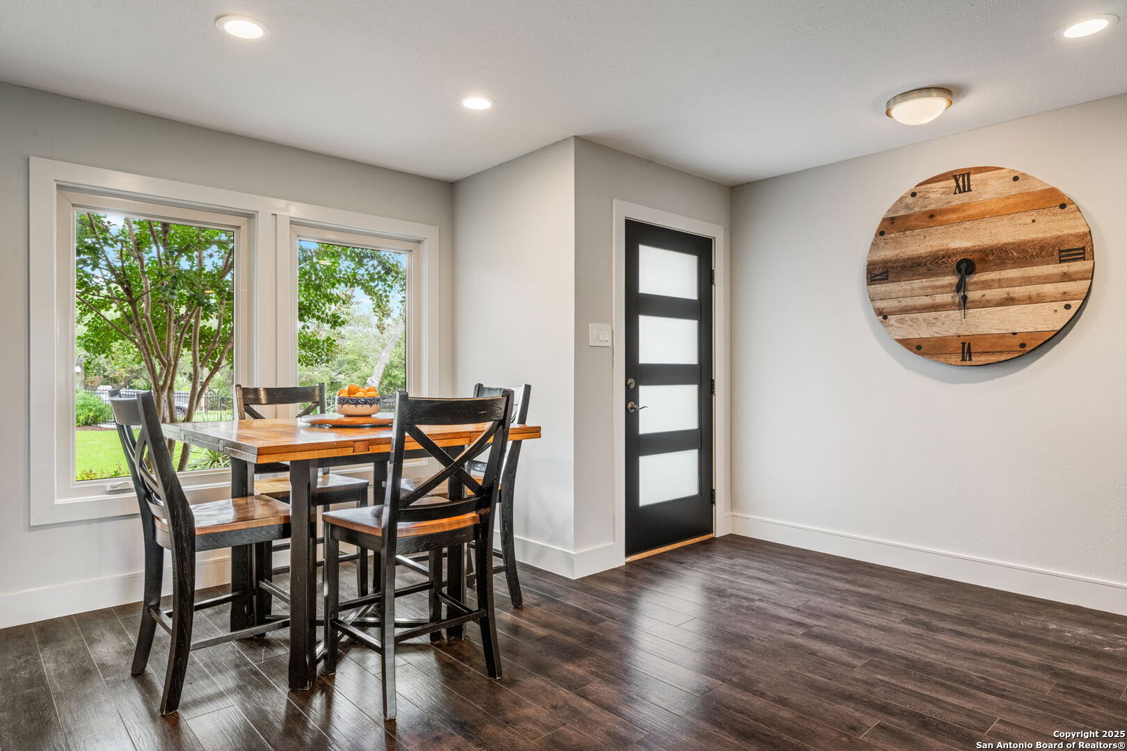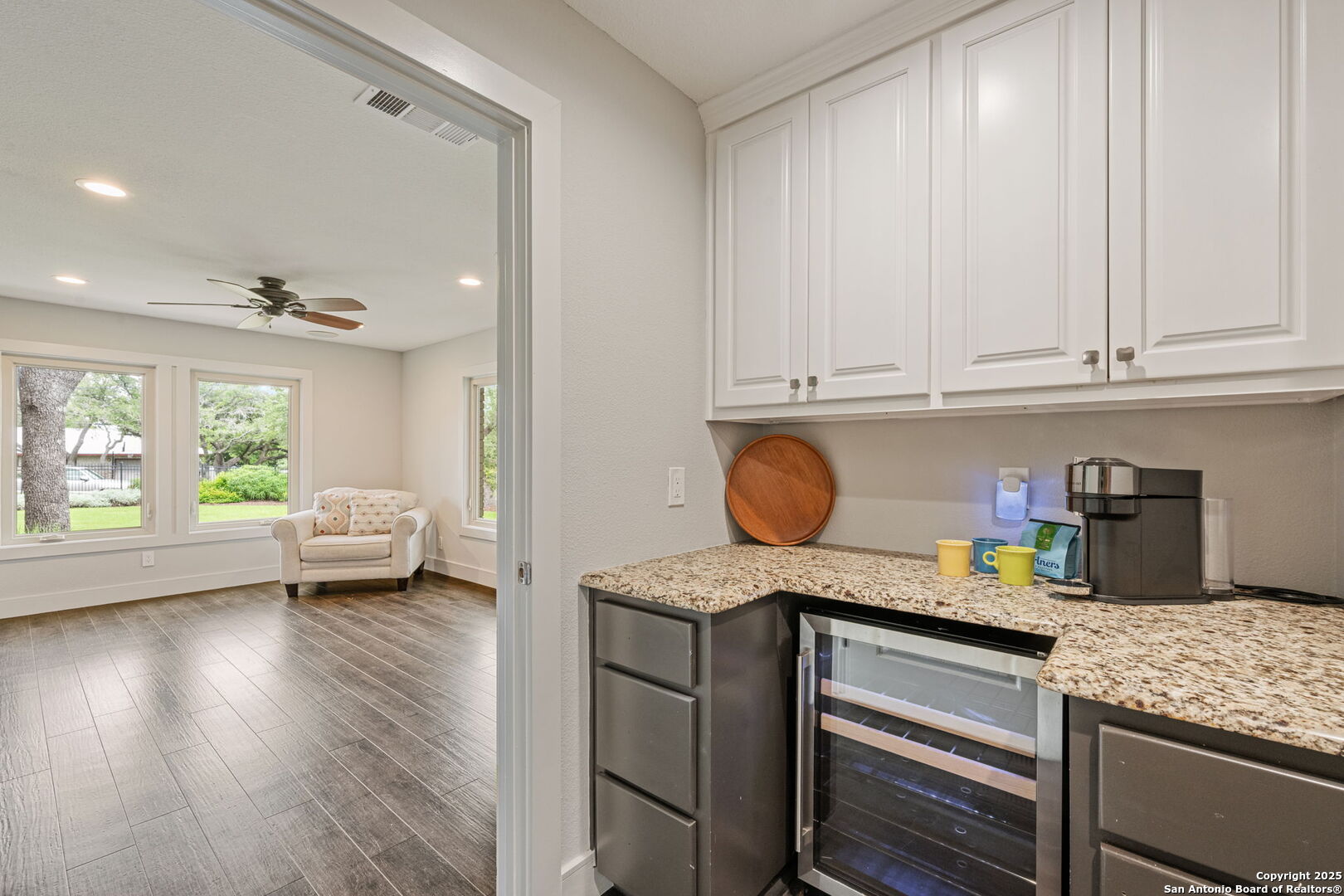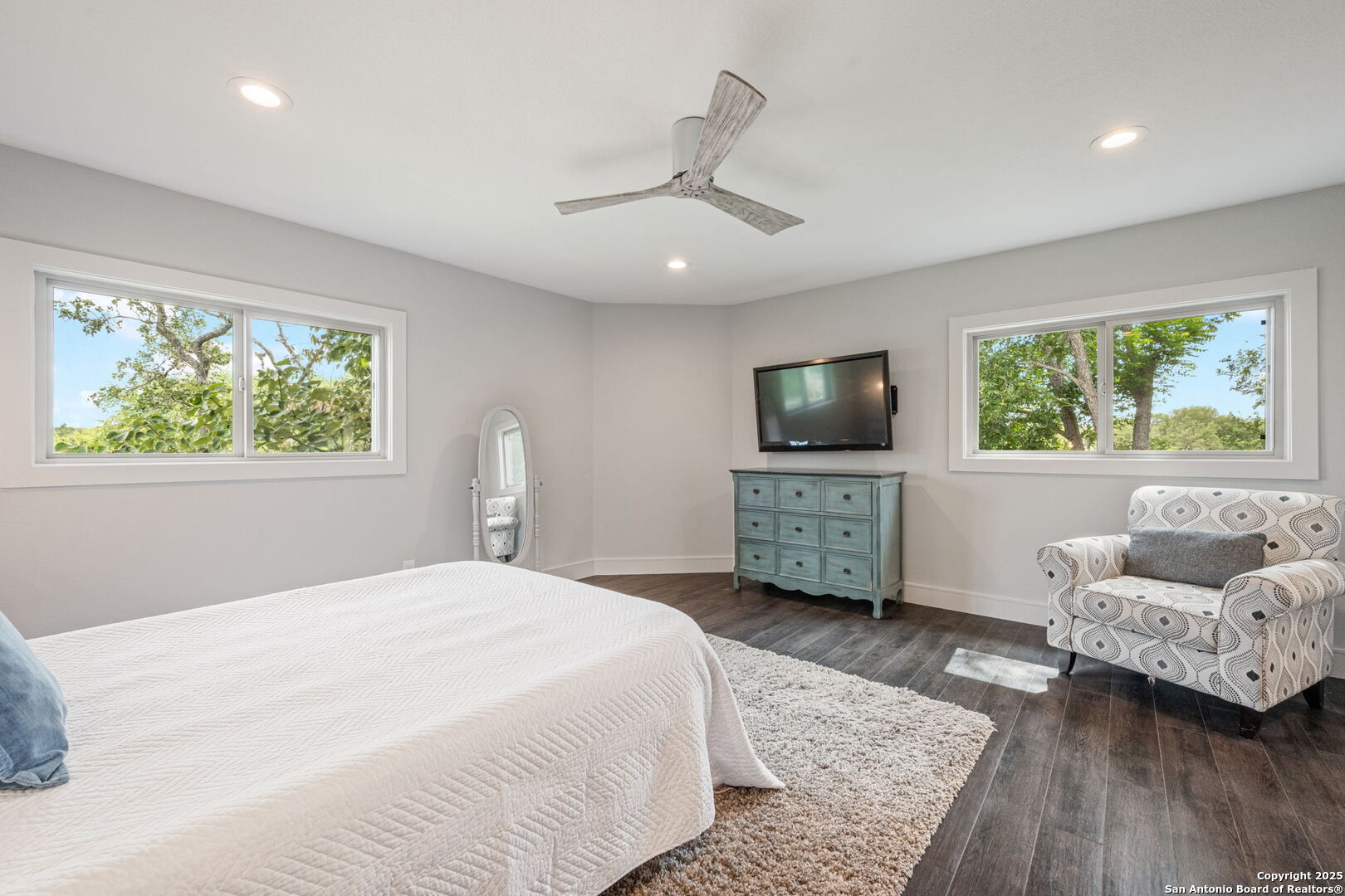 Welcome home to 104 Arrowhead Lane in popular Ranger Creek! Stylishly updated throughout, this home has it all: on-trend finishes, gas cooking in the kitchen, a tankless water heater, replacement windows, a propane tank, lush landscaping, and much more! On the main level, you'll find an open living and dining room that flows into a chef-ready kitchen with a kitchen island, and a breakfast/dining area with built-in banquet benches with storage. The second living area is ideal for family movie nights and provides a built-in drop zone off the carport entry. The laundry room doubles as a prep space with granite counters, cabinetry, and a beverage cooler located conveniently off the kitchen and second living space. As you walk up the tile-accented stairs to the second level, you find an expansive primary suite with sconces, LVP flooring, an attached bath with double sinks, custom oak cabinetry, and a walk-in closet with modular components for easy storage options! The hall bath is stylishly updated and serves the secondary bedrooms. The beautifully landscaped yard is a nature lover's paradise with native trees, mulched beds with native plantings, and raised garden beds with drip irrigation. A further appeal of this home is that it is fenced, gated and the driveway is clad in attractive pavers. The 8x12 storage building has served as a chicken coop for 4-H projects, gardening tools/supplies, and more! The expansive deck provides space to relax & entertain...the large backyard gives you room to roam and play! Ranger Creek is a short drive from IH10, schools + appealing Downtown Boerne and offers a community pool, tennis, and a clubhouse.