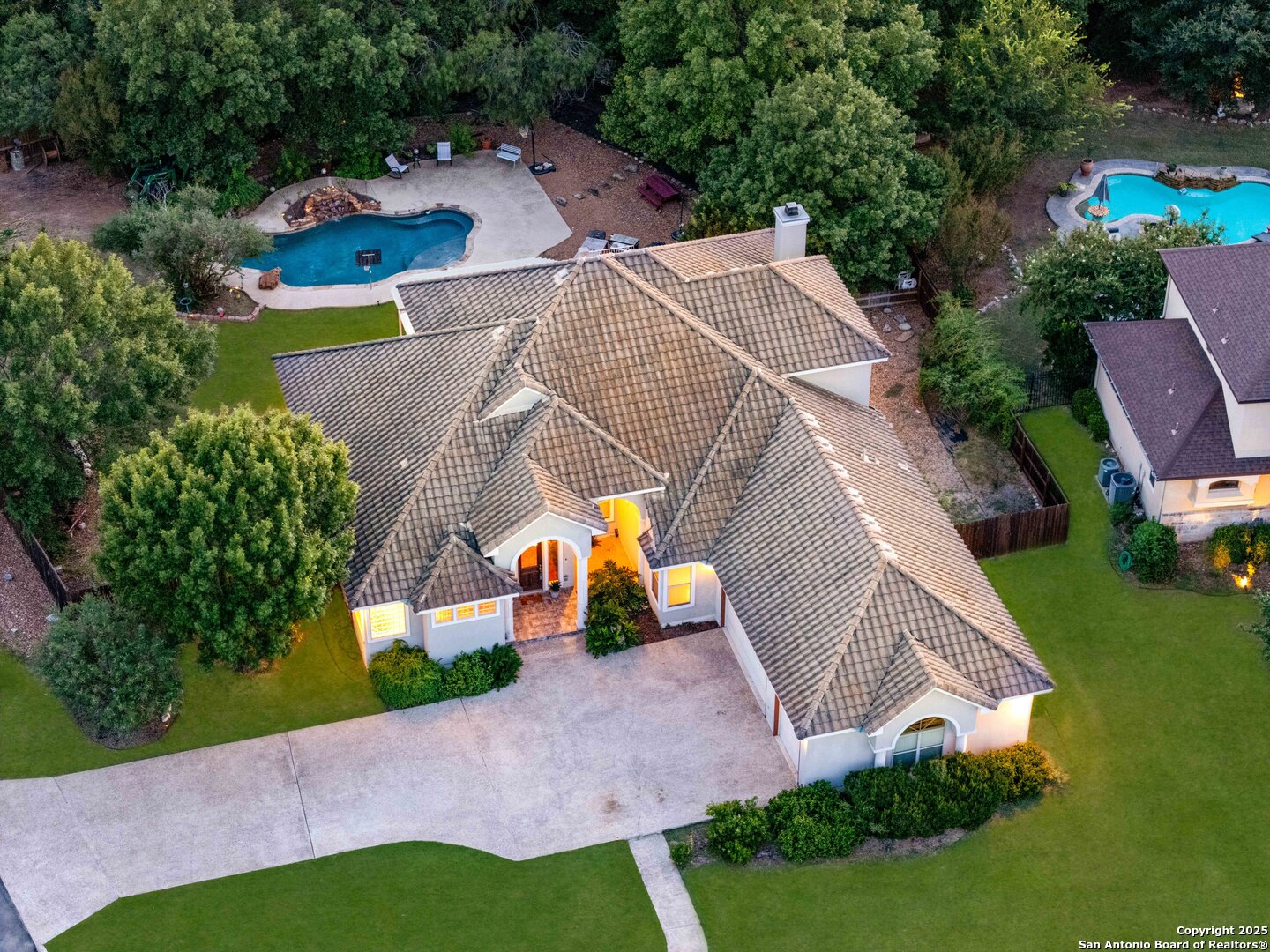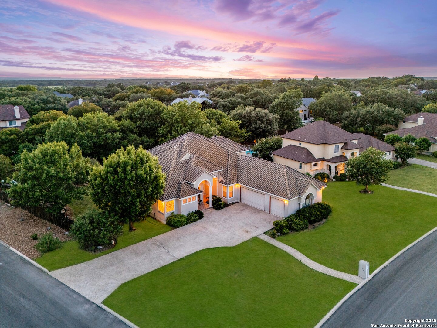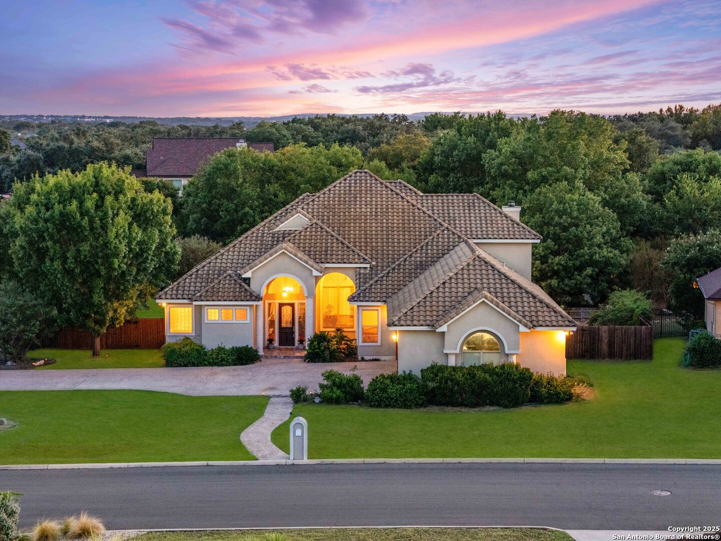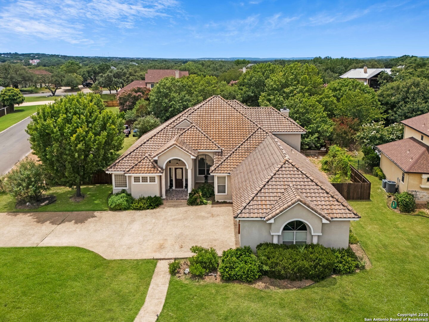 5 BEDROOMS* 3528 sqft.* LARGE .62 ACRE CORNER LOT* GORGEOUS POOL* 3-CAR GARAGE IN FAIR OAKS RANCH! Nestled on a spacious .62-acre corner lot in the beautiful golf-course community of Fair Oaks Ranch, this stunning Mediterranean-style custom home offers timeless elegance and exceptional comfort. Boasting 5 bedrooms, 3 1/2 bathrooms, and a three-car garage, the home features a thoughtfully designed open floor plan perfect for everyday living and entertaining. The heart of the home is a chef's kitchen which opens to a breakfast nook and a cozy living room that has access out to the pool. Three of the bedrooms are located on the main floor and the other two bedrooms are upstairs. The primary suite, conveniently located on the main floor, includes a spa-like bath with dual vanities, a soaking tub, and two large walk-in closets plus access out to the pool. Outdoors, enjoy a park-like backyard complete with a large covered patio and a sparkling pool, ideal for gathering year-round. Located in a prime location feeding into top-rated Boerne schools, this home offers luxury, space, and convenience in one of the Hill Country's most sought-after communities.