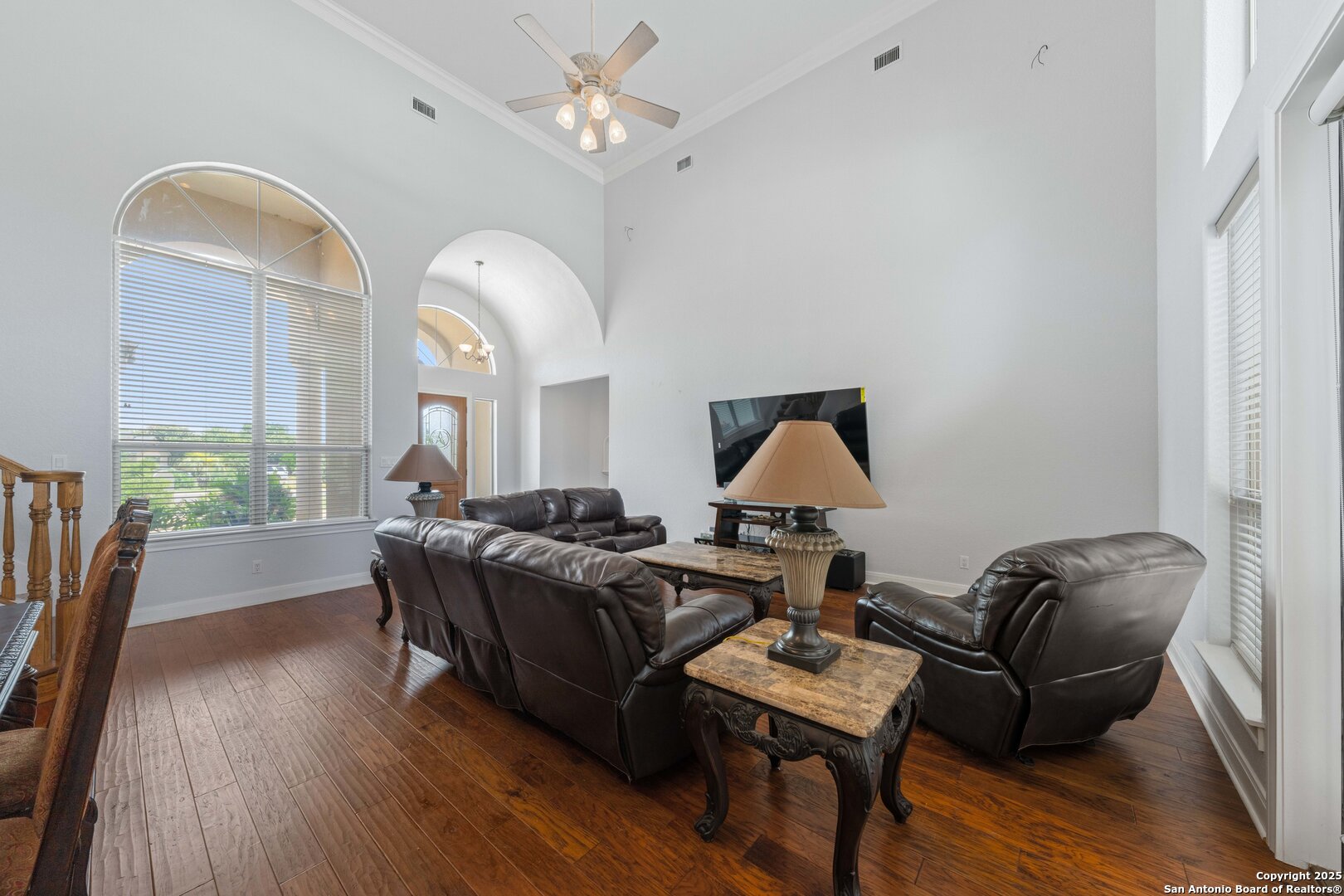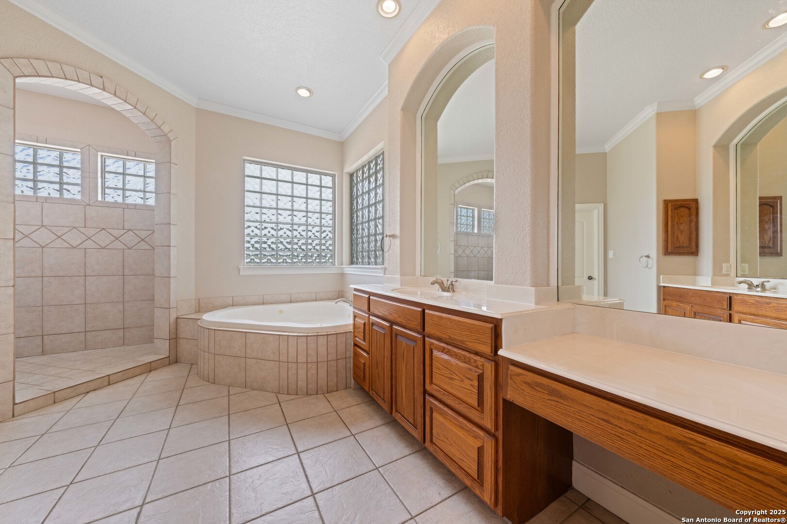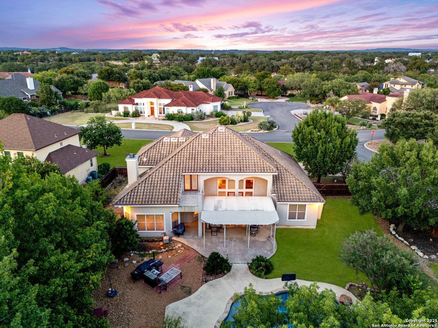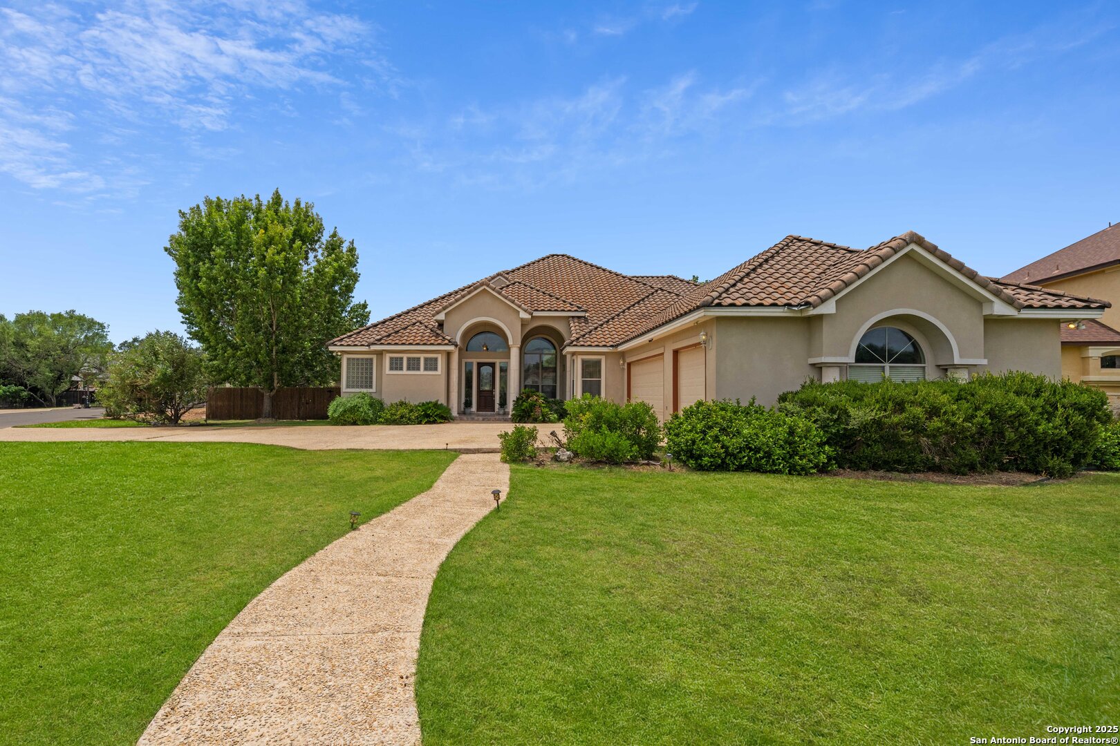 5 BEDROOMS* 3528 sqft.* LARGE .62 ACRE CORNER LOT* GORGEOUS POOL* 3-CAR GARAGE IN FAIR OAKS RANCH! Nestled on a spacious .62-acre corner lot in the beautiful golf-course community of Fair Oaks Ranch, this stunning Mediterranean-style custom home offers timeless elegance and exceptional comfort. Boasting 5 bedrooms, 3 1/2 bathrooms, and a three-car garage, the home features a thoughtfully designed open floor plan perfect for everyday living and entertaining. The heart of the home is a chef's kitchen which opens to a breakfast nook and a cozy living room that has access out to the pool. Three of the bedrooms are located on the main floor and the other two bedrooms are upstairs. The primary suite, conveniently located on the main floor, includes a spa-like bath with dual vanities, a soaking tub, and two large walk-in closets plus access out to the pool. Outdoors, enjoy a park-like backyard complete with a large covered patio and a sparkling pool, ideal for gathering year-round. Located in a prime location feeding into top-rated Boerne schools, this home offers luxury, space, and convenience in one of the Hill Country's most sought-after communities.