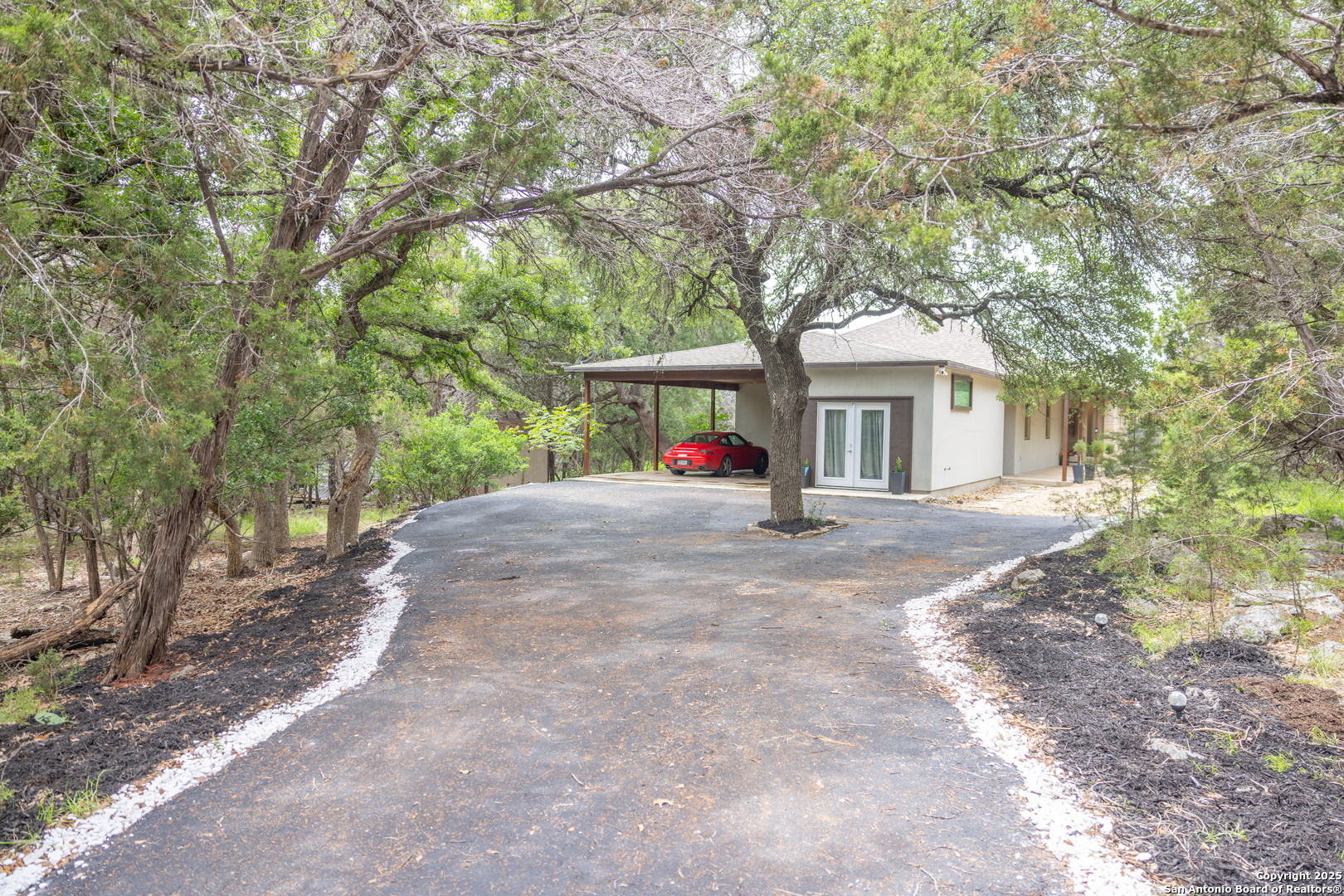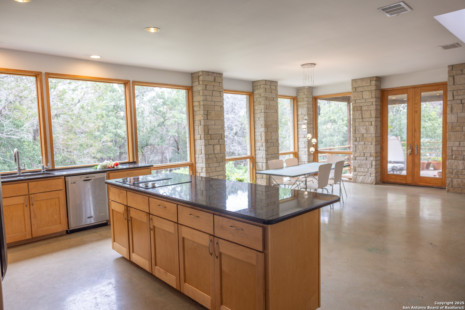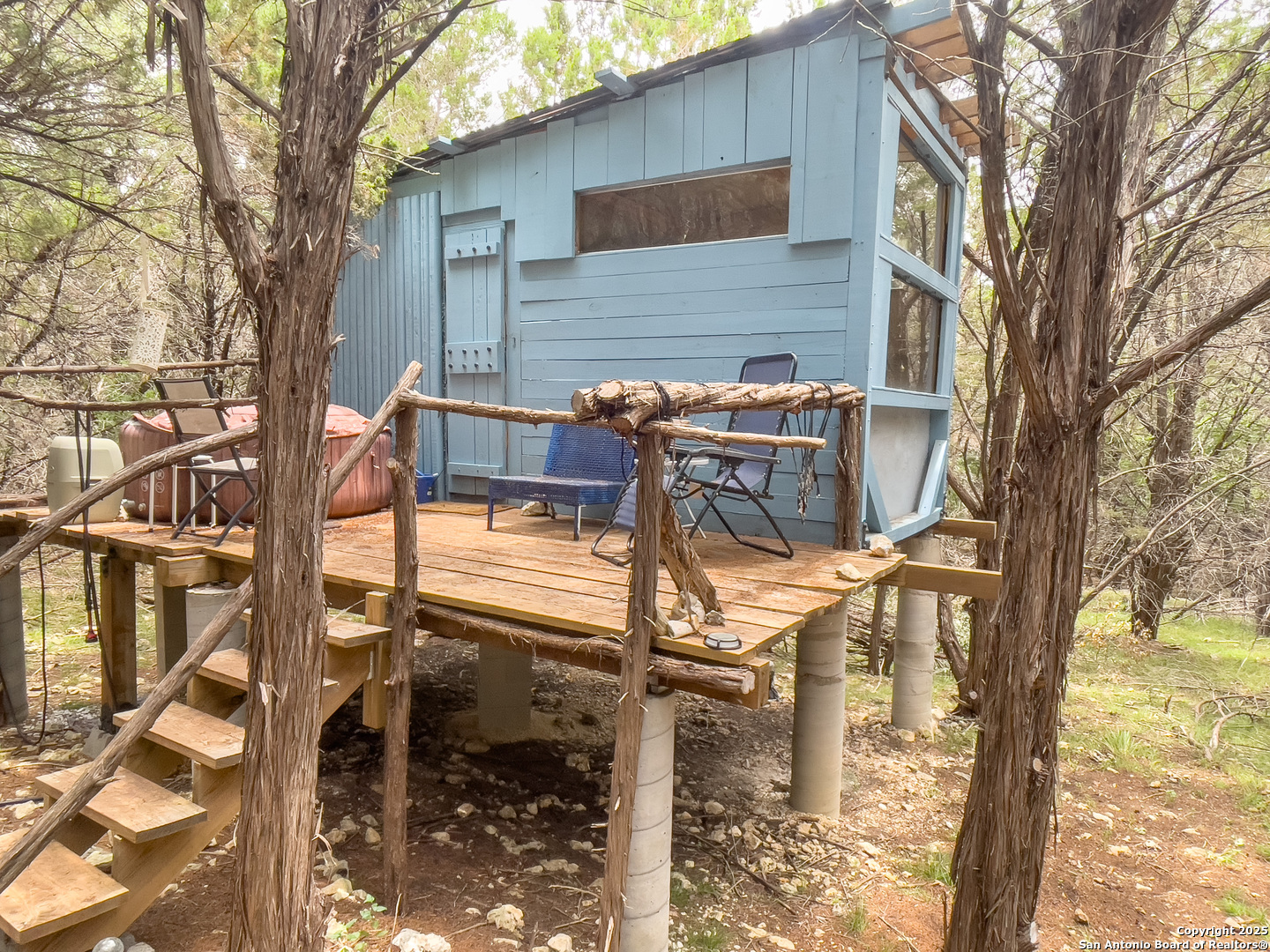 Custom-Built Retreat on Two Expansive Lots Near the Guadalupe River. Discover exceptional craftsmanship and unique charm in this custom-built home, perfectly situated on two spacious lots-Lot 372 (1.31 acres) and Lot 373 (0.93 acres)-for a total of over 2 acres of serene Texas Hill Country living. Surrounded by mature trees, this property offers privacy, natural beauty, and endless possibilities. Step inside to soaring 8' Pella windows and doors that flood the open living and dining areas with natural light, enhanced by a stunning large cupola overhead. The interior showcases beautiful rock accents and polished, stained concrete floors throughout, creating a blend of rustic elegance and modern comfort. The gourmet kitchen is equipped with high-end stainless steel appliances and gleaming granite countertops, also featured in the master bath and laundry room. Guests will love the inviting clawfoot tub in the guest bath, perfect for relaxing after a day exploring the nearby Guadalupe River-just one mile away. Unique amenities set this property apart, including a striking dome and a whimsical tree house, both of which have been successfully used as short-term rentals by the current owner. Whether you're seeking a private sanctuary, an entertainer's dream, or an income-generating investment, this home offers it all. Don't miss your chance to own this extraordinary property, where custom design, natural beauty, and versatile living come together in one remarkable package. An efficiency apartment was added complete with a bathroom, offers additional square footage not currently included in the listed total. Property features an attached efficiency apartment with its own private entrance, fully equipped kitchen, and full bathroom perfect for guests, in-laws, or rental income