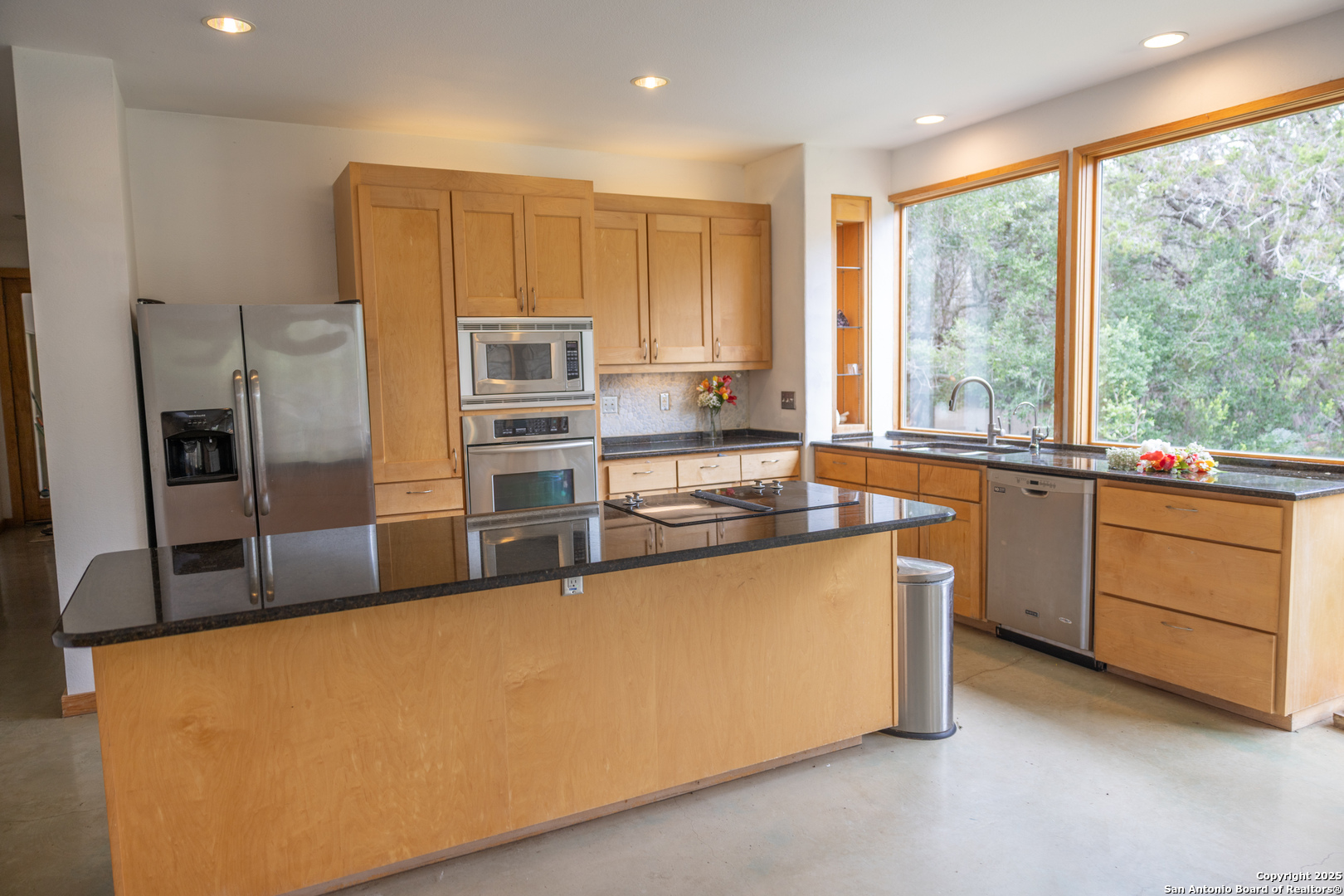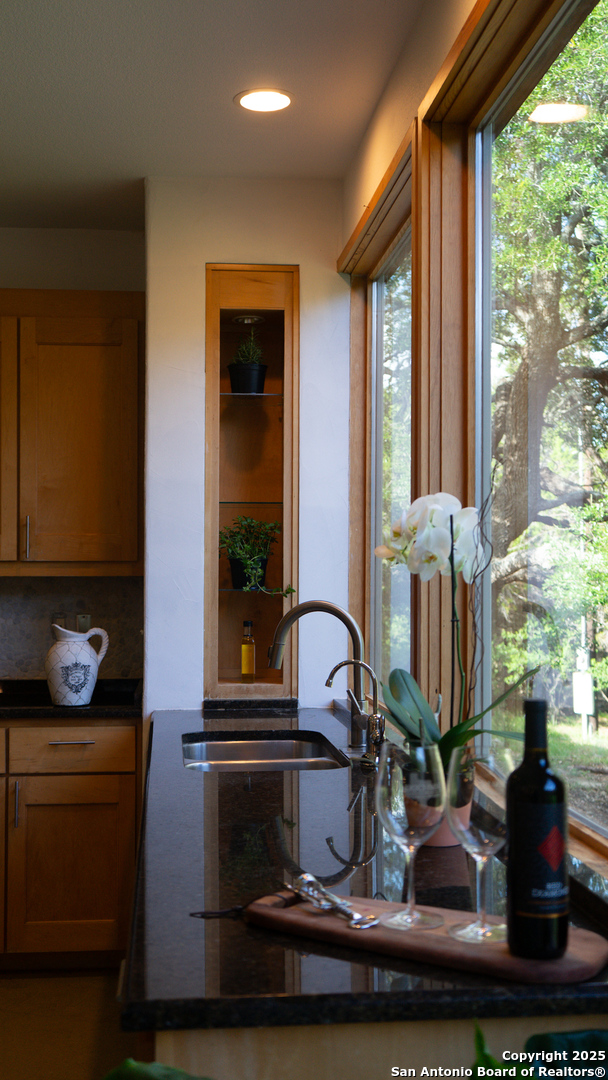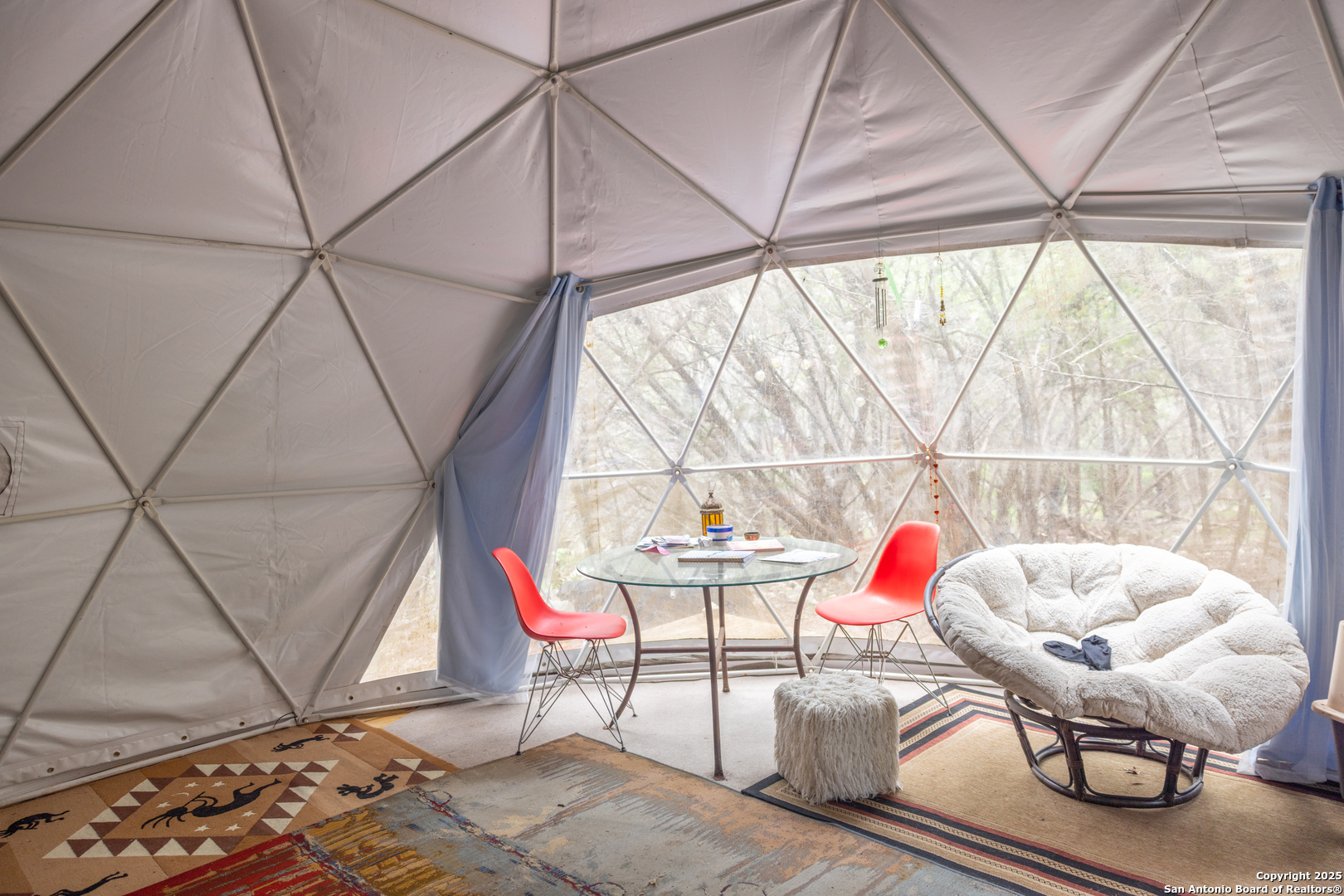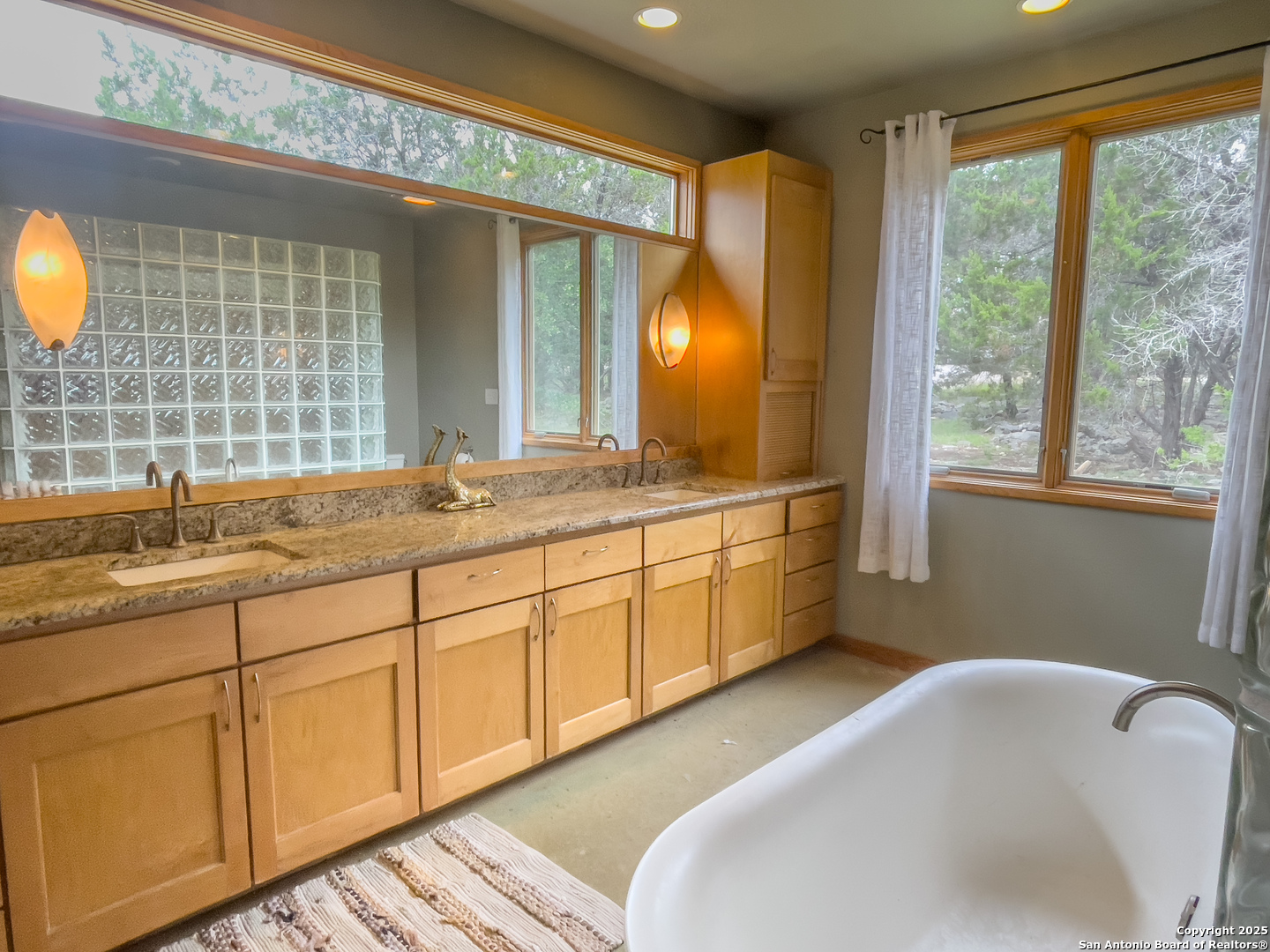 Custom-Built Retreat on Two Expansive Lots Near the Guadalupe River. Discover exceptional craftsmanship and unique charm in this custom-built home, perfectly situated on two spacious lots-Lot 372 (1.31 acres) and Lot 373 (0.93 acres)-for a total of over 2 acres of serene Texas Hill Country living. Surrounded by mature trees, this property offers privacy, natural beauty, and endless possibilities. Step inside to soaring 8' Pella windows and doors that flood the open living and dining areas with natural light, enhanced by a stunning large cupola overhead. The interior showcases beautiful rock accents and polished, stained concrete floors throughout, creating a blend of rustic elegance and modern comfort. The gourmet kitchen is equipped with high-end stainless steel appliances and gleaming granite countertops, also featured in the master bath and laundry room. Guests will love the inviting clawfoot tub in the guest bath, perfect for relaxing after a day exploring the nearby Guadalupe River-just one mile away. Unique amenities set this property apart, including a striking dome and a whimsical tree house, both of which have been successfully used as short-term rentals by the current owner. Whether you're seeking a private sanctuary, an entertainer's dream, or an income-generating investment, this home offers it all. Don't miss your chance to own this extraordinary property, where custom design, natural beauty, and versatile living come together in one remarkable package. An efficiency apartment was added complete with a bathroom, offers additional square footage not currently included in the listed total. Property features an attached efficiency apartment with its own private entrance, fully equipped kitchen, and full bathroom perfect for guests, in-laws, or rental income
