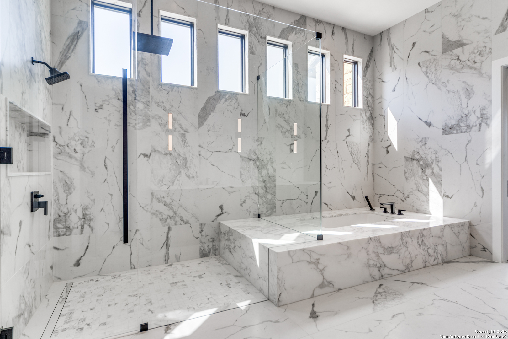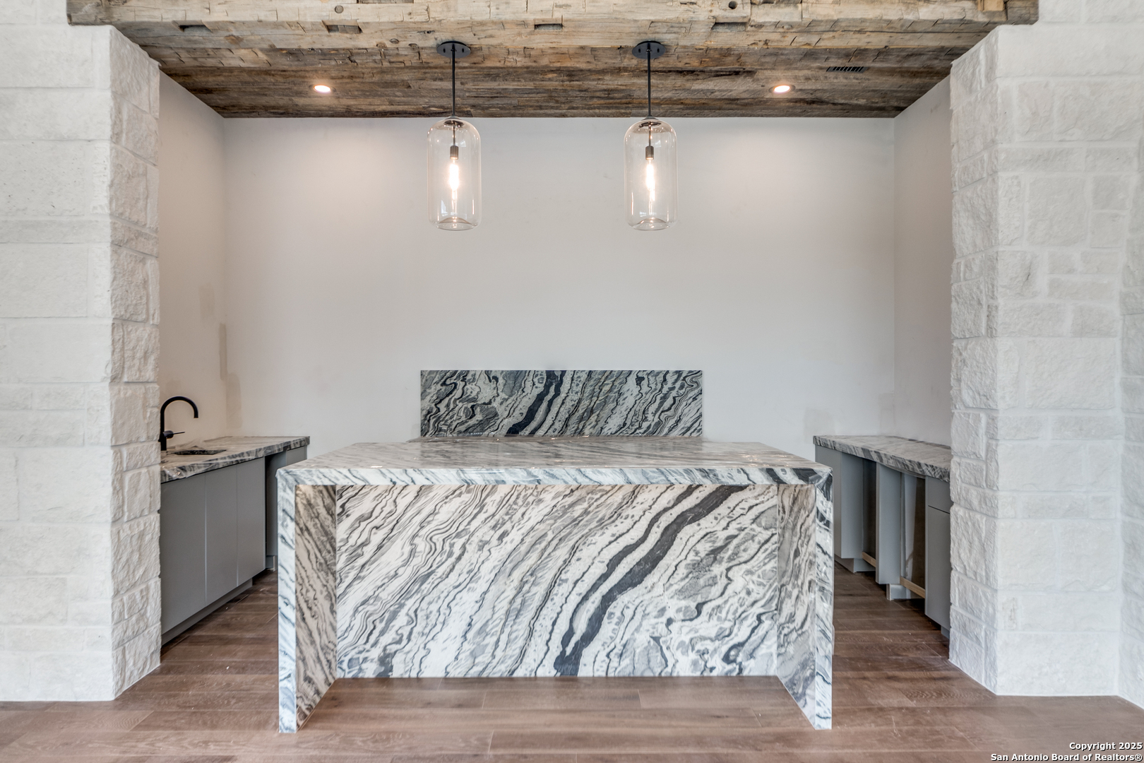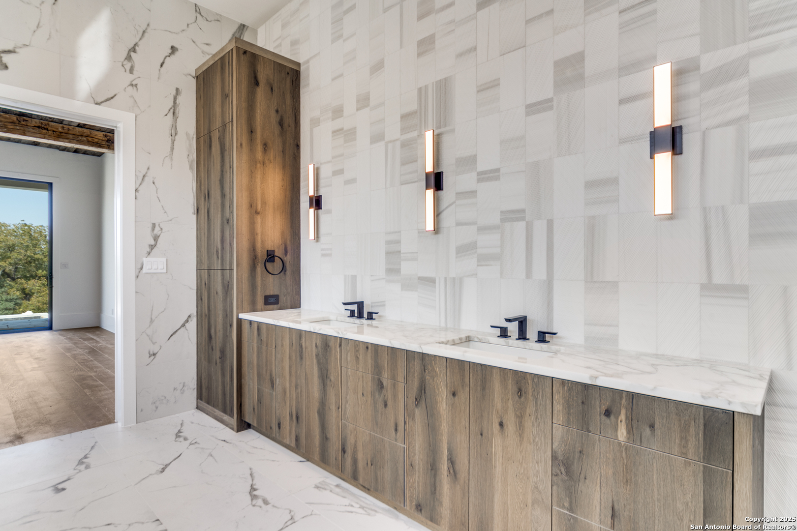 *This home has a FULL MASTER GOLF MEMBERSHIP* Situated in the well-known Cordillera Ranch neighborhood, and backing up to the 12th hole of the Jack Nicklaus Signature Golf Course, this custom residence by Atkinson Custom Homes blends Hill Country elegance with high-end luxury living. Scheduled to be move-in ready October of 2025, this home is a true showpiece in the making. A private gated courtyard with antique barnwood timber awnings and commercial-grade LiftMaster gate opener sets the tone. The oversized paver driveway offers generous parking and striking curb appeal. Inside, you'll find a seamless open-concept layout with wide plank oak floors and antique barnwood timbers and trusses throughout. The gourmet kitchen and full back kitchen are outfitted with Wolf appliances, including a 48" range, steam oven and speed oven, coffee system, two dishwashers, Subzero refrigeration, and a massive 11' island beneath a polished limestone vent hood. The living room features rock walls, antique oak timbers, and a masonry fireplace with a polished limestone mantle, opening to an oversized dining area. A standout feature of the home is the 1,536 sq. ft. game room with 26' cathedral ceilings, rock walls, barnwood hammer trusses, a masonry fireplace, and a full bar with luxury countertops, waterfall panels, Subzero appliances, and 102-bottle wine storage. The primary suite is a private retreat with outside access, along with a spa-inspired bath wrapped in tile, an undermount tub, oversized frameless glass shower with bench seating, and a fully built-out walk-in closet. Each guest bedroom includes its own en suite bath. Additional highlights include a large utility room with dual washers/dryers, a dedicated 117 sq. ft. storage room, built-in window screens, and premium-grade finishes throughout. Outside, enjoy a grand covered patio with a fireplace, three living zones, retractable sun screens, a built-in kitchen with infrared grill, and a three-level heated pool and spa with negative edge and sun deck. Artificial turf, and landscape architect-designed flower beds complete the backyard oasis. The oversized 3-car garage features EV and car-lift power, tall ceilings, storage space, and a dedicated shop area. A true showpiece, crafted for luxury living and effortless entertaining.