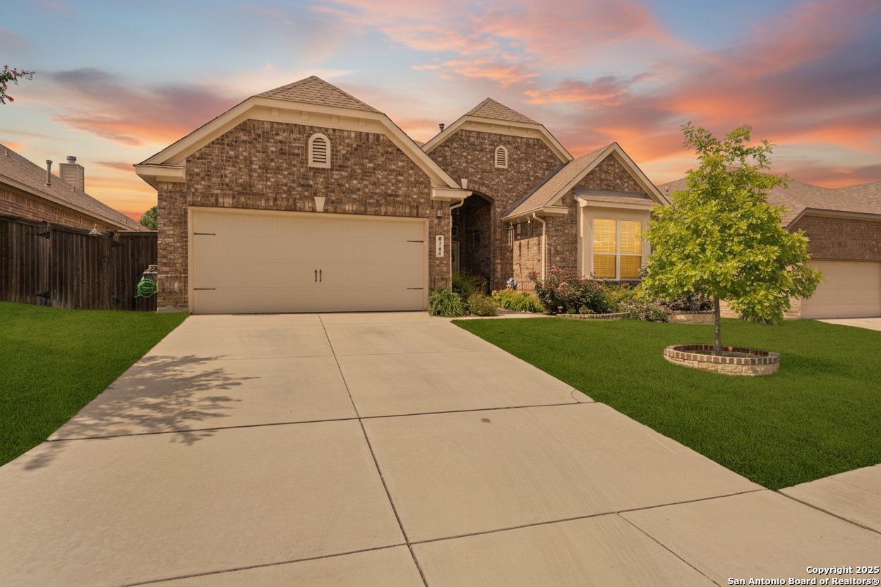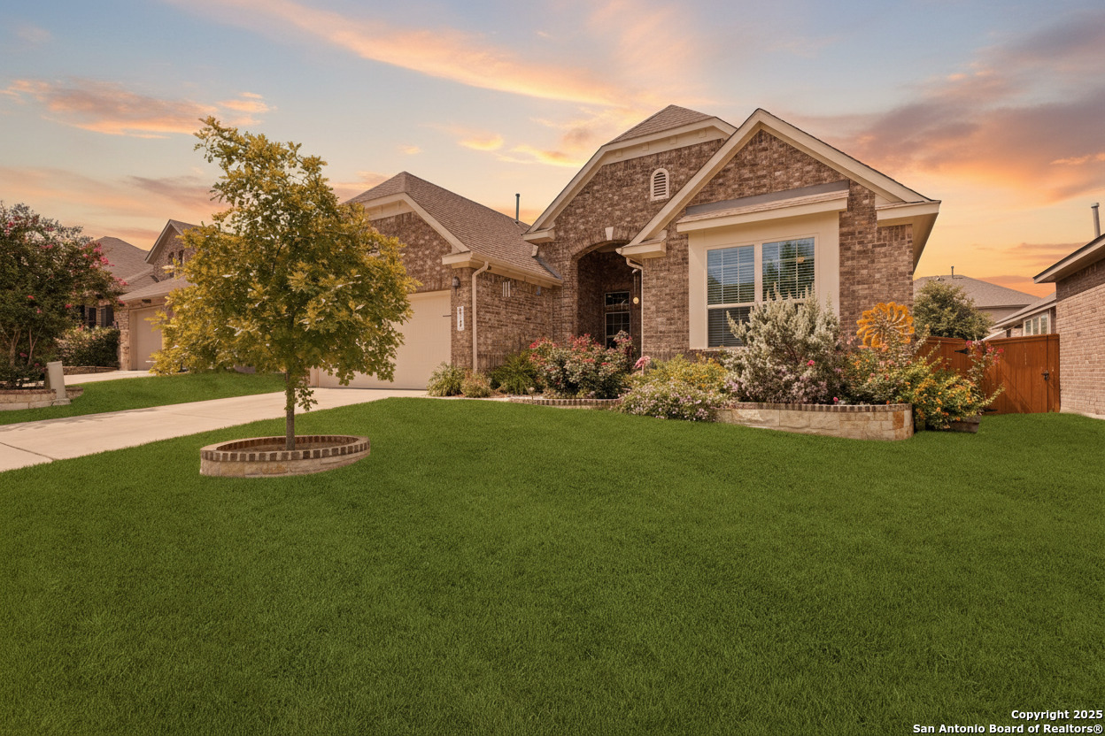 Welcome to 9743 Monken, Boerne, TX - an elegant Hill Country retreat nestled in the prestigious community of Balcones Creek. This thoughtfully curated single-story residence exudes timeless sophistication while embracing modern comfort, offering four generously sized bedrooms and a flowing open-concept layout, perfect for both relaxed daily living and refined entertaining. At the heart of the home, the gourmet kitchen is a culinary masterpiece, featuring pristine white cabinetry, an expansive center island, a spacious walk-in pantry, and abundant counter space to inspire your inner chef. The charming breakfast nook, complete with a built-in window seat, welcomes the morning sun and creates a perfect place to linger with a cup of coffee. Adjacent, the living room boasts a custom built-in media center and exquisite millwork, with luxury vinyl plank flooring running throughout-offering both beauty and durability with no carpet in sight. The private owner's suite is a serene sanctuary, adorned with a graceful tray ceiling and a bay window that frames peaceful views of the backyard. The en suite bath rivals a luxury spa, showcasing an oversized walk-in shower, dual vanities, an expansive walk-in closet, a dedicated linen closet, and refined finishes throughout. Additional features include ceiling fans in every room, a full laundry room with shelving for optimal organization, and three secondary bedrooms-each with its own walk-in closet, including the back-of-house office with bay window, offering flexibility for remote work or guest space. Step outside to a true backyard oasis. An extended covered patio invites elegant outdoor entertaining, while the heated pool and spa promise year-round enjoyment. The artificial turf-installed just two years ago-offers low-maintenance luxury, and automatic sprinklers service both the lush front lawn and garden planters, as well as the turf in the backyard. The pool deck was resurfaced just eight months ago to enhance safety and elevate the visual appeal. Additional upgrades include an air conditioning unit that has been serviced every six months with filter replacements and routine checks, a soft water system (owned) with regular maintenance, and heavy-duty ceiling-mounted storage racks in the garage-professionally installed last year. Crafted with care and designed for lasting comfort, 9743 Monken offers a lifestyle of ease, elegance, and distinction in one of Boerne's most sought-after neighborhoods. This is Hill Country living at its finest.