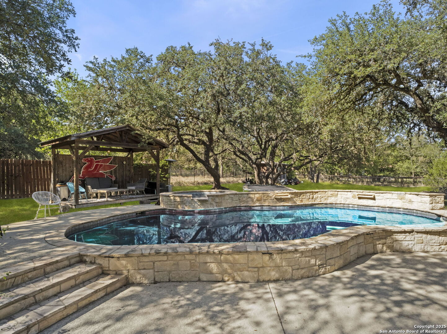 OPEN HOUSE SUNDAY 11/23 2-4p!! Experience peaceful and private country living just minutes from downtown Boerne and San Antonio! This impressive 3,537 sq. ft. home sits on 1.1 acres along a quiet road, offering exceptional privacy with quick access to I-10. Surrounded by majestic oak trees, this 4-bedroom, 3-bath residence combines charm, comfort, and modern convenience within the highly sought-after Boerne ISD. Step inside to discover an expansive open floor plan, soaring ceilings, gleaming hardwood floors, abundant natural light, and elegant granite countertops paired with premium stainless-steel appliances. The home features generous storage throughout, spacious closets in every room, and a convenient laundry chute. The luxurious owner's suite offers a relaxing retreat with its spa-like soaking tub and tranquil views. Upstairs, a bright and versatile loft provides the perfect space for a media room, home office, art studio, or private getaway. Outside, enjoy a sparkling pool and spa surrounded by a fully fenced backyard-ideal for entertaining or unwinding in total serenity. A charming chicken coop and extended driveway with ample parking complete this picture-perfect property. Offering true country living with city convenience, this home is a rare find. Schedule your private showing today!