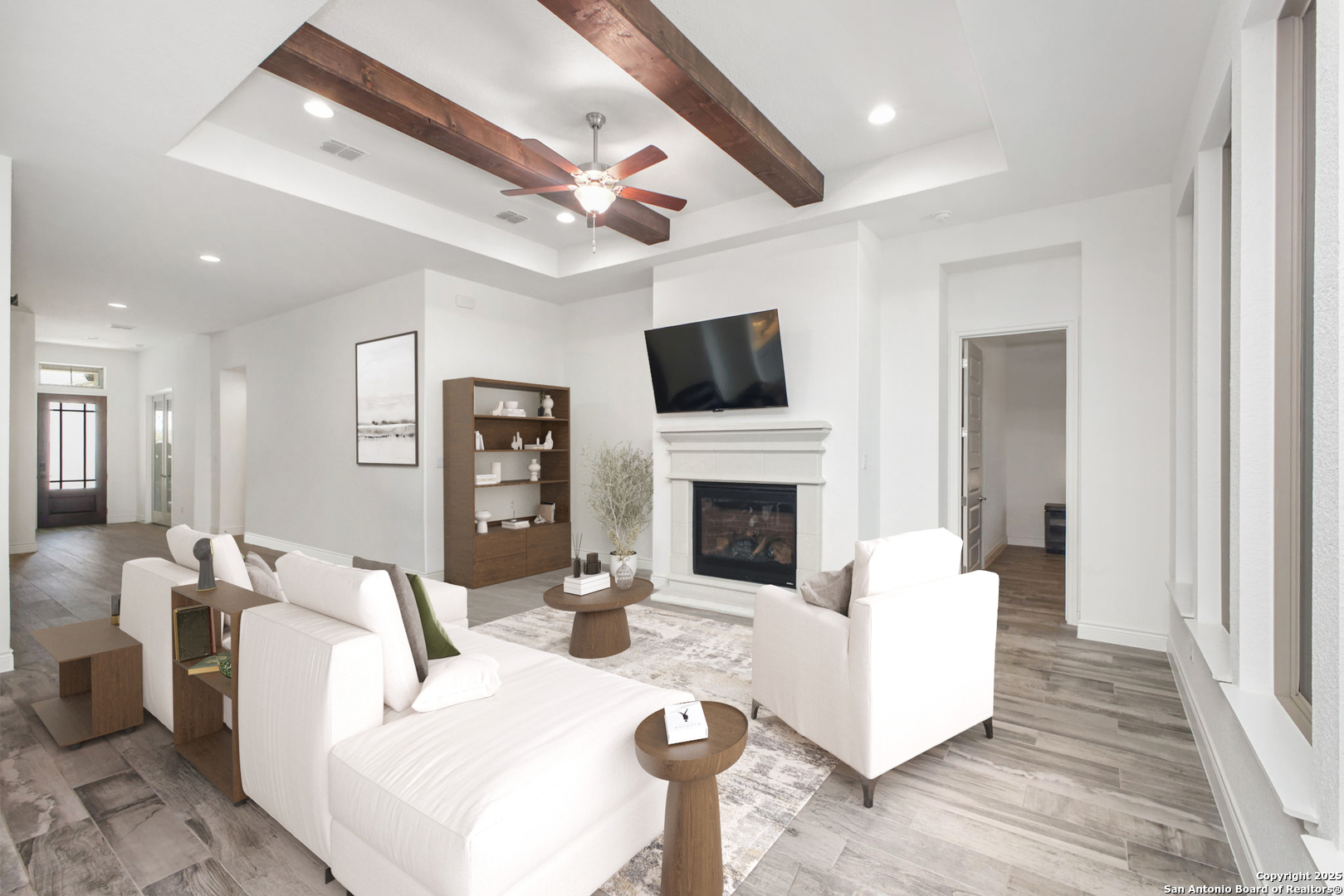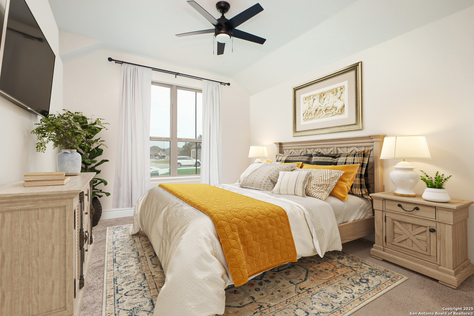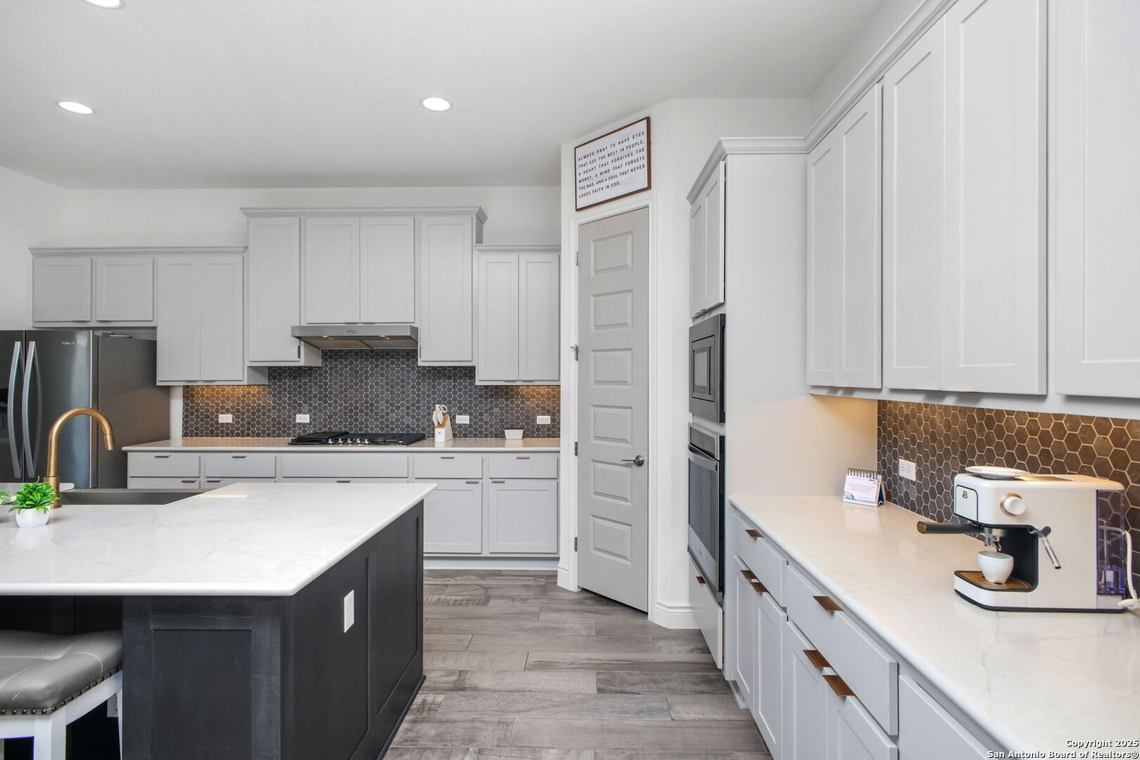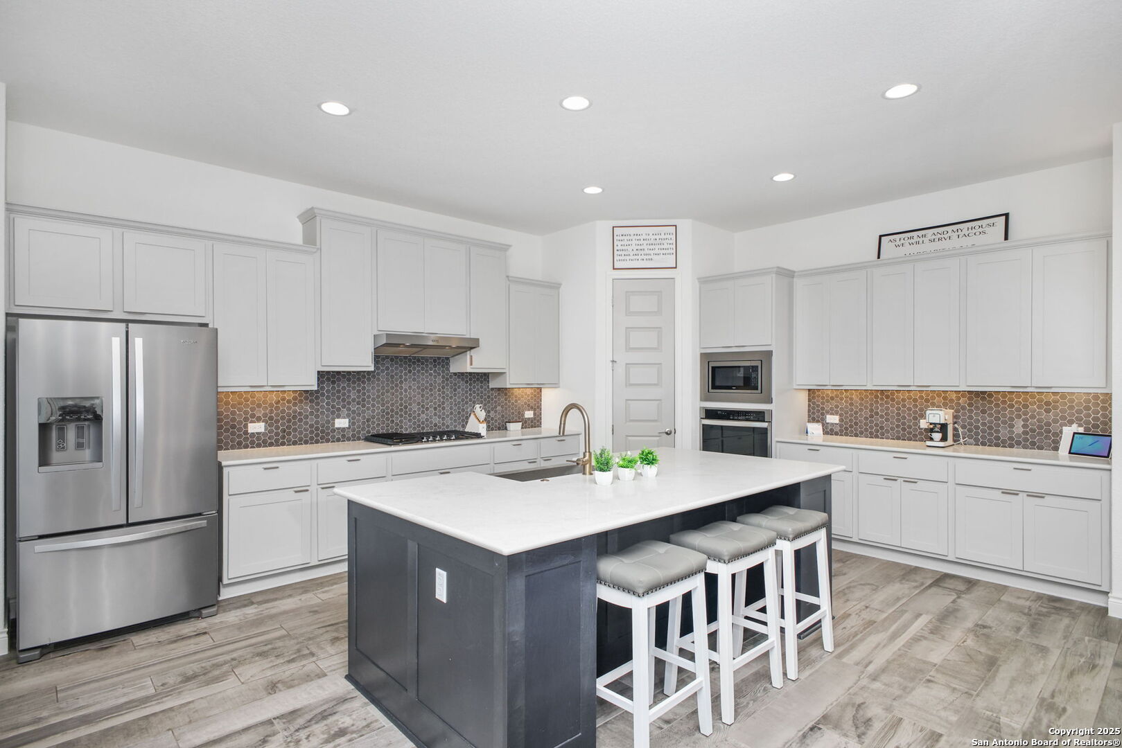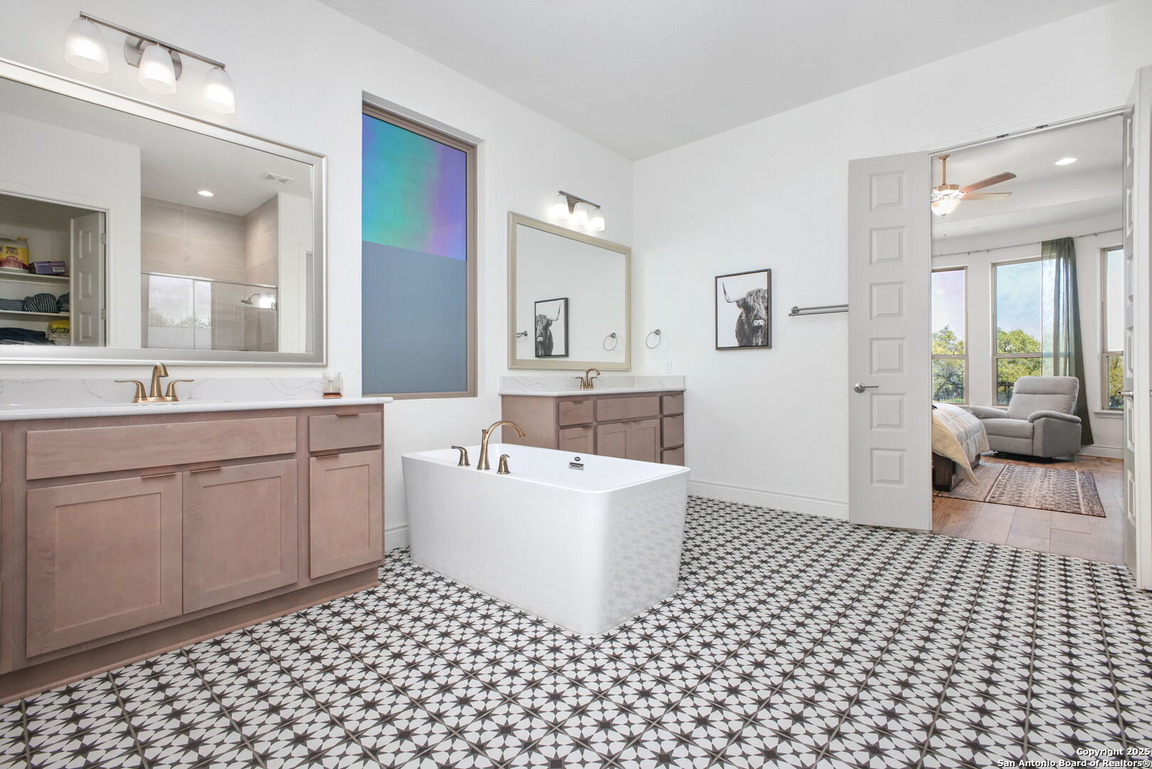 THIS WEEKEND ONLY! Property offered at $599,999.00 ! Oct 31st - Nov. 2nd. Perched on a quiet cul-de-sac in the Estates section of Ventana, this single-story estate home offers the perfect balance of space & privacy. Set on a sprawling 0.30-acre lot with no direct rear neighbors, the home showcases sweeping hill country views and unforgettable sunrises and sunsets that glow through nine oversized windows lining the back of the home. Inside, you'll find a flexible, open layout with tall ceilings throughout, four bedrooms, and three full bathrooms. One bedroom is currently used as a home office with glass French doors, and a large flex room with full-size barn doors is ready to become your media room, game room, or formal dining space. Level 17 tile flooring spans the entire home-durable, low-maintenance, and elegant. The owner's suite is a true retreat, complete with vaulted ceiling, bay window, spa-like en suite with walk-in shower, soaking tub, dual vanities, and a massive closet that stretches halfway across the home. Every secondary bedroom has direct access to its own full bath and walk-in closet. In the kitchen, an extended island, light gold hardware, stainless appliances, and a casual dining area come together in a space built for both daily living and entertaining. Outside, enjoy peaceful mornings or weekend gatherings on the epoxied patio, with gas hookup and iron fencing with privacy screen. The oversized lot is ready for your future pool, garden, or outdoor kitchen-with easy access through a lockable double gate, perfect for a golf cart or trailer. Located in sought-after Comal ISD and surrounded by families in a peaceful, friendly community, this home is just minutes from H-E-B Plus, Hwy 281, and the shops and restaurants of Hwy 46-offering a hill country lifestyle that's still close to everything.