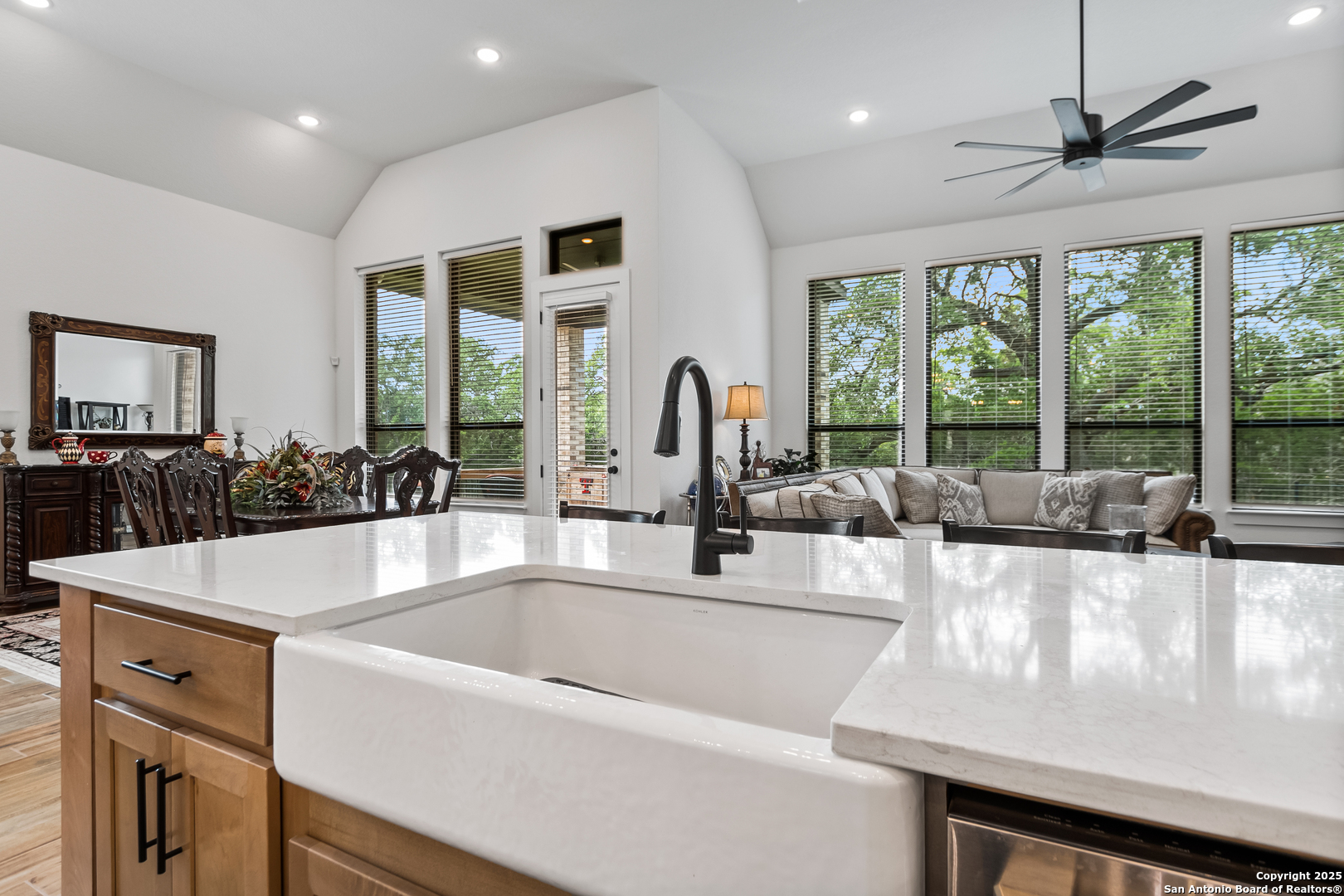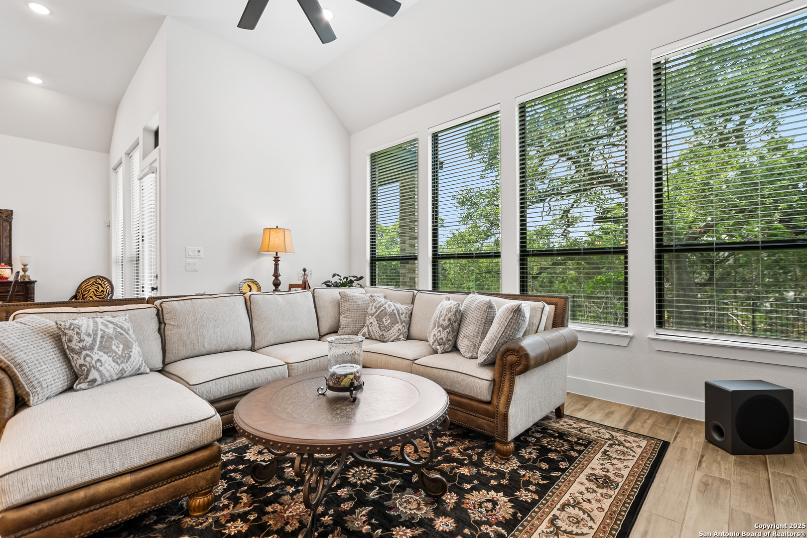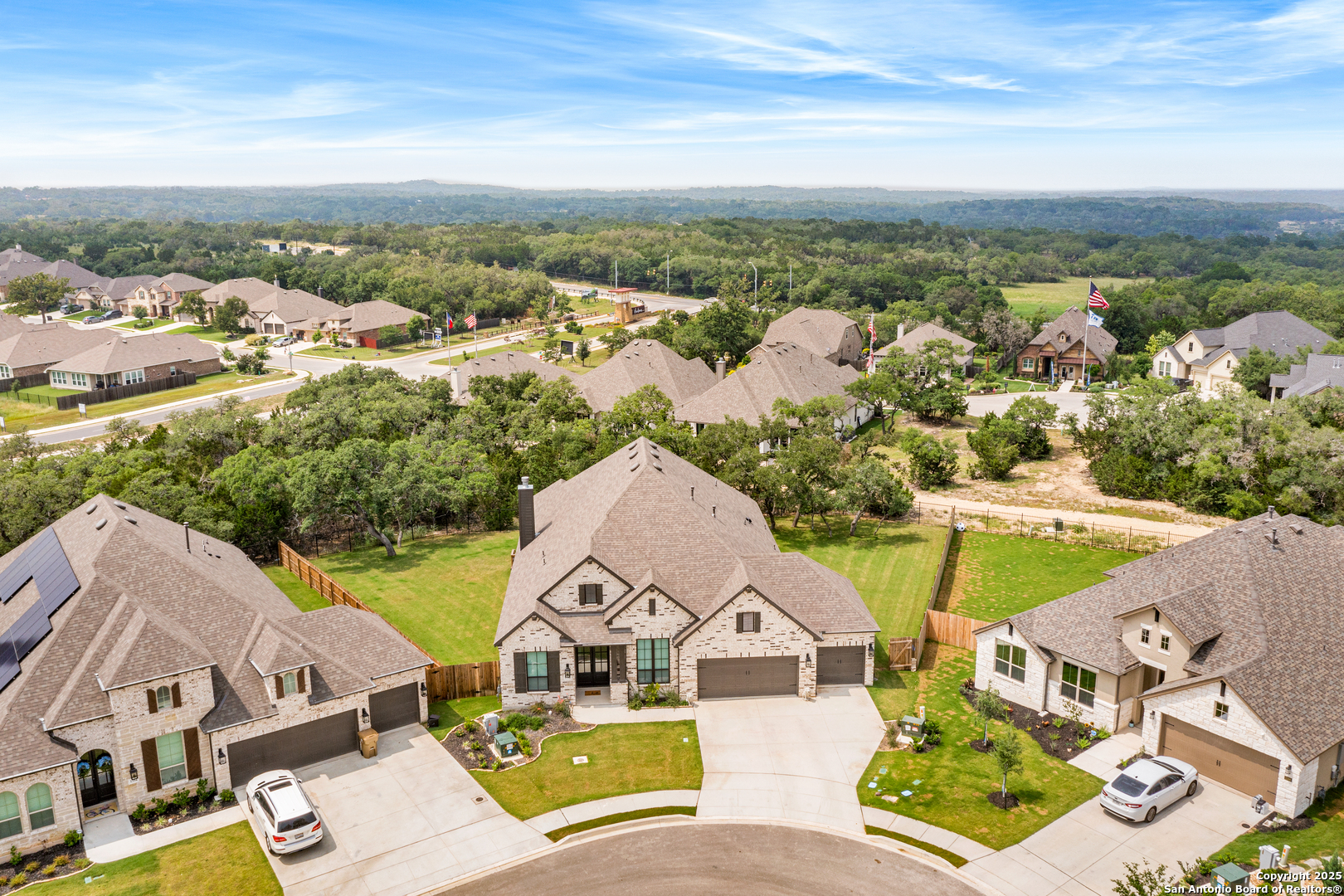 Welcome to this stunning and highly upgraded 216 Model Home Floorplan-a true showpiece in the sought-after Ventana Estates community. Enter through elegant double doors into a bright, open layout featuring high ceilings and expansive windows that flood the home with natural light. The farmhouse-style chef's kitchen is a dream come true, showcasing GE Cafe appliances, a double oven, and a spacious island perfect for entertaining. An enhanced secondary butler's pantry adds both function and flair, complete with a wine fridge, coffee service station, and abundant storage. Retreat to your private primary suite, where the spa-quality en-suite bath offers the ultimate in relaxation. Three additional bedrooms, each with their own en-suite bathrooms, provide comfort and privacy for family and guests alike. A dedicated office and a separate game/media room make this home as functional as it is beautiful. The enormous laundry and craft room delivers exceptional counter space and storage-ideal for any lifestyle. Designer upgrades throughout the home highlight its craftsmanship and attention to detail. An oversized three-car garage offers ample parking and storage. Nestled on a private cul-de-sac backing to lush greenspace, this oversized lot provides peace, privacy, and plenty of room for outdoor living. Conveniently located near shopping, dining, and all things Bulverde, this home truly has it all. Don't miss your chance to make this incredible property yours. Come see it today and fall in love!