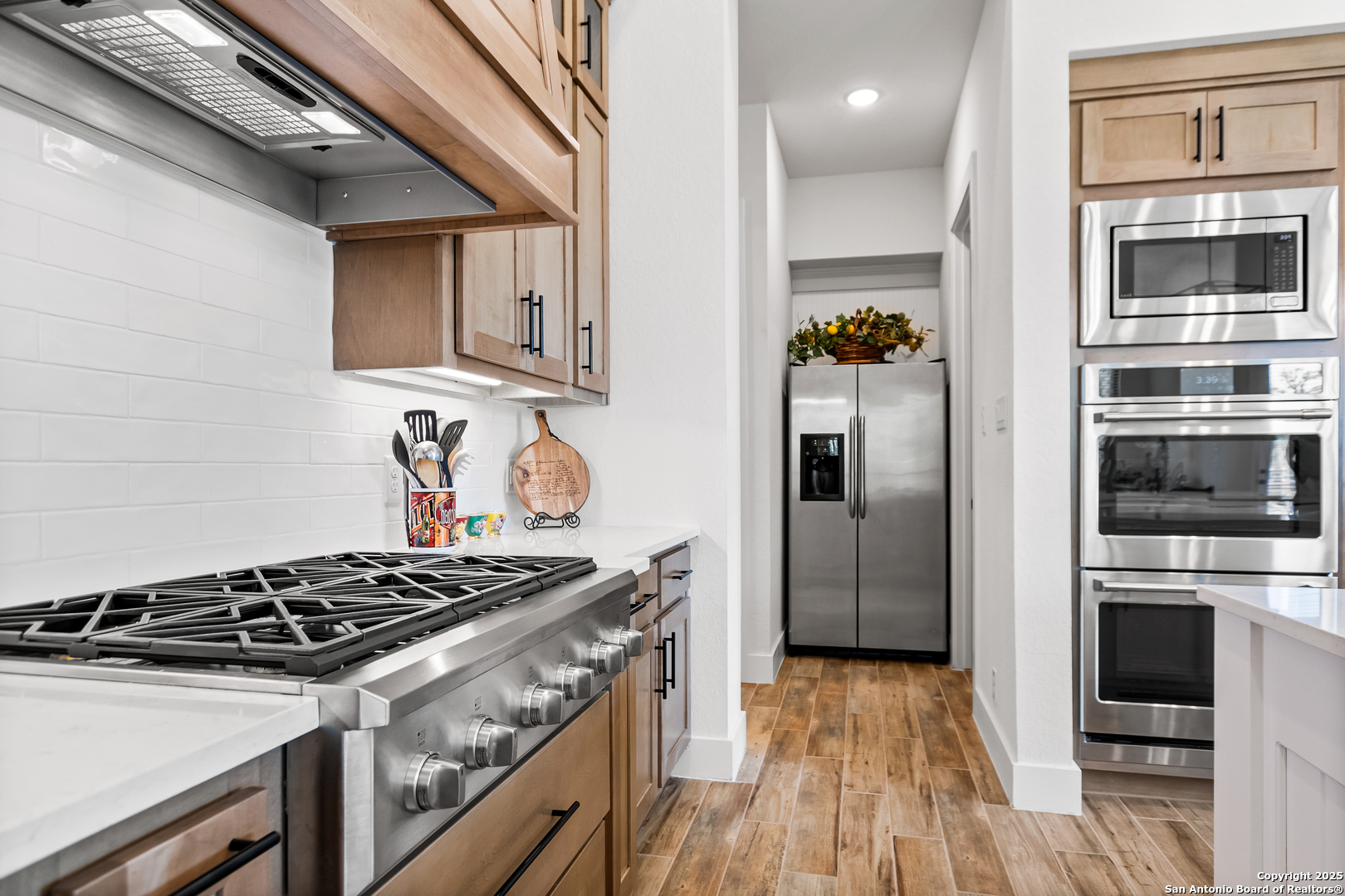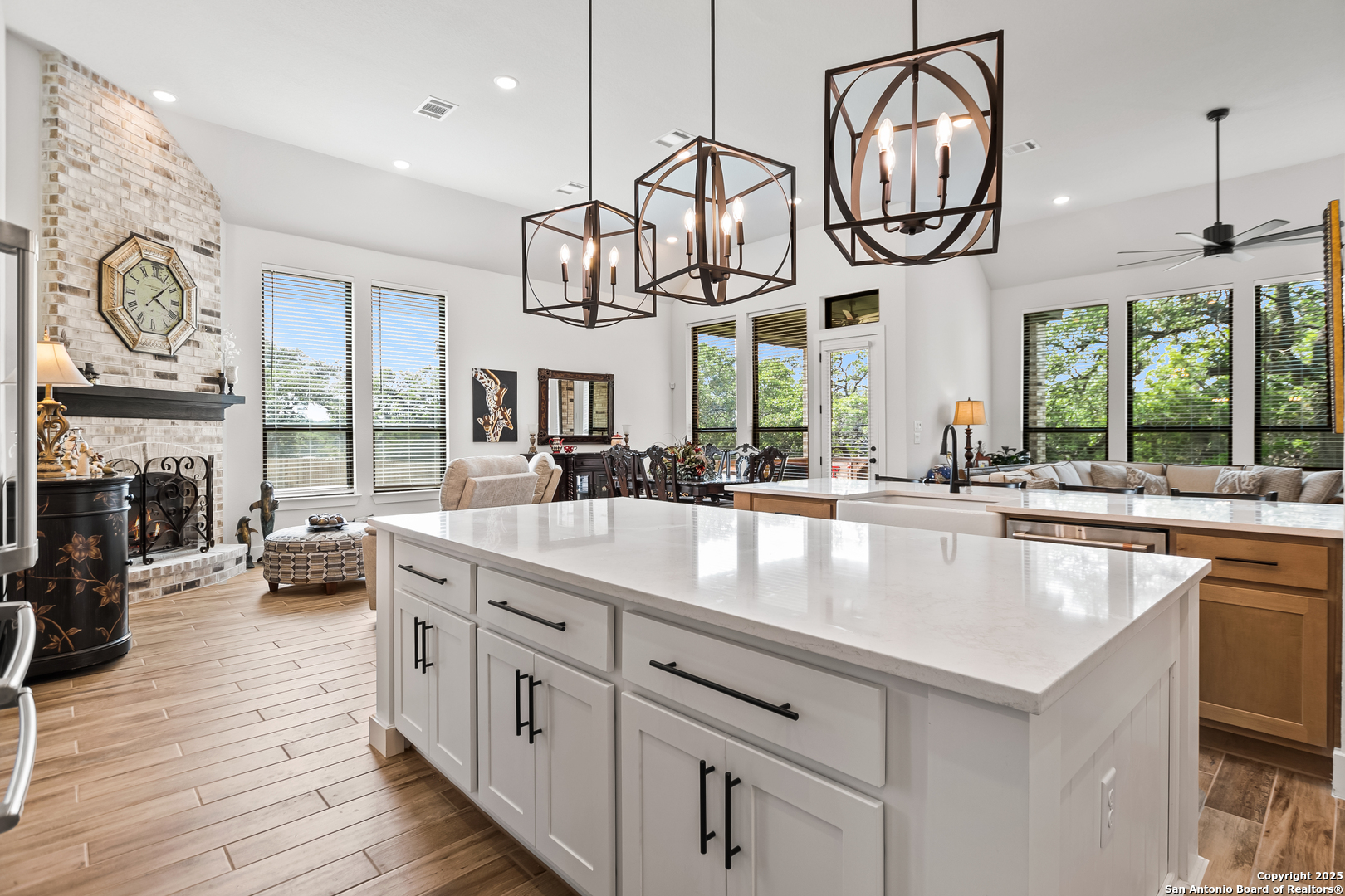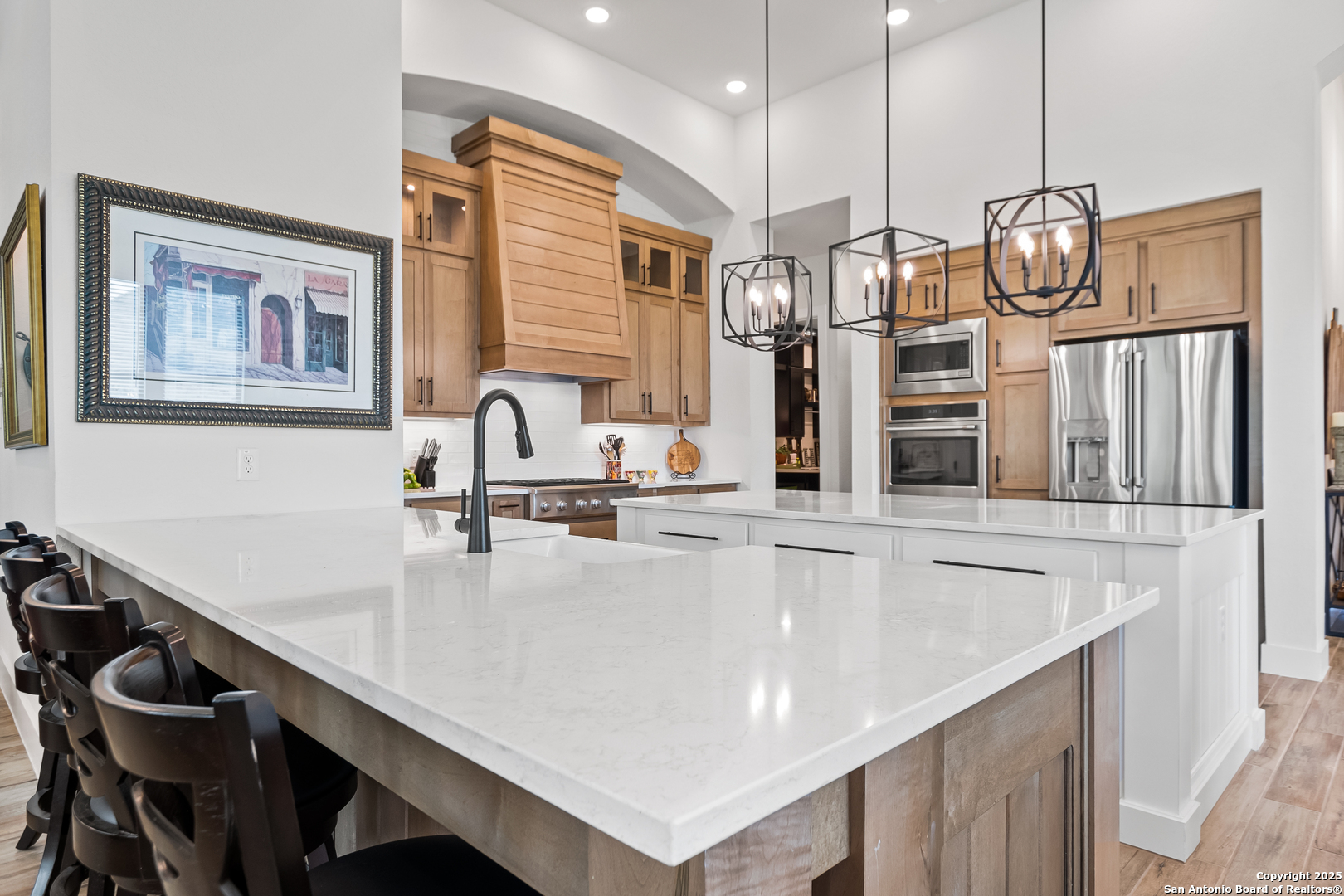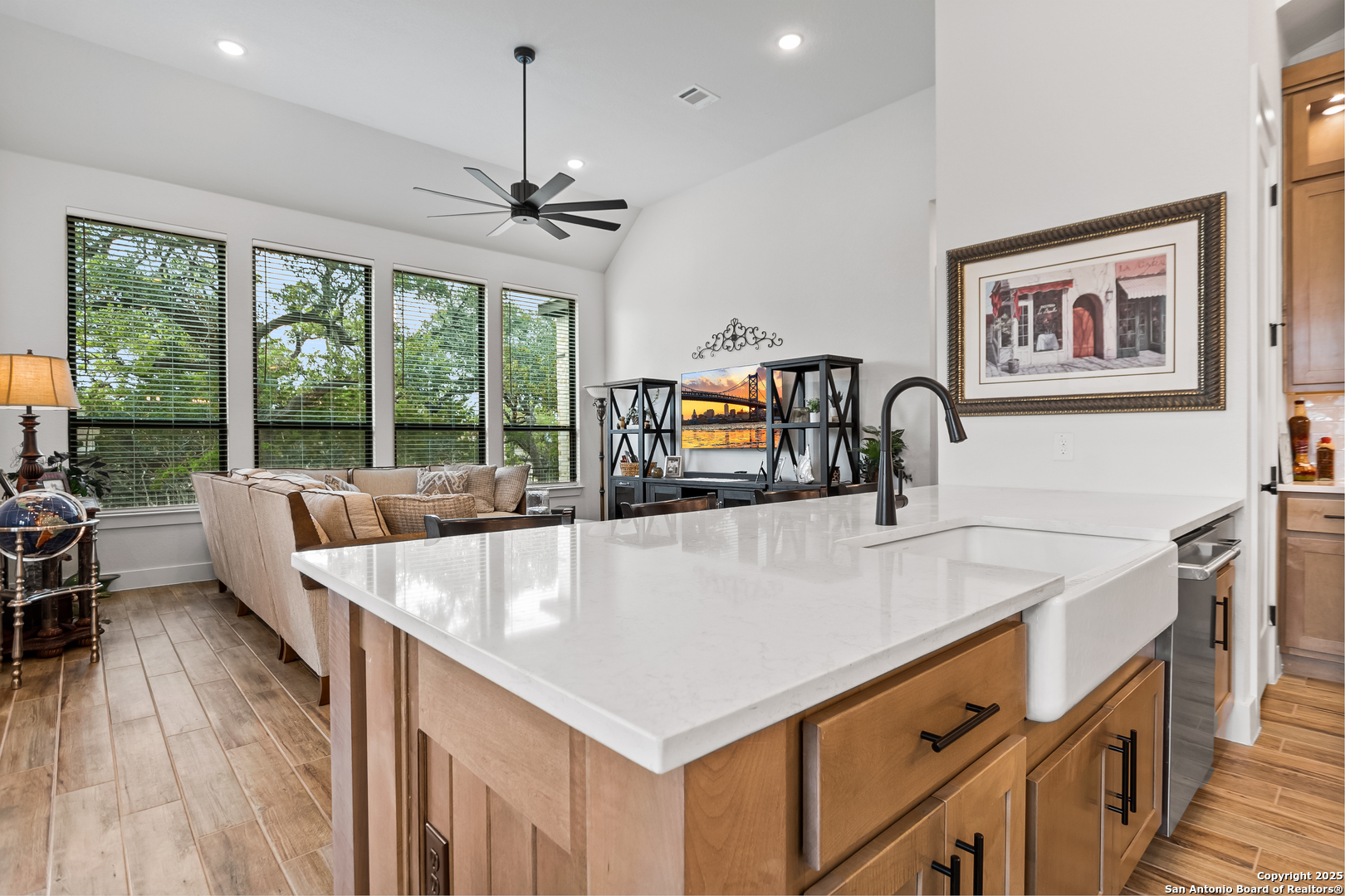 Welcome to this stunning and highly upgraded 216 Model Home Floorplan-a true showpiece in the sought-after Ventana Estates community. Enter through elegant double doors into a bright, open layout featuring high ceilings and expansive windows that flood the home with natural light. The farmhouse-style chef's kitchen is a dream come true, showcasing GE Cafe appliances, a double oven, and a spacious island perfect for entertaining. An enhanced secondary butler's pantry adds both function and flair, complete with a wine fridge, coffee service station, and abundant storage. Retreat to your private primary suite, where the spa-quality en-suite bath offers the ultimate in relaxation. Three additional bedrooms, each with their own en-suite bathrooms, provide comfort and privacy for family and guests alike. A dedicated office and a separate game/media room make this home as functional as it is beautiful. The enormous laundry and craft room delivers exceptional counter space and storage-ideal for any lifestyle. Designer upgrades throughout the home highlight its craftsmanship and attention to detail. An oversized three-car garage offers ample parking and storage. Nestled on a private cul-de-sac backing to lush greenspace, this oversized lot provides peace, privacy, and plenty of room for outdoor living. Conveniently located near shopping, dining, and all things Bulverde, this home truly has it all. Don't miss your chance to make this incredible property yours. Come see it today and fall in love!