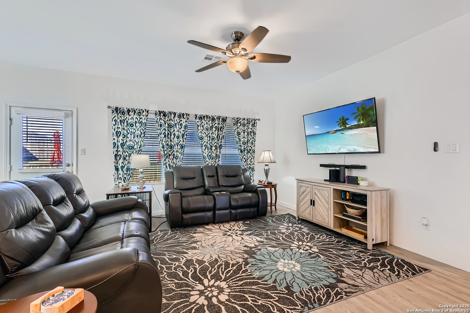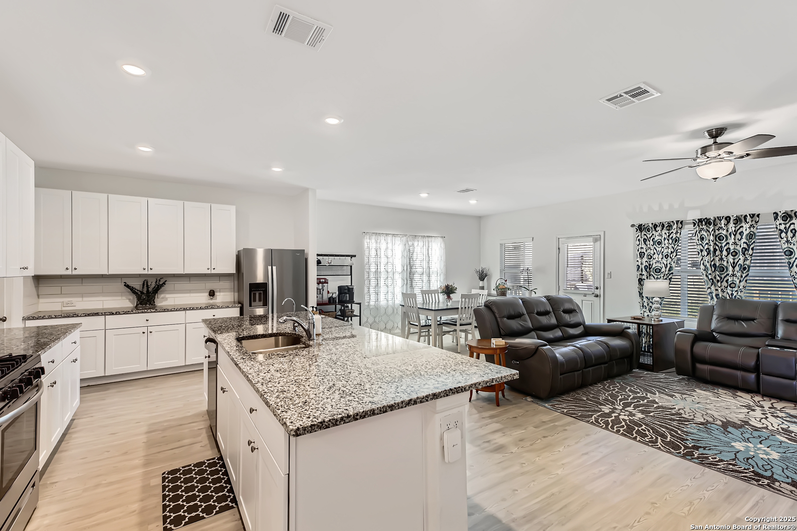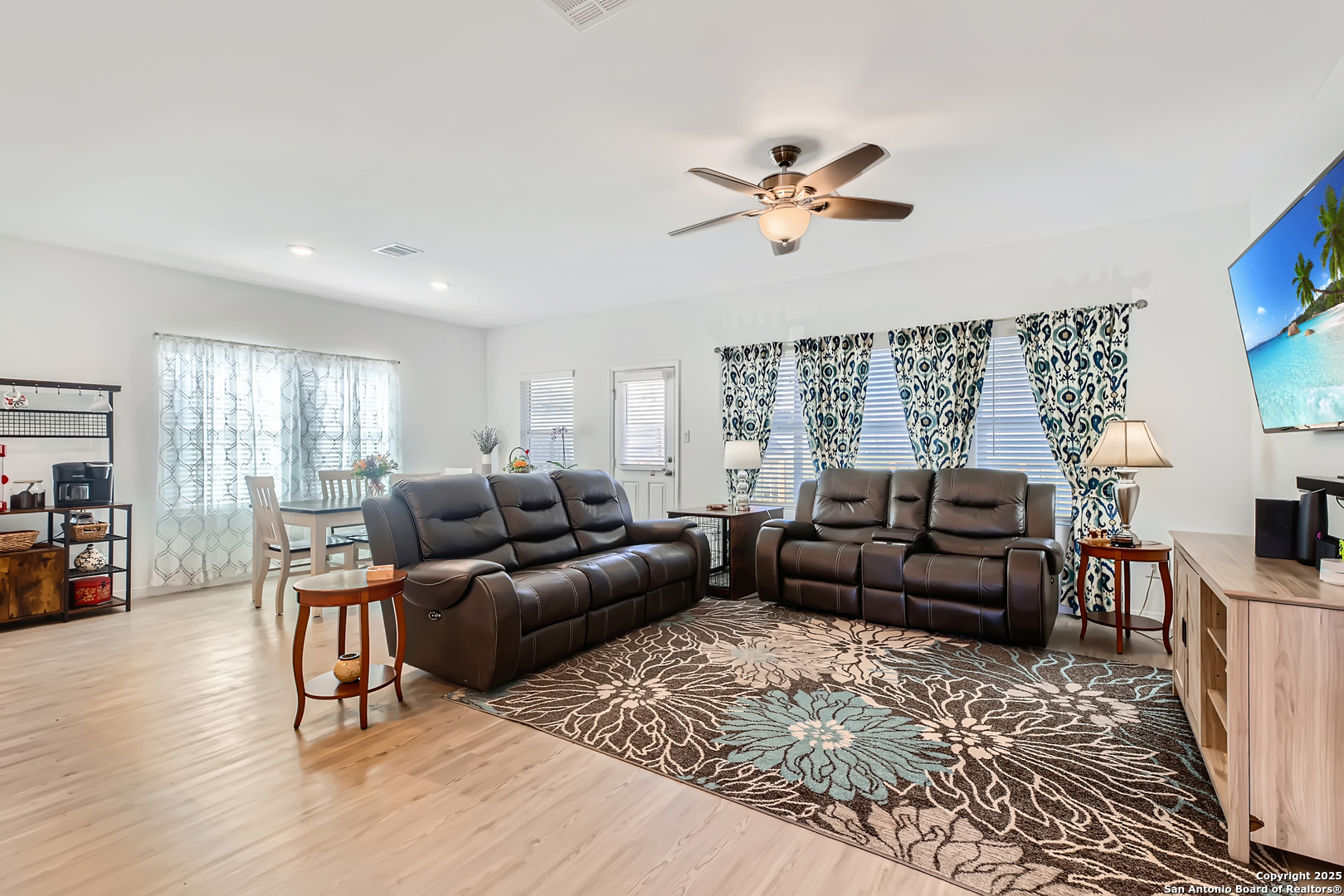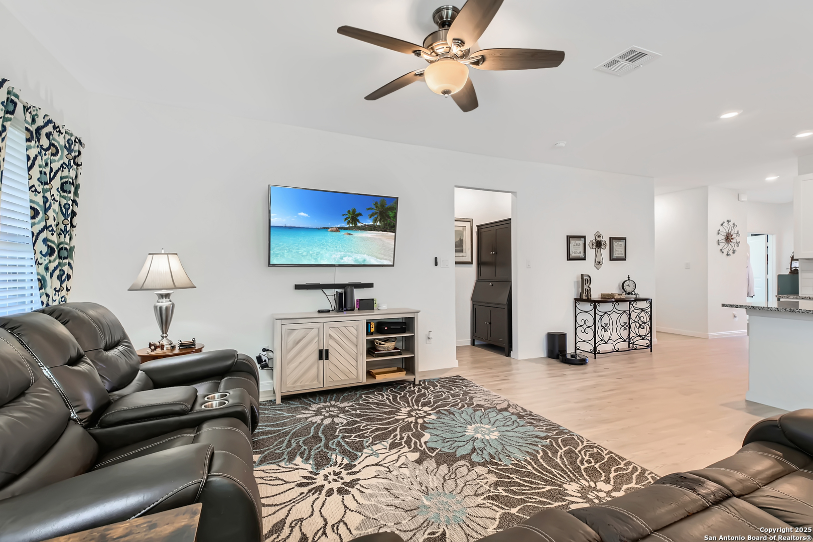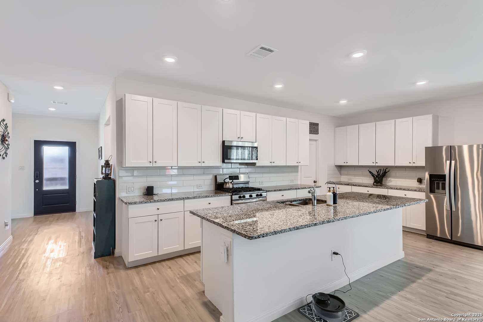 Check out this stunning 2023-built home located in the sought-after Hidden Trails Community. With 5 spacious bedrooms, a dedicated office, a cozy loft, and an open-concept layout, this home is perfect for families and entertainers alike. The modern kitchen is a chef's dream, offering a large island, Energy Star appliances, and ample cabinet space. The living area is bathed in natural light, creating a bright and inviting atmosphere. The primary suite is your personal sanctuary, featuring dual vanities, a walk-in shower, and a generous walk-in closet. Outside, you'll love the charming front porch and expansive deck, ideal for relaxing or hosting guests. The three-car garage offers plenty of space for vehicles and storage. With energy-efficient features throughout, this home combines comfort and savings. Enjoy everything Hidden Trails has to offer, including a sparkling pool, a fully-equipped 24/7 gym, scenic trails, a fishing pond, and a variety of community events. Conveniently located within the Comal ISD, this home isn't just a place to live-it's a lifestyle. Don't miss your chance to see it for yourself-schedule a tour today!
