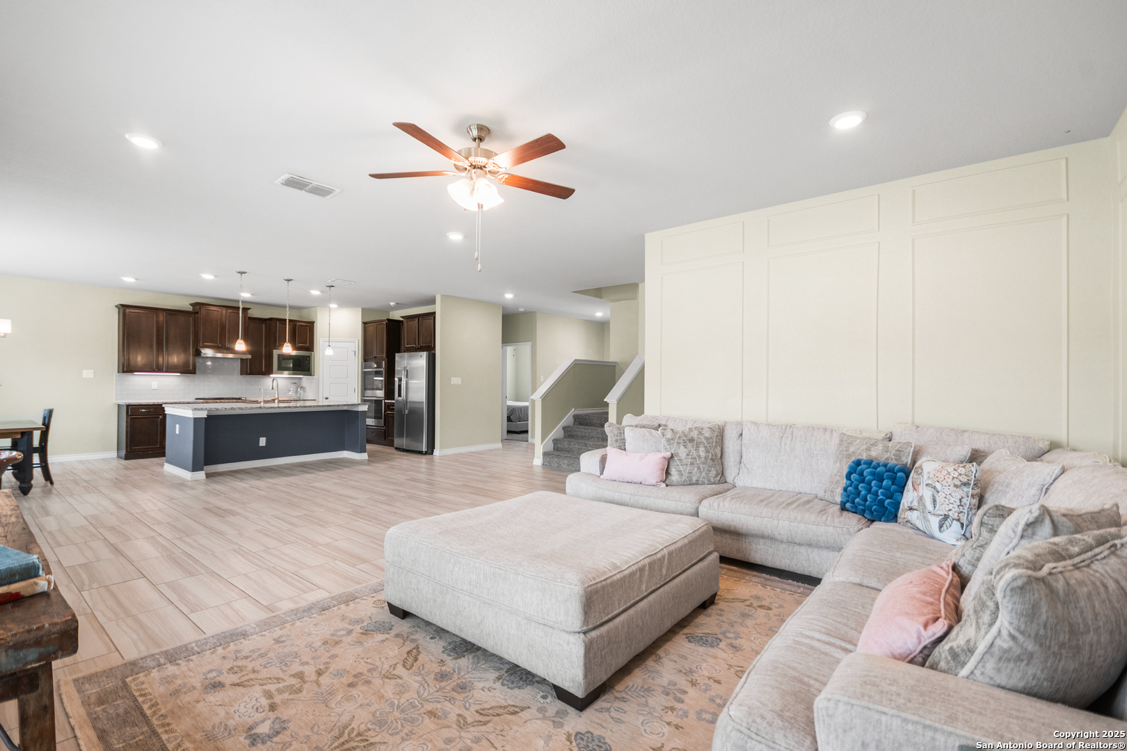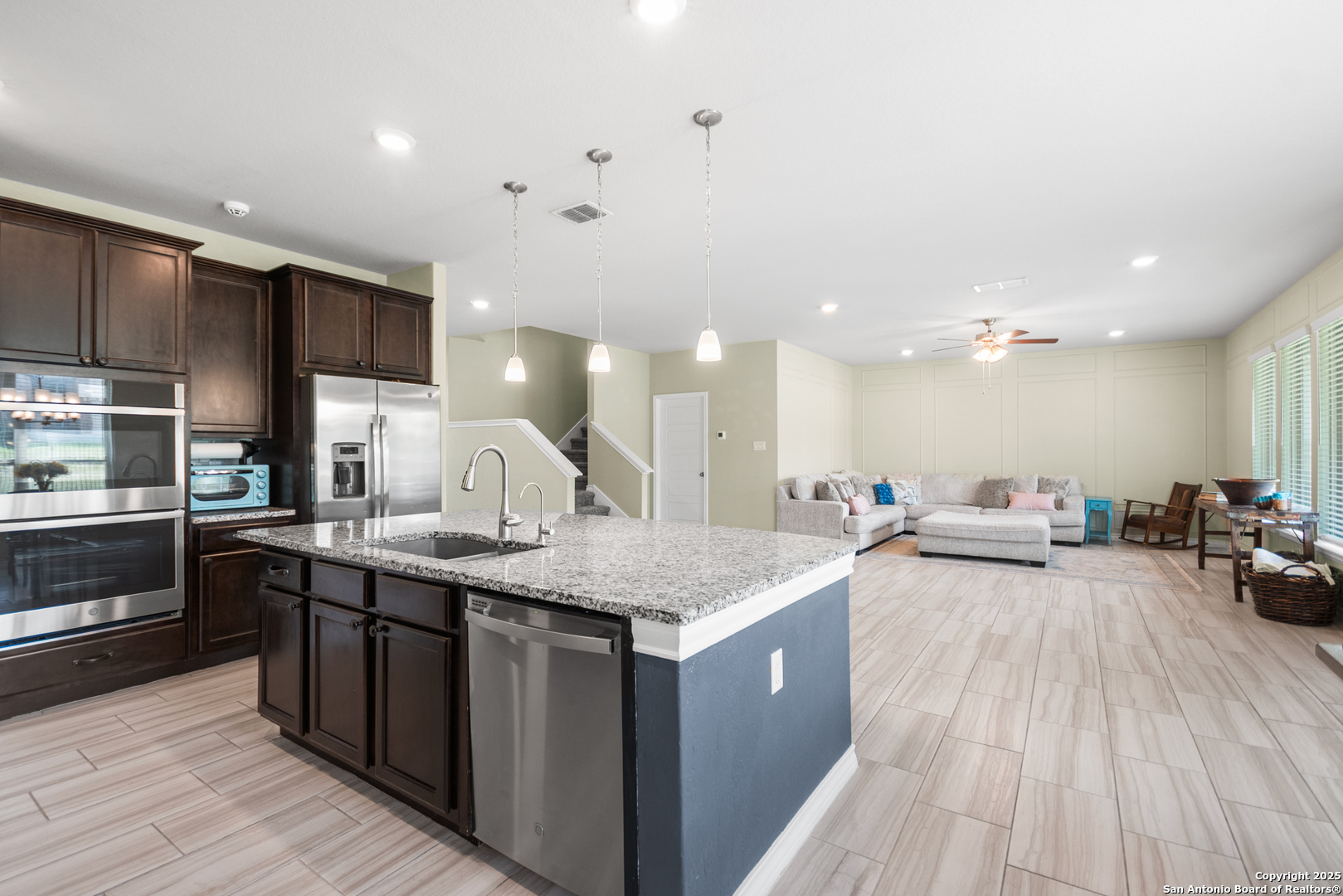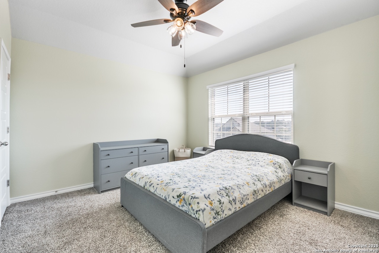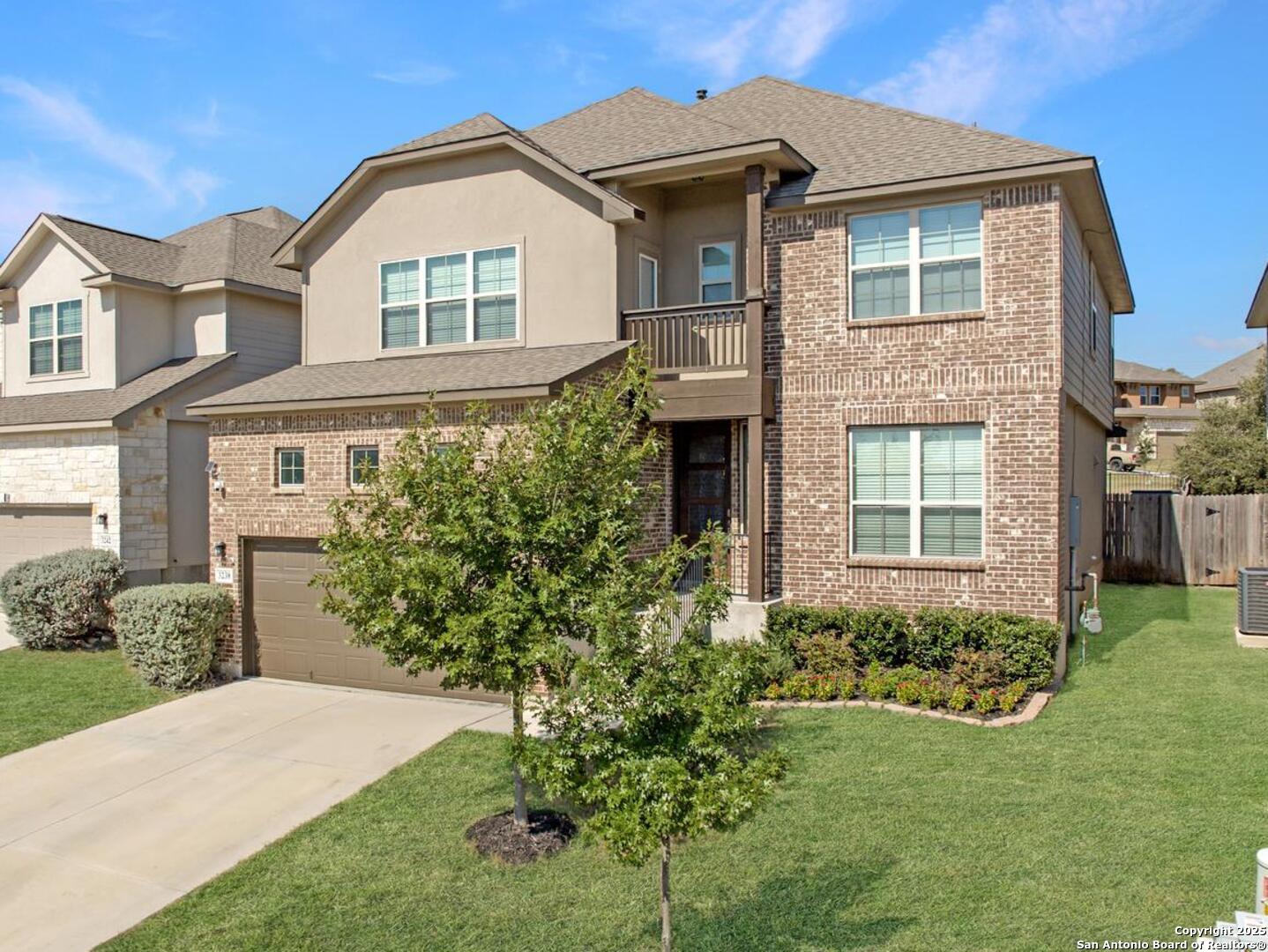 **Extra Incentive for Buyers Representative **Welcome to this beautifully upgraded and thoughtfully maintained 2,767 square foot home offers 5 bedrooms, 4 full bathrooms, and a spacious open-concept layout ideal for both everyday living and entertaining. With high ceilings, an extra-large kitchen island, 42" cabinets, a double oven, and under-cabinet lighting. Downstairs offers a private guest suite and a full bath, while upstairs includes a loft with a Juliet balcony, three additional bedrooms (one with an ensuite), and the primary suite and primary bath. Recent updates include fresh interior paint, new lighting fixtures, upgraded showerheads, hardware throughout, and elegant picture framing in the living room. A larger laundry room includes a second built-out pantry with floor-to-ceiling shelving for extra storage. Energy-efficient features such as a radiant attic barrier, tankless water heater, and energy-efficient windows are paired with an insulated garage featuring an electric car charging station. Enjoy outdoor living with a covered patio and ceiling fan, a firepit area, and a shed-all backing to a greenspace with no backyard neighbors. Located in a quiet, low-light community with trails and a pool, and with the roof and home only four years old, this home is turnkey ready. Don't miss this one-of-a-kind property, come enjoy the quiet neighborhood, away from the city with little to no light pollution - and gaze at the stars from your new back porch! *Please note - the current homeowner has protested the taxes and was able to get the valuation down from the low $ 500,000s to $426,000. With the homestead exemption, it lowered their taxes from $14k down to $7,697!