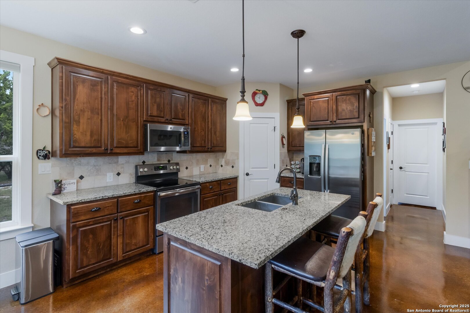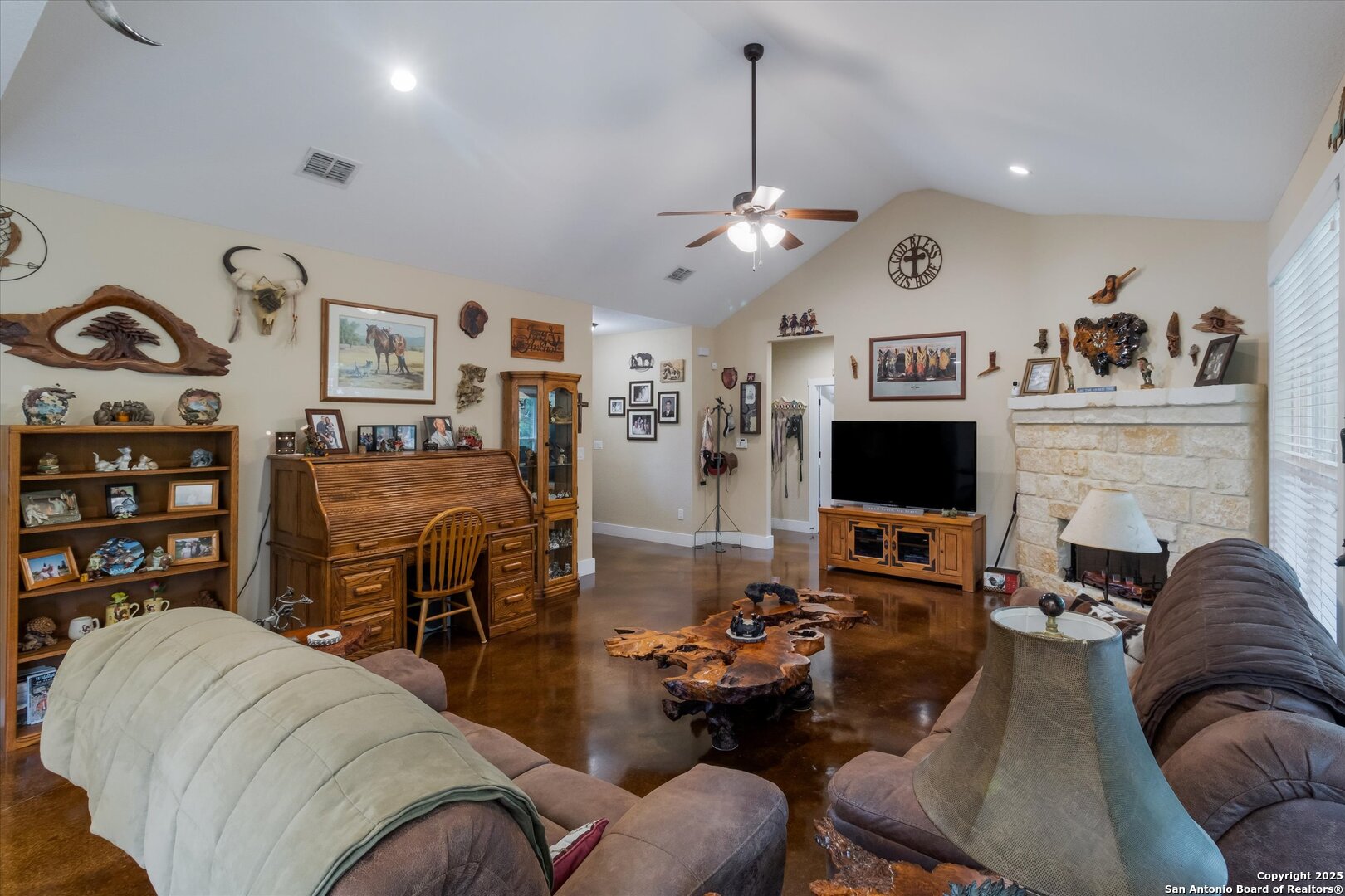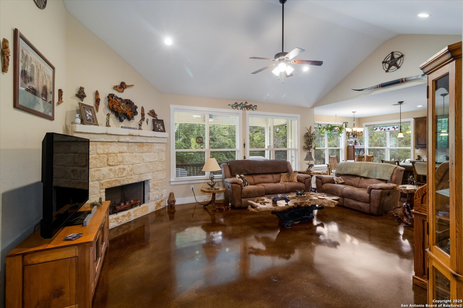 Beautifully Maintained 3/2/2 Home on Nearly an Acre - Prime Location! This lovingly cared-for home offers the perfect blend of comfort, convenience, and low-maintenance living. Situated on a spacious cul-de-sac lot just under an acre, this 3-bedroom, 2-bathroom, 2-car garage home features stained concrete floors throughout, high ceilings, and custom cabinetry - combining durability with style. Enjoy the ease of single-story living with an open layout designed for everyday comfort and entertaining. The property includes dedicated RV and boat storage, making it ideal for outdoor enthusiasts. Located within walking distance to the local high school and just minutes from shopping, dining, and recreational activities. With easy access to New Braunfels, San Antonio, Wimberley, and San Marcos, you'll love the central location that doesn't sacrifice space or privacy. Some furnishings are negotiable - making this move-in-ready home even more appealing!