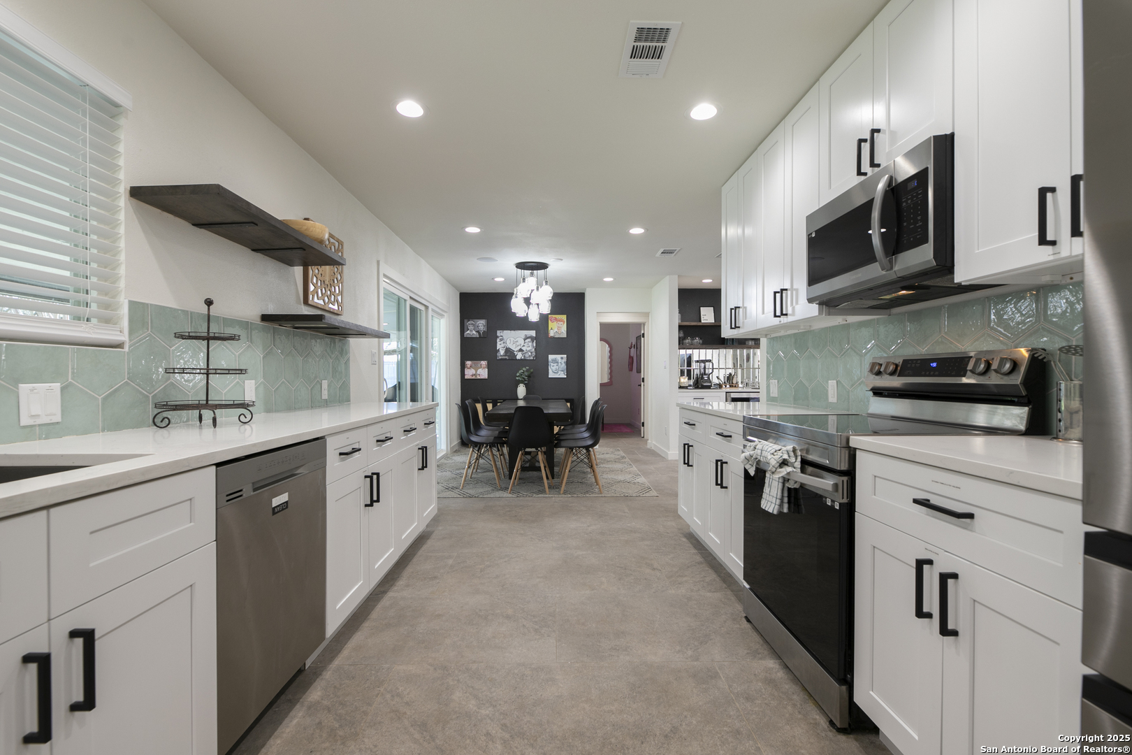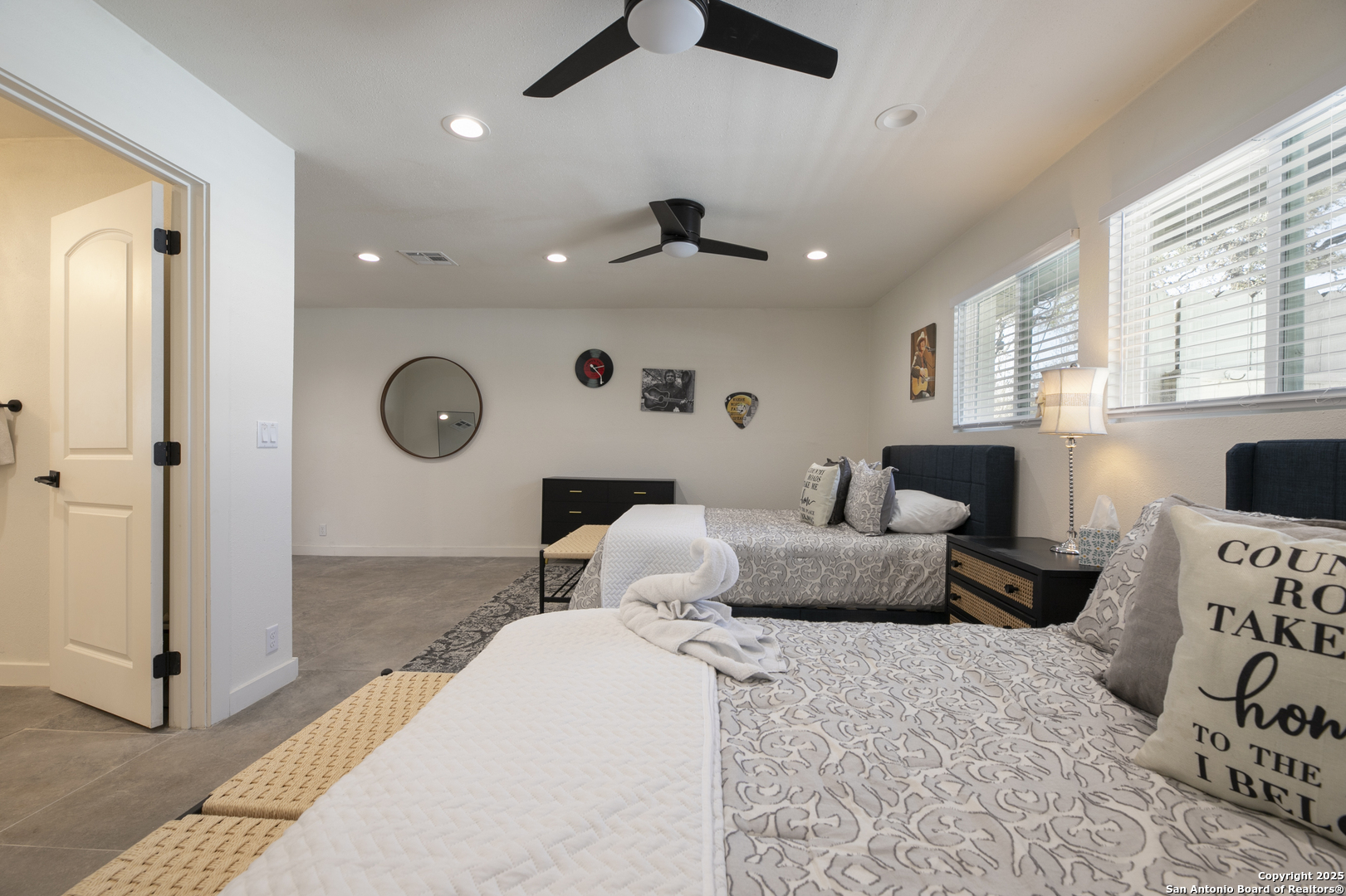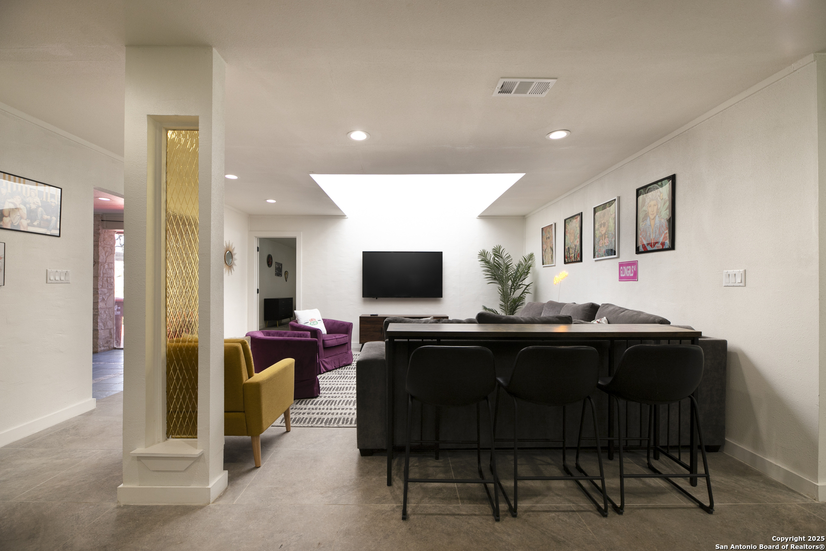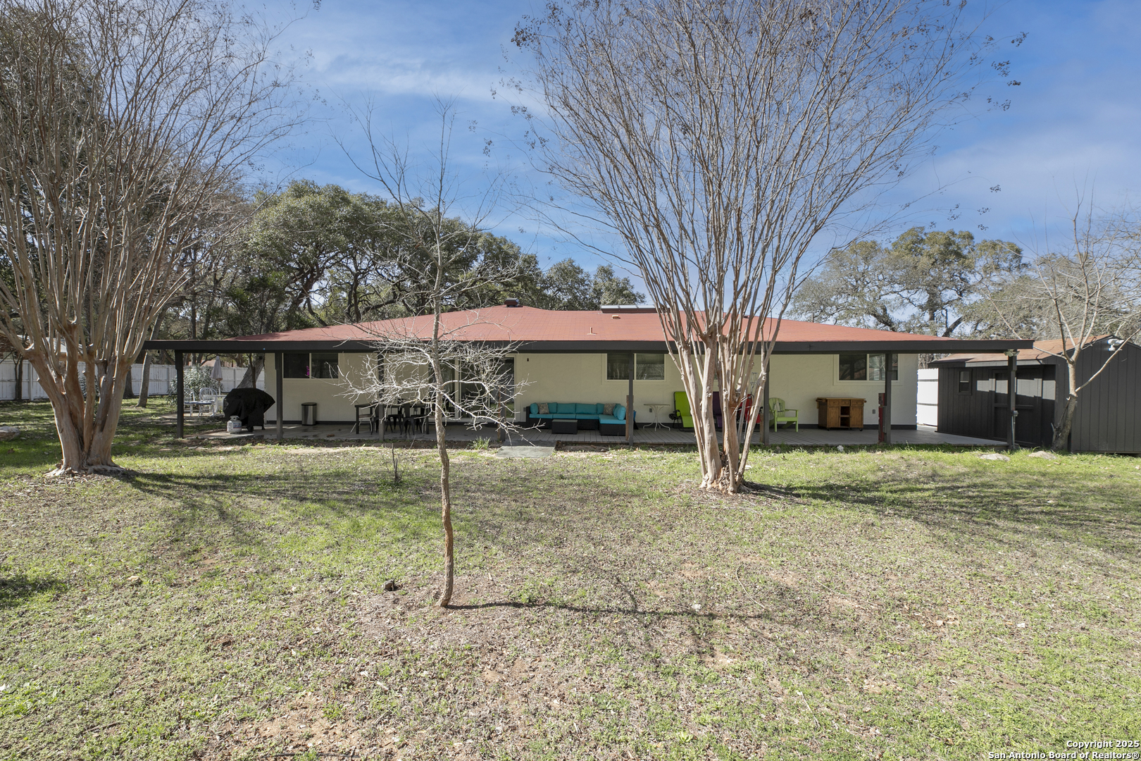 This stunning five-bedroom, four-bathroom home has been completely remodeled from top to bottom and is perfectly situated within walking distance of the Guadalupe River and Whitewater Amphitheater. Whether you're looking for a personal getaway or a short-term rental, this home offers both charm and modern convenience in an unbeatable setting. Sitting on over an acre of land beneath beautiful oak trees, this property is not in a floodplain-a rare and valuable find. The location makes it easy to walk to nearby tube rentals and enjoy a leisurely two-hour float on the river. The vibrant neighborhood is at the heart of all the action, providing the perfect mix of relaxation and entertainment. The renovation, completed in late 2023, took the home down to the studs, ensuring every detail was carefully updated. Everything is brand new, including the plumbing, electrical, septic system, HVAC, flooring, drywall, windows, and doors. The beautifully designed interior features solid wood, soft-close cabinets with quartz countertops, designer fixtures, and a blend of modern finishes with vintage charm. Vaulted ceilings, recessed lighting, and an open floor plan create a bright, inviting space ideal for entertaining or unwinding. For those looking for a seamless move-in or rental experience, some furnishings are negotiable as well. Don't miss this rare opportunity to own a one-of-a-kind home in a prime location. Schedule a showing today!