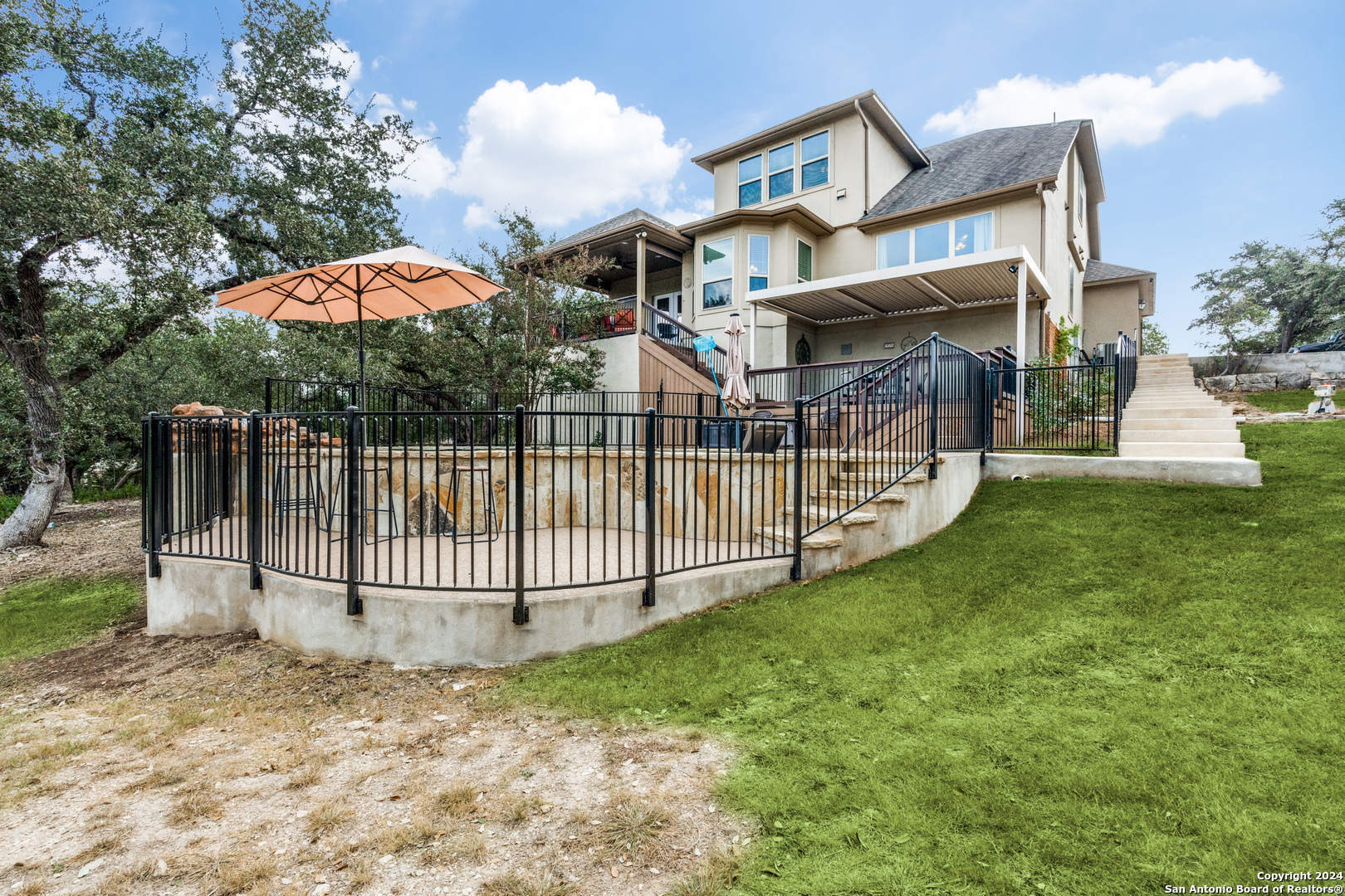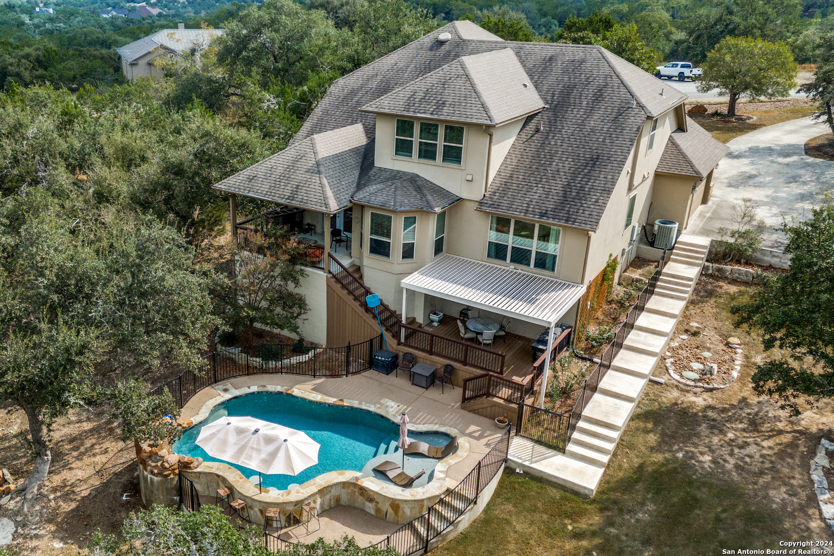 Welcome to your private hill country retreat on 2.5 acres of land in the highly sought after Mountain Springs Ranch community in Canyon Lake. This almost 3000 sq. ft. home offers luxury living at its finest! A grand entryway with soaring ceilings and unobstructed views of the Texas Hill Country is so inviting you will never want to leave! This spacious 4 bedroom 3 bath Sitterle built home has many windows throughout and offers the perfect blend of comfort, convenience and style. The inviting gas fireplace in the living room is perfect for curling up in a blanket with a good book! The home features two living areas both upstairs and downstairs giving you plenty of options to utilize the space! The well appointed kitchen opens up to the living room and is perfect for casual dining and with the double ovens and smooth stove top makes meal prep a breeze! The owners retreat is your private sanctuary with mesmerizing views of your outdoor oasis. It is conveniently located on the first floor and features a luxurious en-suite bathroom with a separate tub and shower. The study downstairs can also be converted into a guest bedroom equipped with its own bath. Upstairs you will find the additional living/loft area and the 3 secondary bedrooms with another full bath. Step outside and discover your own private paradise! The in-ground, fenced pool offers a refreshing escape right in your backyard, perfect for those warm Texas days. This outdoor space has show stopping VIEWS of the hill country with two covered patios and stairs leading down to the second level. For added convenience the laundry room is located on the lower level and the three car garage with stained concrete is very spacious and includes a water softener. The views, the glimmering swimming pool and waterfall, the home's open floor plan and high end features along with a prime location with easy access to Hwy. 46 makes it a MUST SEE! Don't let this one slip through your fingers... schedule your home showing TODAY!