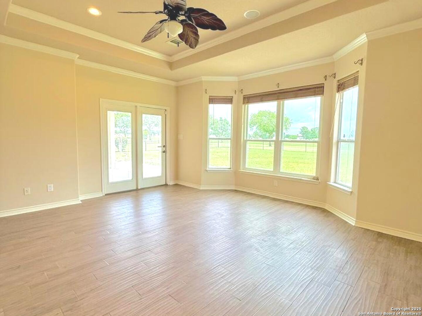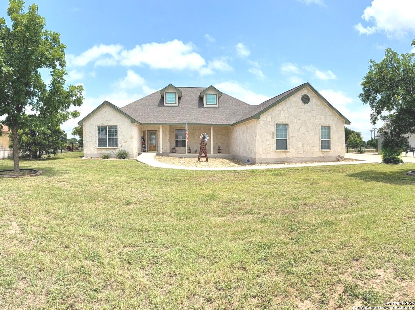 Welcome to this beautifully appointed "Like New" home, Sitting on the Golf Course, this 4-Bedroom, 3-bath home with a spacious 3-car garage, nestled in the heart of Castroville, TX, an enchanting historical Old West town in the San Antonio metropolitan area. Once know as an exurb of the iconic River Walk City, Castroville blends small-town charm with modern conveniences, still being served by the original Haby's Alsatian Bakery and Dziukes Meat Market. Situated on a generous .689-lot within the highly sought-after Alsatian Golf Community, this home offers a rare opportunity to enjoy luxury living in a peaceful country setting. With tasteful finishes throughout and a like-new feel, every detail of this residence reflects pride of ownership and blends elegance with function. Whether you're teeing off at the beautifully maintained golf course or hosting guests at the nearby Alsatian RV Resort, (RV hook up in place), you'll appreciate the blend of recreation/relaxation. The resort offers a full suite of amenities, perfect for visiting friends and family. Conveniently located just (29 miles to the River Walk, 33 miles to the SA Int'l Airport, 22 miles to Sea World, and 33 miles to Fiesta TX and UTSA, this property offers both serenity and accessibility. Don't miss your chance to own this special home in one of Texas' most distinctive communities-homes like this don't last long! (RV Hook up on property, as well...), 3 CAR GARAGE has full decking in attic for an abundance of storage!