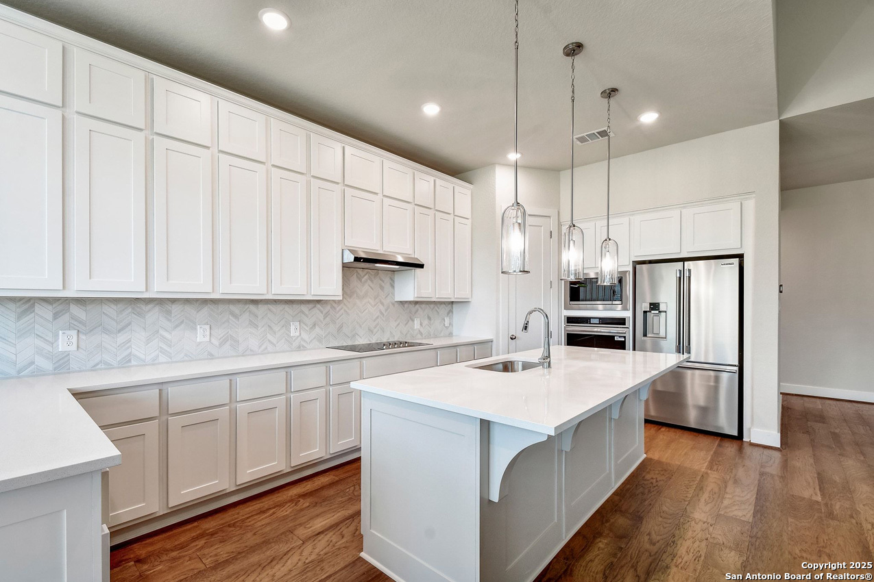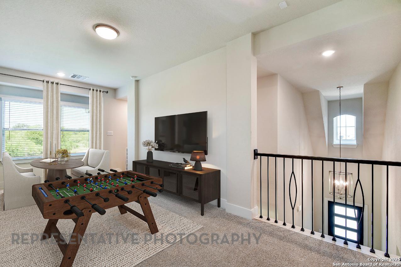 Welcome to this stunning, newly built 4-bedroom, 3-bathroom home, featuring a spacious open-concept layout with high ceilings and an abundance of natural light. The heart of the home boasts a large kitchen with sleek white cabinetry, built-in stainless-steel appliances, and ample counter space, perfect for cooking and entertaining. The expansive living area flows effortlessly into the dining and kitchen spaces, making it ideal for modern living. The upstairs entertainment room provides a quiet space for watching movies or relaxation. Large windows throughout the home let in tons of light, creating a bright and airy atmosphere. The downstairs primary suite is a private retreat with a generous walk-in-closet and a luxurious en-suite bathroom, complete with dual vanities a walk-in-shower and a freestanding bathtub. An additional bedroom and a convenient full bath are located downstairs. Upstairs, two additional bedrooms share a beautifully appointed bathroom and a Gameroom. Outside, you'll enjoy the peacefulness of a covered front porch and back patio, perfect for outdoor gatherings. With no rear neighbors, you can enjoy added privacy and serene views. A spacious 2-car garage provides plenty of storage space. Located in a desirable neighborhood, this home combines style, functionality, and modern convenience. Don't miss the opportunity to make it yours!