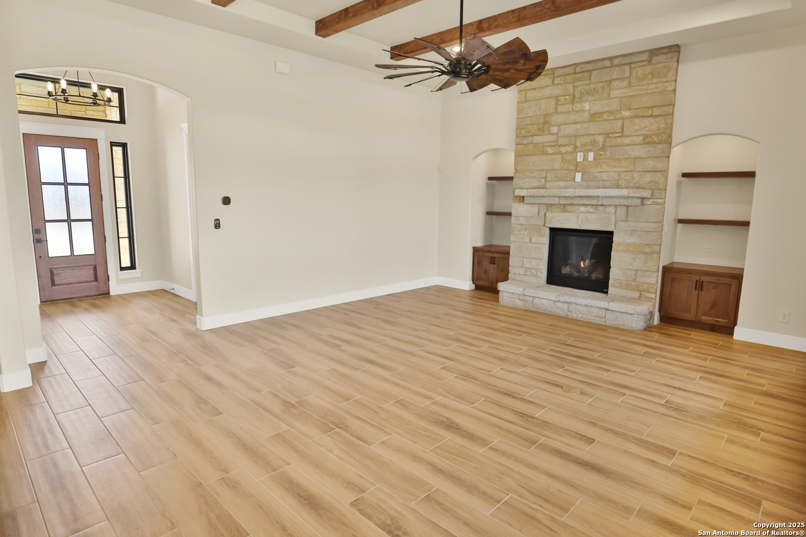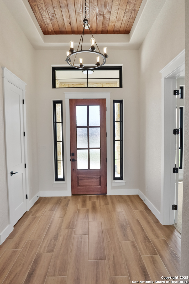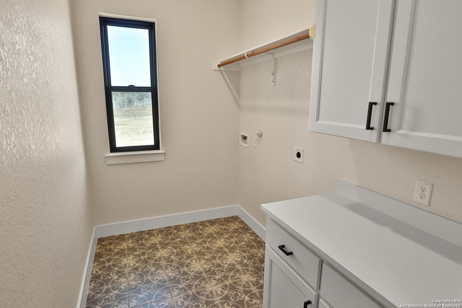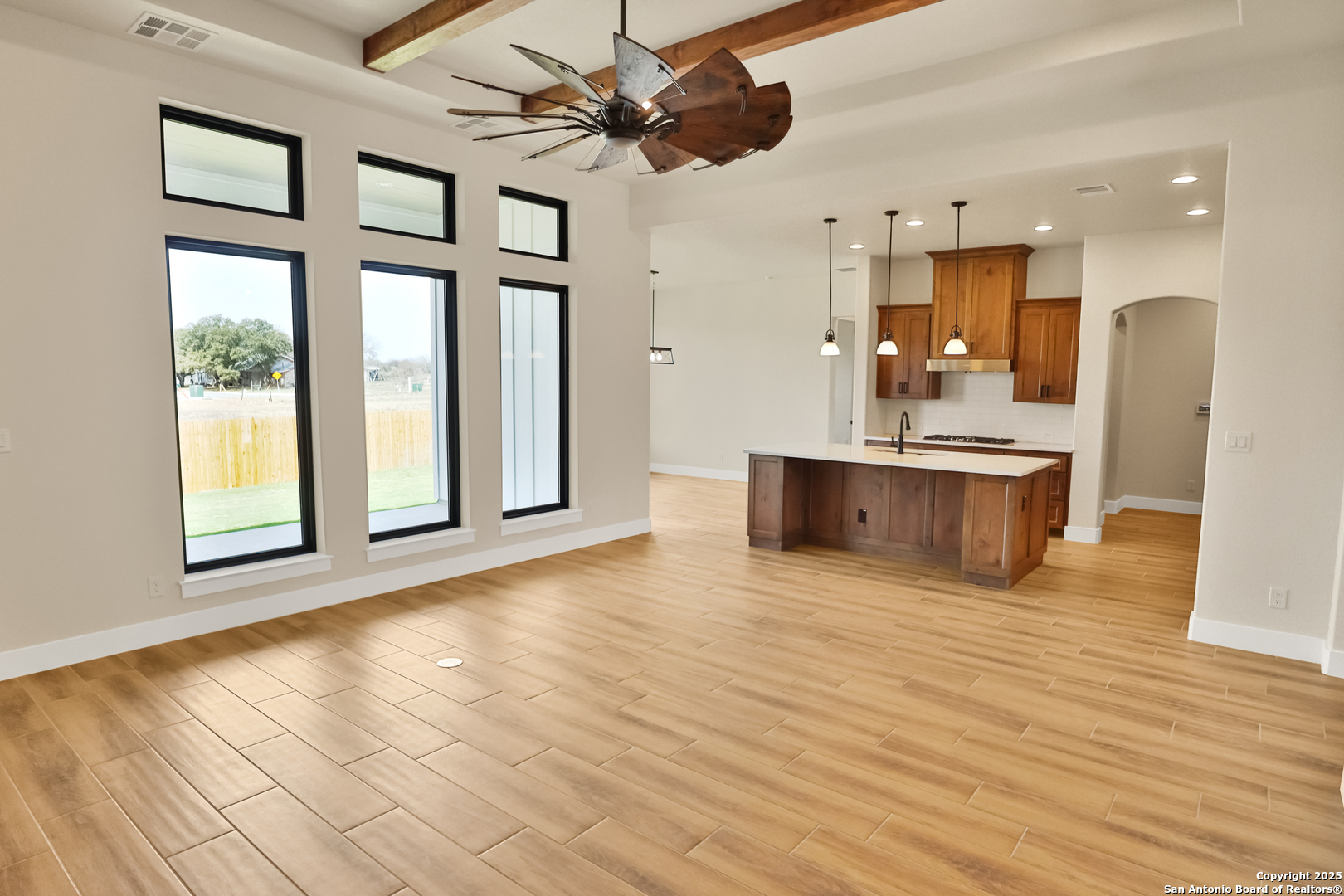 This luxurious custom quality home is located on a quiet cul-de-sac in Castroville's Country Village Estates just minutes from west San Antonio. The home is 2,535 sq. ft. and features 3 bedrooms, 2.5 baths, a dedicated office, and an oversized 2 car garage. A large kitchen island, stainless Bosch appliances, quartz counters, custom cabinets with soft close hinges, pull-out spice racks and a Butler's pantry with custom features are sure to impress. The full-height stone fireplace, flanked by built in shelving and cabinets, is a focal point in the living room. Primary Bedroom has a luxurious bath with a free-standing tub, oversized tile shower, and dual vanities. Energy efficiency is a primary focus with a 49 HERS rating including composite frame Energy Star Low-E windows, spray foam insulation in exterior walls (R-18), roof rafters (R-20), and attic walls (R-15), comfort thermostat for energy savings, continuous hot water with tankless gas water heater, EPA WaterSense toilets, and Energy Star fixtures and appliances throughout. This Builder's attention to detail makes this a must-see property!