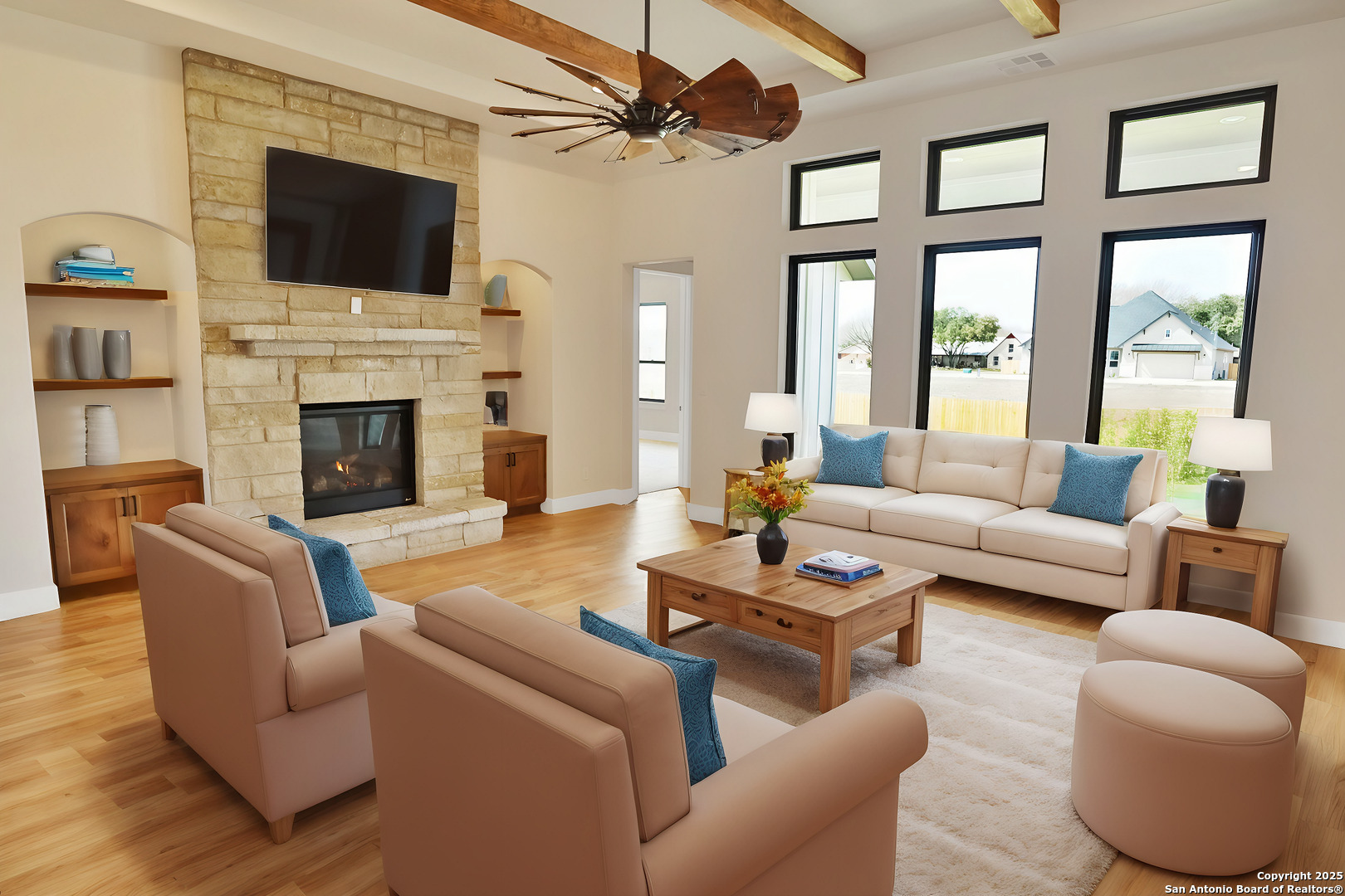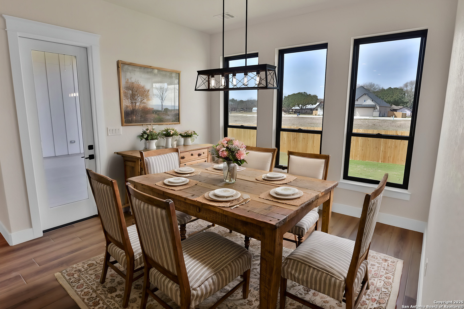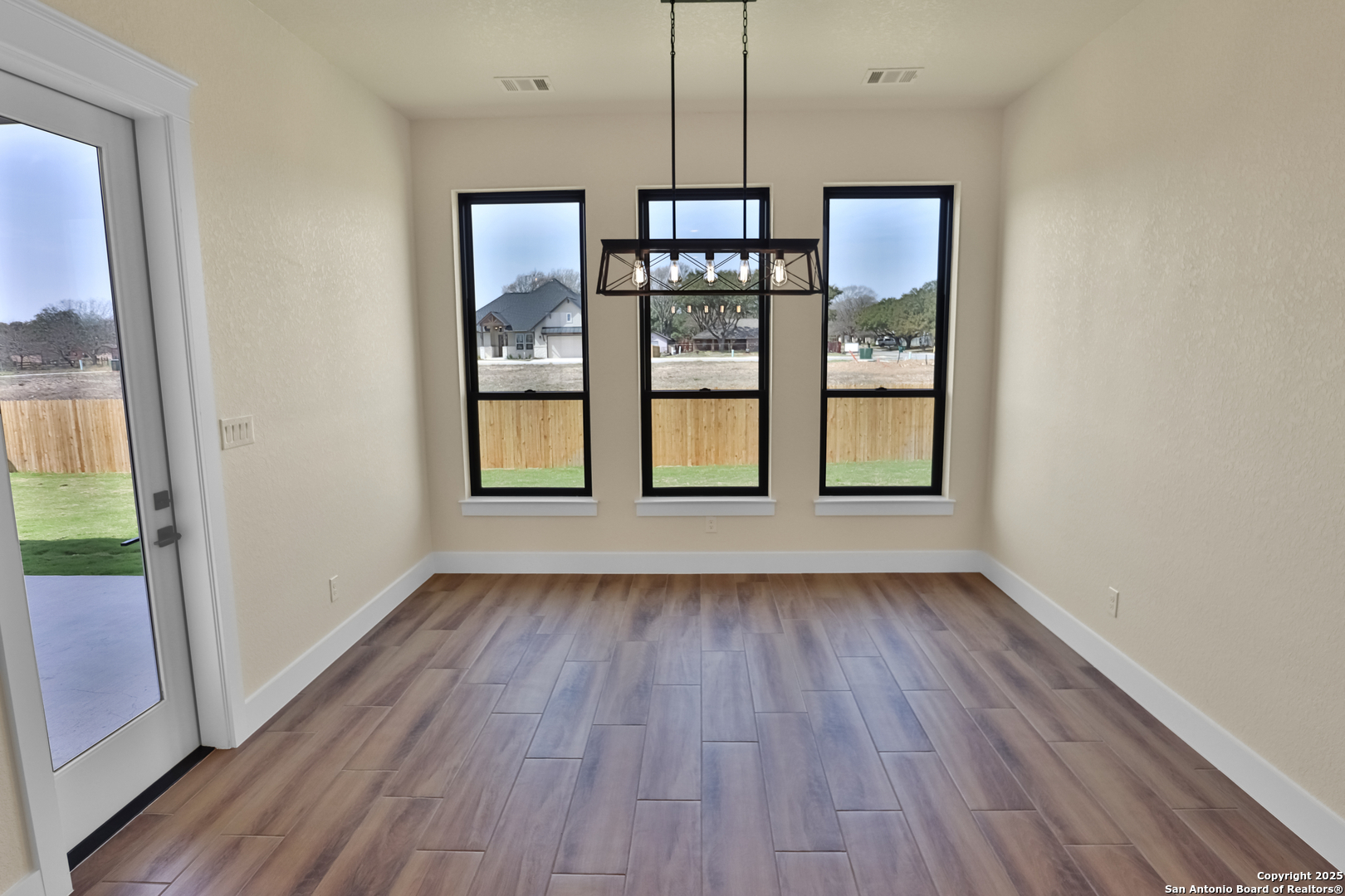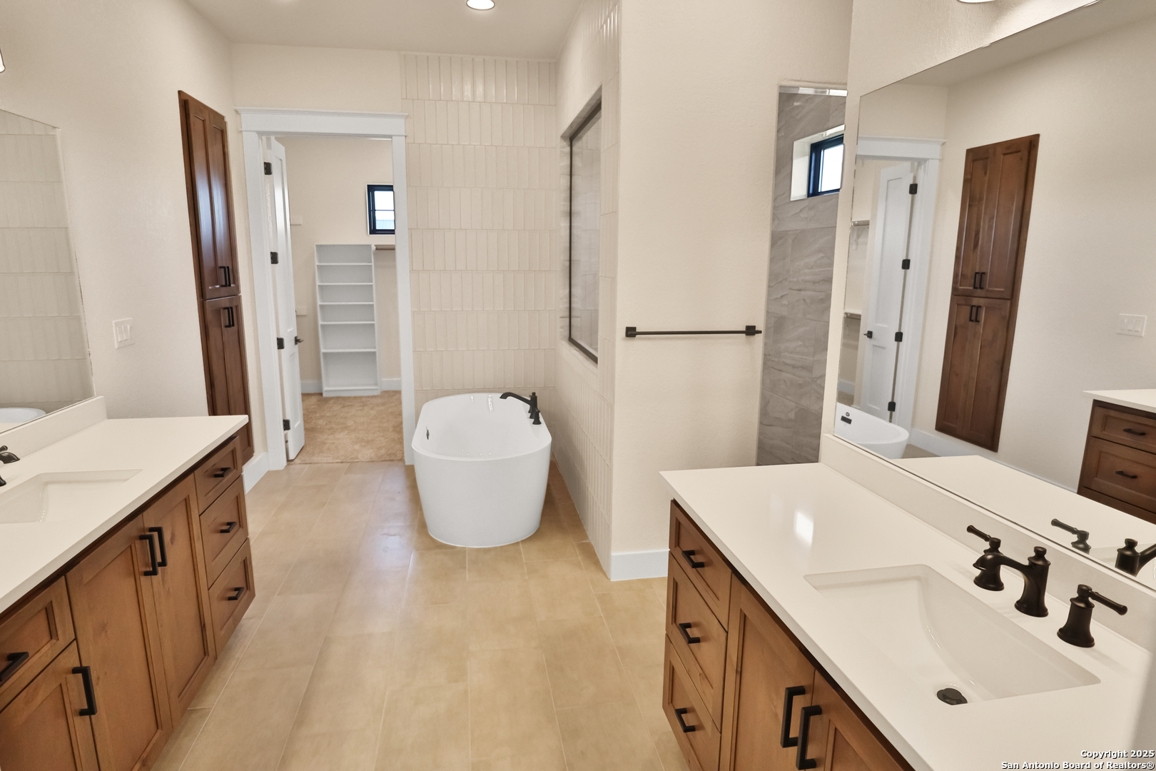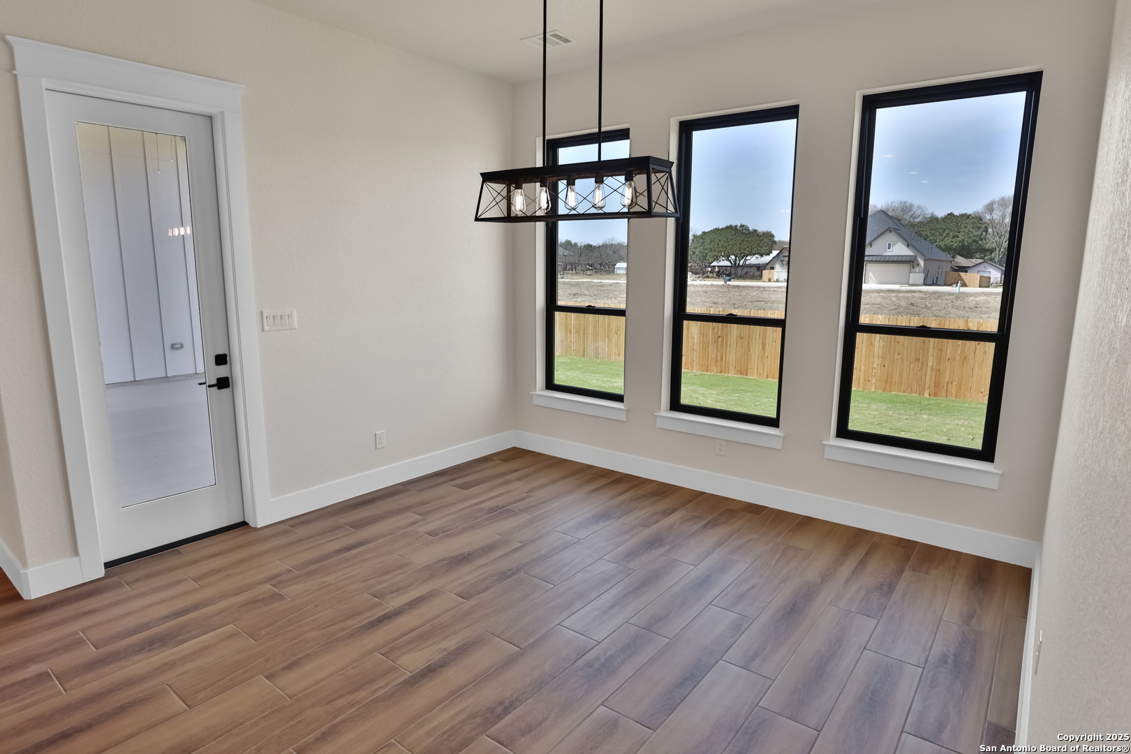 This luxurious custom quality home is located on a quiet cul-de-sac in Castroville's Country Village Estates just minutes from west San Antonio. The home is 2,535 sq. ft. and features 3 bedrooms, 2.5 baths, a dedicated office, and an oversized 2 car garage. A large kitchen island, stainless Bosch appliances, quartz counters, custom cabinets with soft close hinges, pull-out spice racks and a Butler's pantry with custom features are sure to impress. The full-height stone fireplace, flanked by built in shelving and cabinets, is a focal point in the living room. Primary Bedroom has a luxurious bath with a free-standing tub, oversized tile shower, and dual vanities. Energy efficiency is a primary focus with a 49 HERS rating including composite frame Energy Star Low-E windows, spray foam insulation in exterior walls (R-18), roof rafters (R-20), and attic walls (R-15), comfort thermostat for energy savings, continuous hot water with tankless gas water heater, EPA WaterSense toilets, and Energy Star fixtures and appliances throughout. This Builder's attention to detail makes this a must-see property!