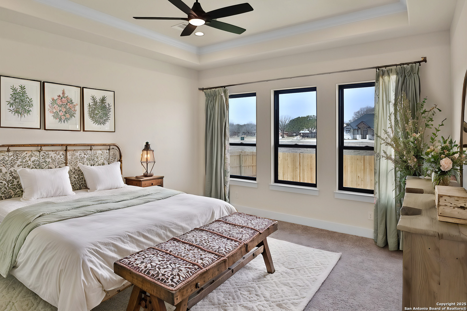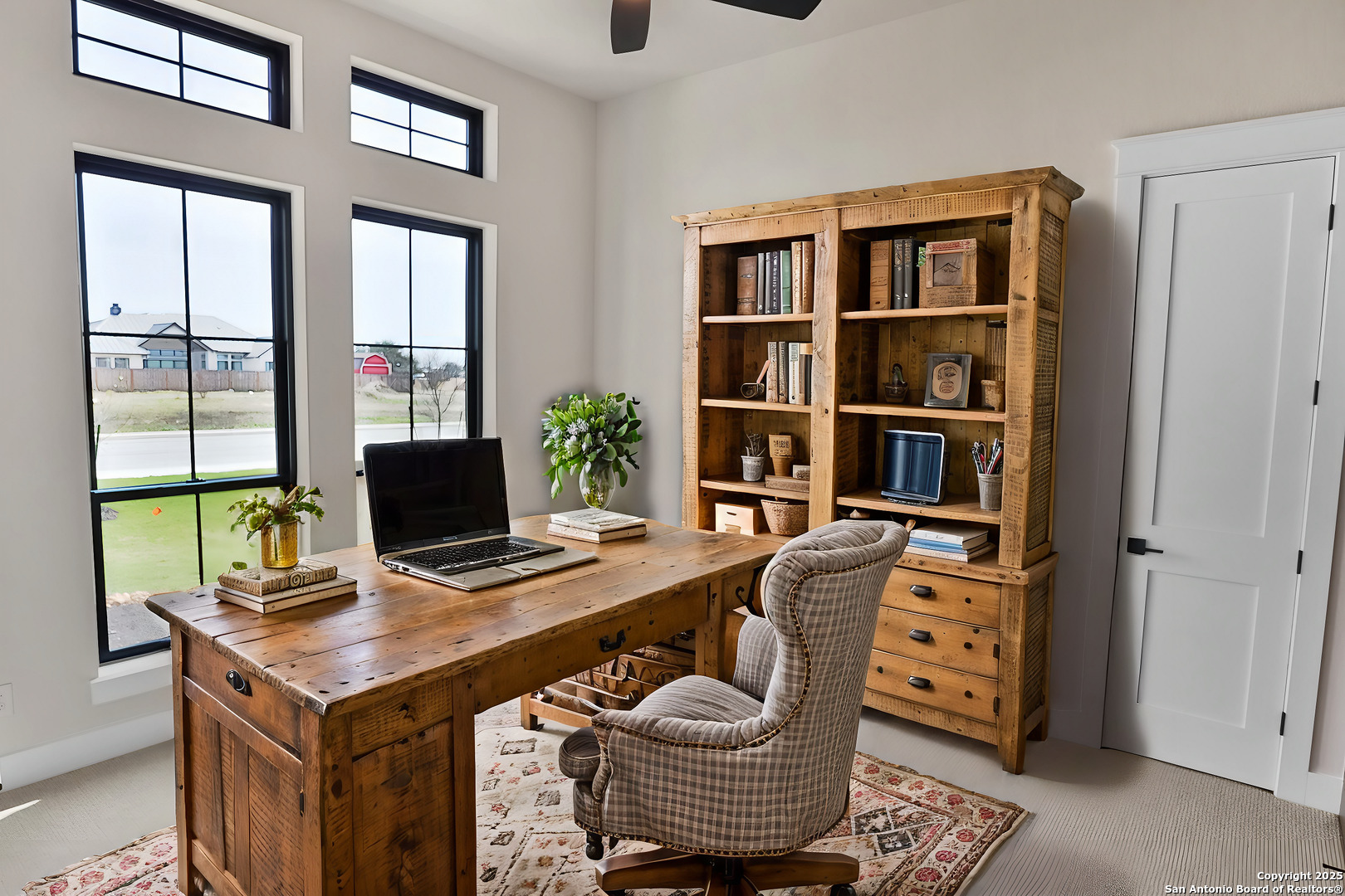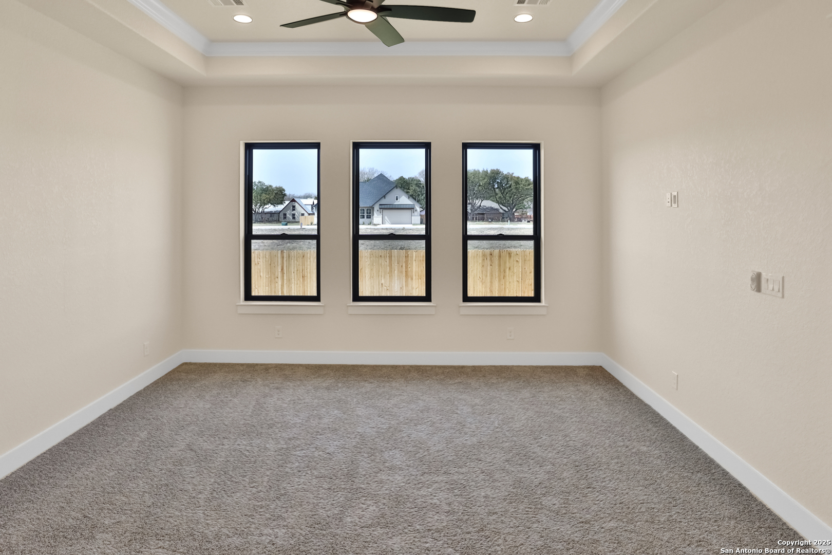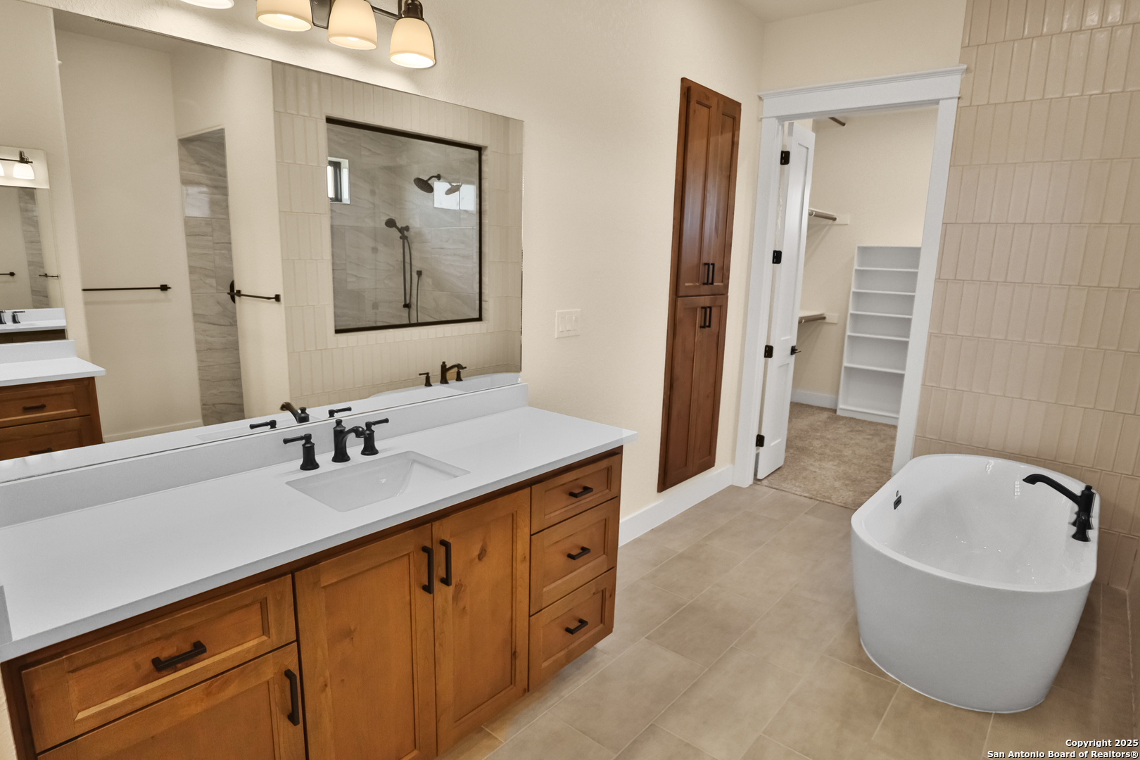 This luxurious custom quality home is located on a quiet cul-de-sac in Castroville's Country Village Estates just minutes from west San Antonio. The home is 2,535 sq. ft. and features 3 bedrooms, 2.5 baths, a dedicated office, and an oversized 2 car garage. A large kitchen island, stainless Bosch appliances, quartz counters, custom cabinets with soft close hinges, pull-out spice racks and a Butler's pantry with custom features are sure to impress. The full-height stone fireplace, flanked by built in shelving and cabinets, is a focal point in the living room. Primary Bedroom has a luxurious bath with a free-standing tub, oversized tile shower, and dual vanities. Energy efficiency is a primary focus with a 49 HERS rating including composite frame Energy Star Low-E windows, spray foam insulation in exterior walls (R-18), roof rafters (R-20), and attic walls (R-15), comfort thermostat for energy savings, continuous hot water with tankless gas water heater, EPA WaterSense toilets, and Energy Star fixtures and appliances throughout. This Builder's attention to detail makes this a must-see property!