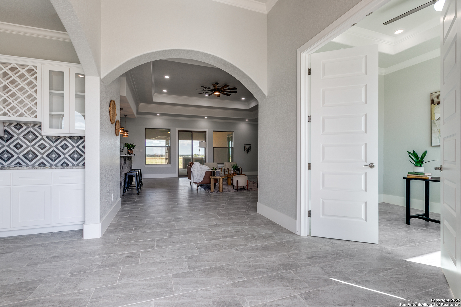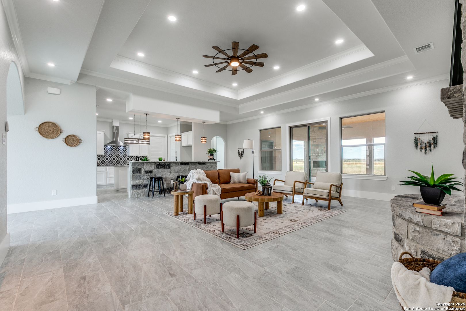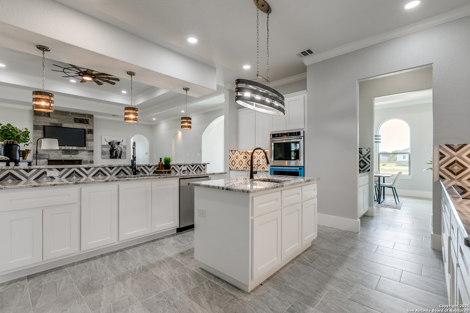 Stunning Mediterranean-Style Home on 1 Acre in Gated Paraiso Community This stunning one-story Mediterranean-style home sits on a full acre in the private, gated Paraiso community-a serene enclave of just 15 homes offering the perfect blend of country living and modern luxury. Designed with a contemporary open-concept layout, the spacious living and dining areas flow seamlessly into a dream kitchen featuring custom cabinetry, two oversized islands, designer lighting, and impeccable tile and countertop finishes-ideal for entertaining or family gatherings. This home offers 5 bedrooms, 4 baths, an office, game room, and exercise room, providing flexibility for every lifestyle. Step outside to an entertainer's paradise with a large covered patio, stone fireplace, outdoor kitchen, and half bath for guests. The 3-car garage and expansive yard offer endless opportunities for customization. Built with energy-efficient spray foam insulation, this home combines beauty, comfort, and sustainability. Centrally located with easy access to downtown Castroville (under 4 miles), Potranco Rd. (2 miles north), and just minutes from the new Microsoft plant at Potranco and 471. From downtown Castroville, enjoy a direct route to Lackland AFB. This is truly a must-see home that offers the best of both worlds-luxury and tranquility, all within reach of city conveniences.