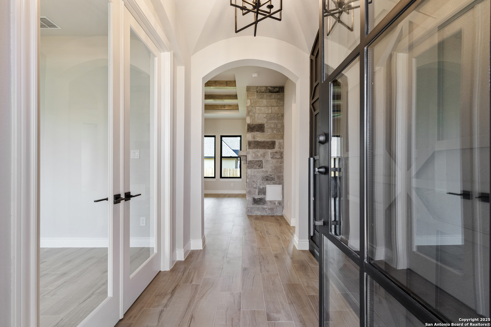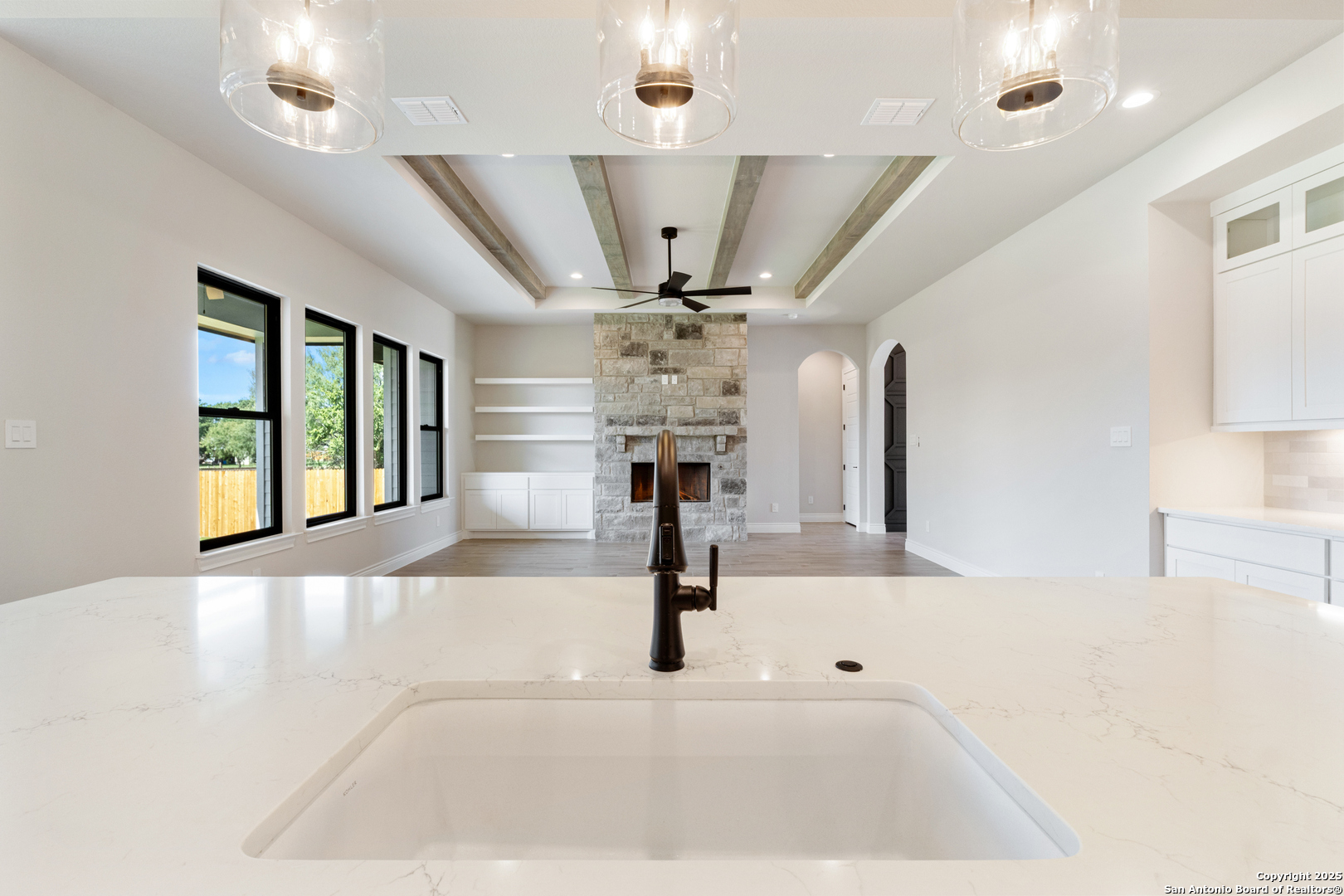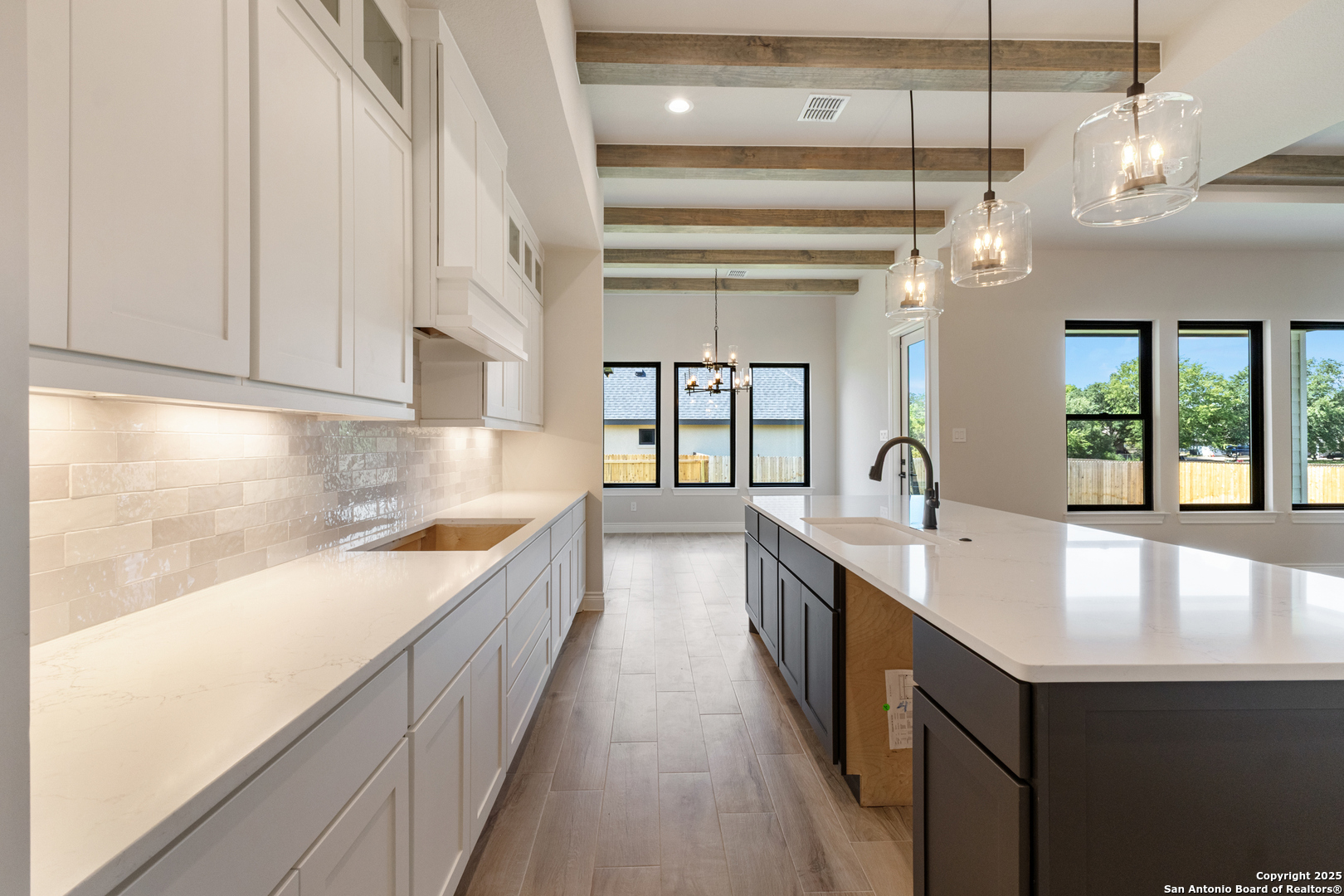 Tucked in on a quiet corner lot, this brand-new home by Integrity Homes delivers size, style, and serious function. With 4 beds, 3.5 baths, a dedicated office, and an upstairs loft, there's space to live, work, and host with ease. || The main floor features 10' ceilings, 8' doors, a striking accent wall, fireplace with built-ins, and a show-stopping 10' kitchen island. You'll also find quartz counters, soft-close cabinets, under-cabinet lighting and plugs, and a walk-in pantry, all tied together with modern black fixtures and a sleek metal staircase railing. || The primary suite is oversized with a large walk-in closet and frameless shower. Every secondary bedroom includes its own walk-in, and the upstairs fourth bedroom comes with its own full bath, offering extra privacy for guests or family. || Outside, enjoy the oversized front porch and large covered patio. A 3-car garage, irrigation system, dual water heaters, and a water softener loop round out the list of features. || Quietly set just off Hwy 90 in Castroville, this home blends small-town charm with modern comfort.