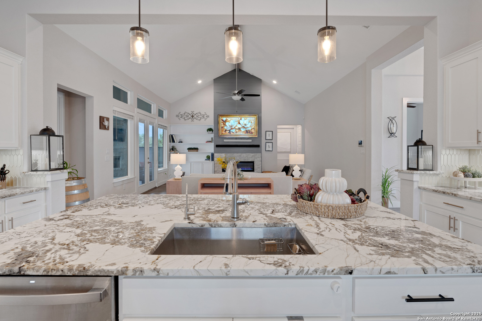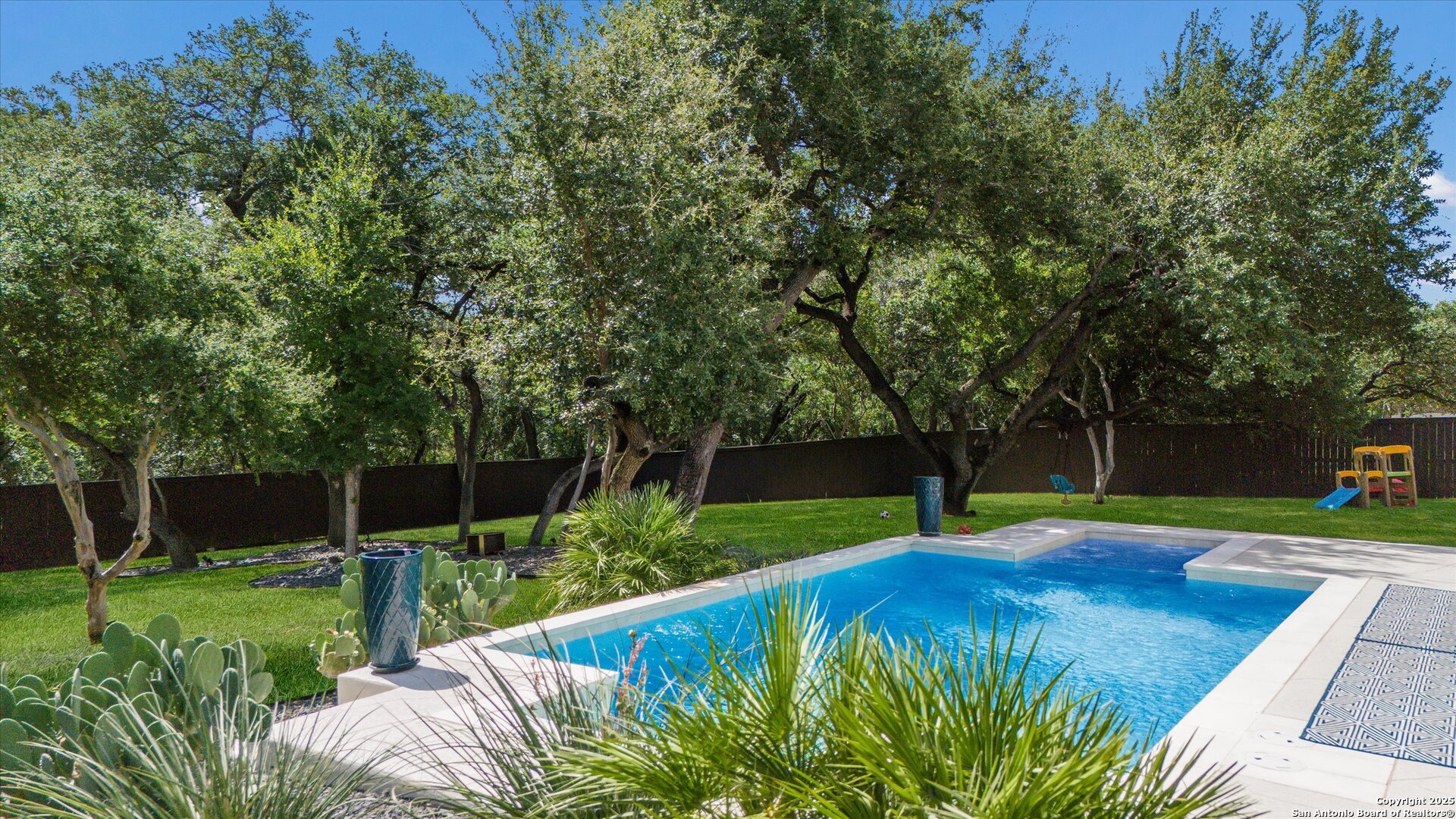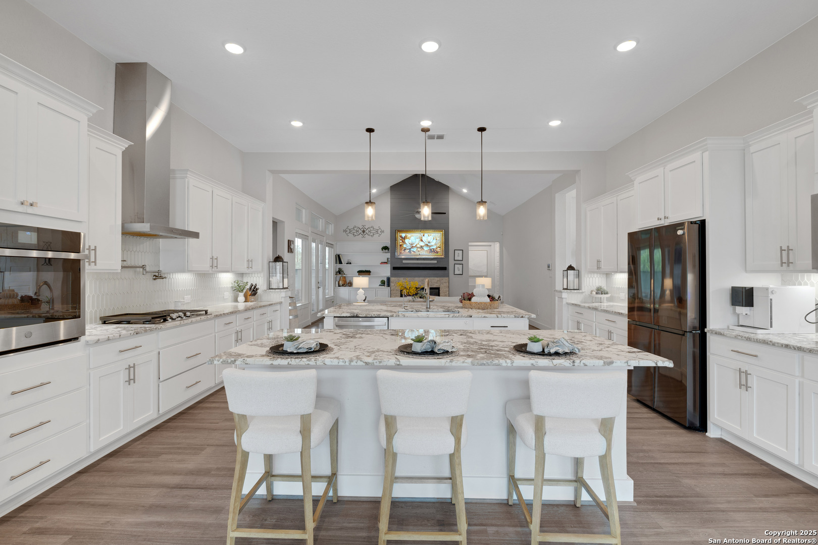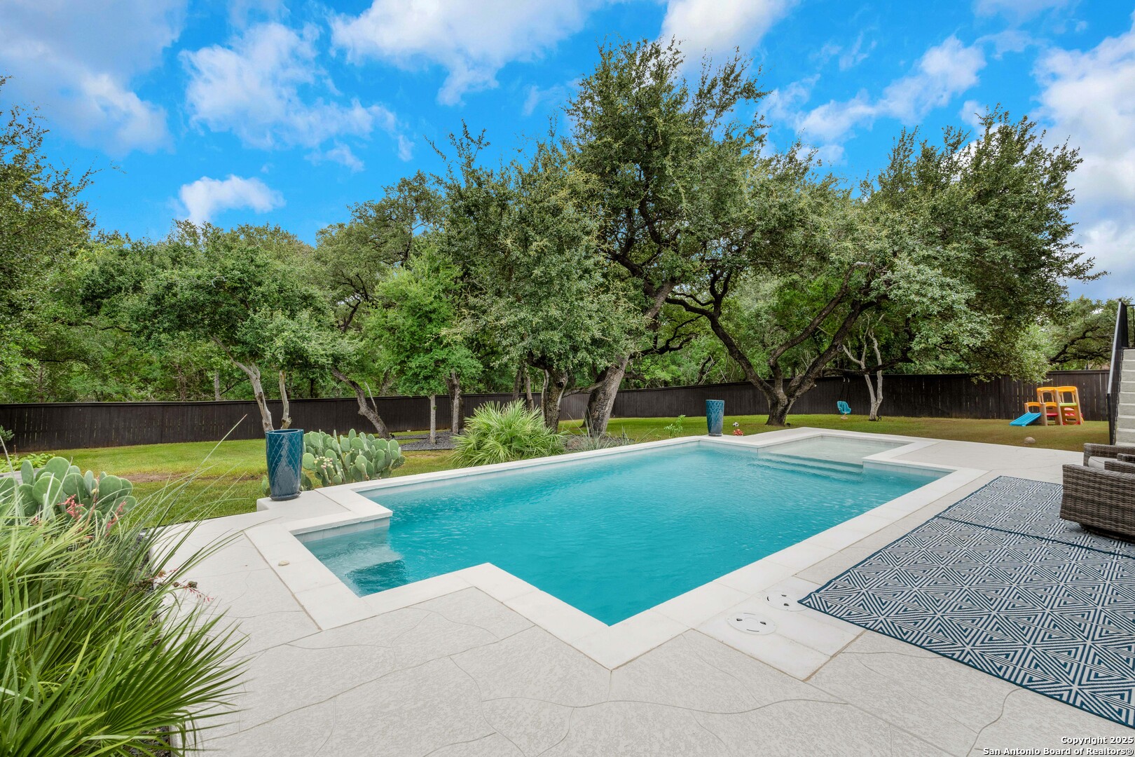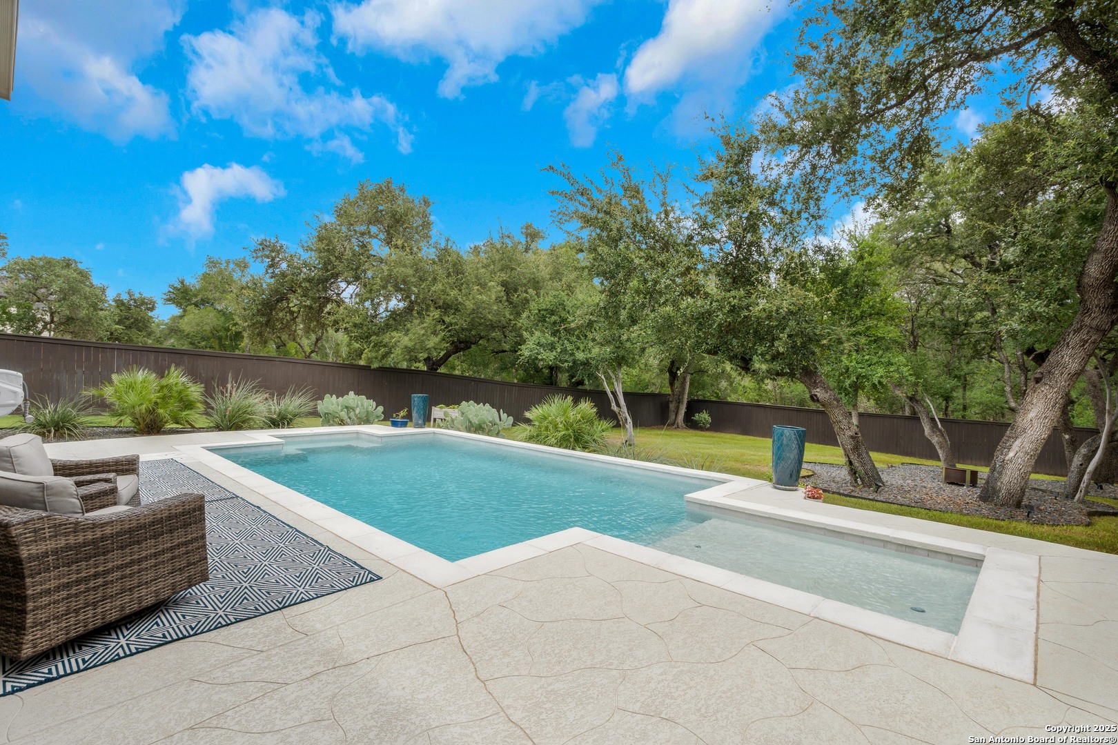 3.88% VA Assumable Loan available! Congratulations! You have found your next home! This absolutely stunning one-story home features one of Chesmar's most popular floor plans with soaring ceilings and a wide open layout that's built for both everyday living and entertaining! At the heart of the home is a spacious family room complete with custom-built-ins and a dramatic fireplace! The chef's kitchen features double islands, an oversized walk-in pantry, TONS of cabinetry and counter space, a reverse osmosis system, stainless steel appliances including a GE Profile five-burner gas cooktop, a convenient pot filler, and not one but two breakfast bars! Step outside to experience the incredible outdoor living area, beginning with a screened-in patio showcasing a cozy gas fireplace and stamped concrete floor. This opens to what just might be the most impressive backyard in the neighborhood! Enjoy the luxury of an in-ground pool with quad massaging jets, a sun deck with a sparkling fountain, and a state-of-the-art system that allows the pool to be heated or cooled to your preference. The .47 acre greenbelt lot is fully fenced and has a full sprinkler system to take care of the 20 mature trees that shade the professionally landscaped yard! The private primary suite offers custom window treatments, direct access to the outdoor living area, and a spa-like bathroom with a freestanding soaking tub, oversized walk-in shower, dual vanities, linen storage, and a custom walk-in closet with triple hanging rods and built-ins. Each spacious secondary bedroom has a private bath & a walk-in closet! The dedicated study features 12' ceilings and French doors for the ultimate work at home space! All mounted televisions are INCLUDED! Luxury utility room with cabinets, granite counters, refrigerator space, hanging rod and a drop zone just outside the door! The three car split garage boasts epoxy floors, custom storage shelving and a Defender Series water softener! Great location with easy access to Highway 90 & Loop 1604! Located in Medina Valley ISD with convenient access to Highway 90 and Loop 1604. Just minutes from Castroville attractions including Alsatian Golf Club, Castroville Regional Park, Haby's Alsatian Bakery, the Hillside Boutique Hotel, and more!