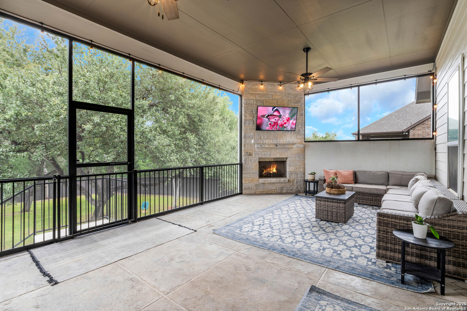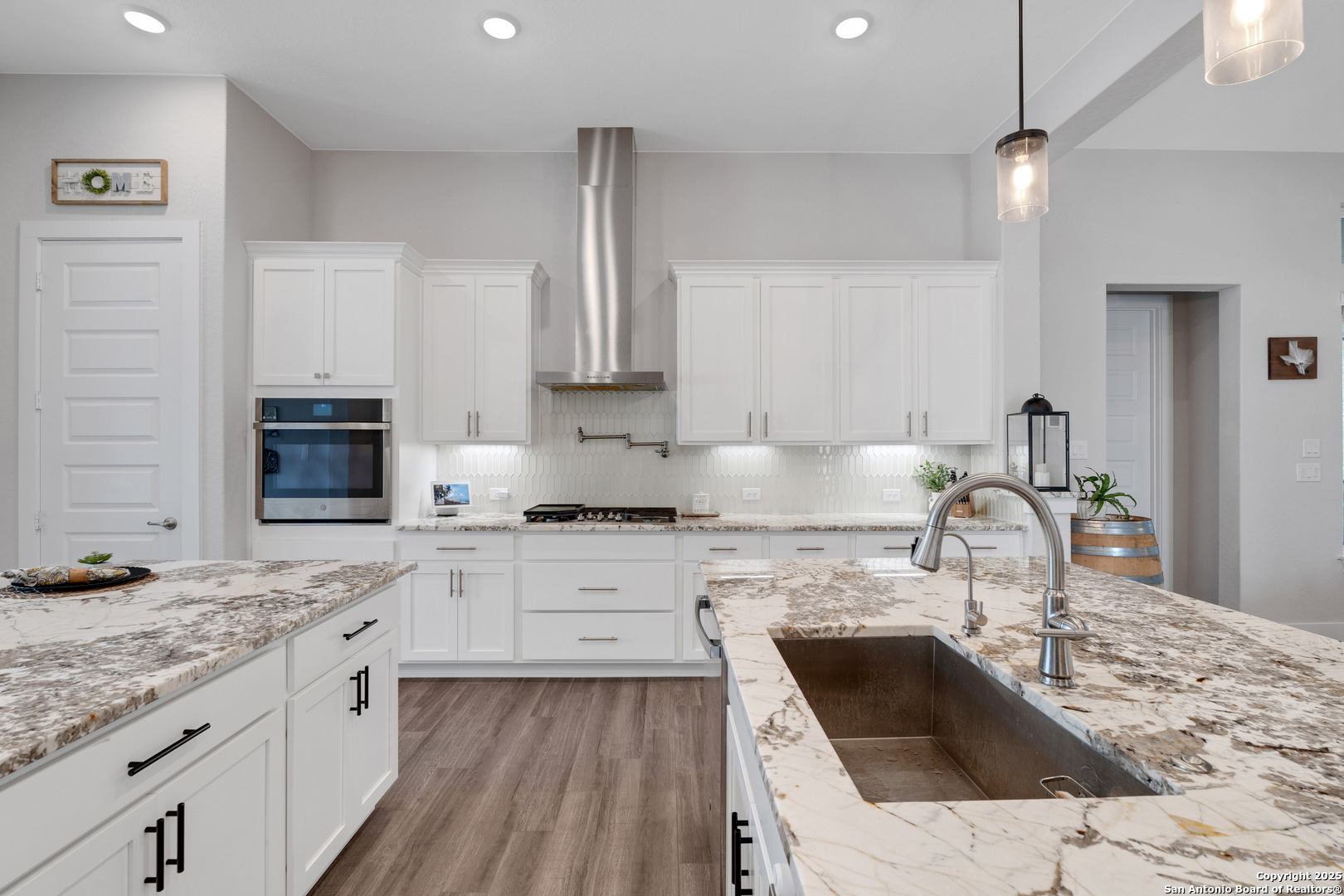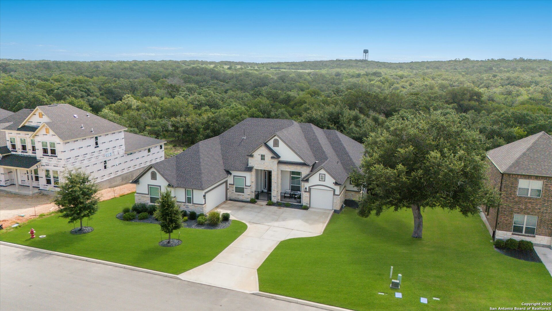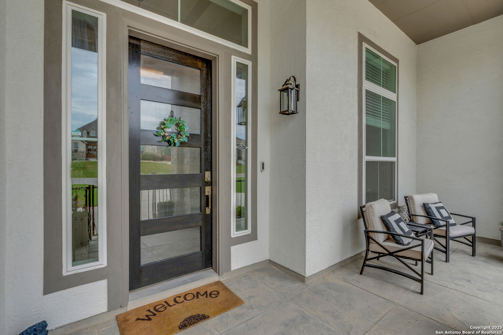 3.88% VA Assumable Loan available! Congratulations! You have found your next home! This absolutely stunning one-story home features one of Chesmar's most popular floor plans with soaring ceilings and a wide open layout that's built for both everyday living and entertaining! At the heart of the home is a spacious family room complete with custom-built-ins and a dramatic fireplace! The chef's kitchen features double islands, an oversized walk-in pantry, TONS of cabinetry and counter space, a reverse osmosis system, stainless steel appliances including a GE Profile five-burner gas cooktop, a convenient pot filler, and not one but two breakfast bars! Step outside to experience the incredible outdoor living area, beginning with a screened-in patio showcasing a cozy gas fireplace and stamped concrete floor. This opens to what just might be the most impressive backyard in the neighborhood! Enjoy the luxury of an in-ground pool with quad massaging jets, a sun deck with a sparkling fountain, and a state-of-the-art system that allows the pool to be heated or cooled to your preference. The .47 acre greenbelt lot is fully fenced and has a full sprinkler system to take care of the 20 mature trees that shade the professionally landscaped yard! The private primary suite offers custom window treatments, direct access to the outdoor living area, and a spa-like bathroom with a freestanding soaking tub, oversized walk-in shower, dual vanities, linen storage, and a custom walk-in closet with triple hanging rods and built-ins. Each spacious secondary bedroom has a private bath & a walk-in closet! The dedicated study features 12' ceilings and French doors for the ultimate work at home space! All mounted televisions are INCLUDED! Luxury utility room with cabinets, granite counters, refrigerator space, hanging rod and a drop zone just outside the door! The three car split garage boasts epoxy floors, custom storage shelving and a Defender Series water softener! Great location with easy access to Highway 90 & Loop 1604! Located in Medina Valley ISD with convenient access to Highway 90 and Loop 1604. Just minutes from Castroville attractions including Alsatian Golf Club, Castroville Regional Park, Haby's Alsatian Bakery, the Hillside Boutique Hotel, and more!