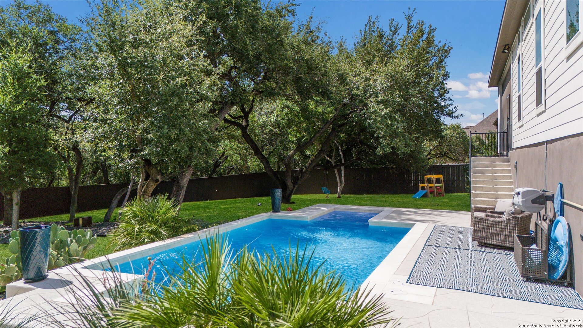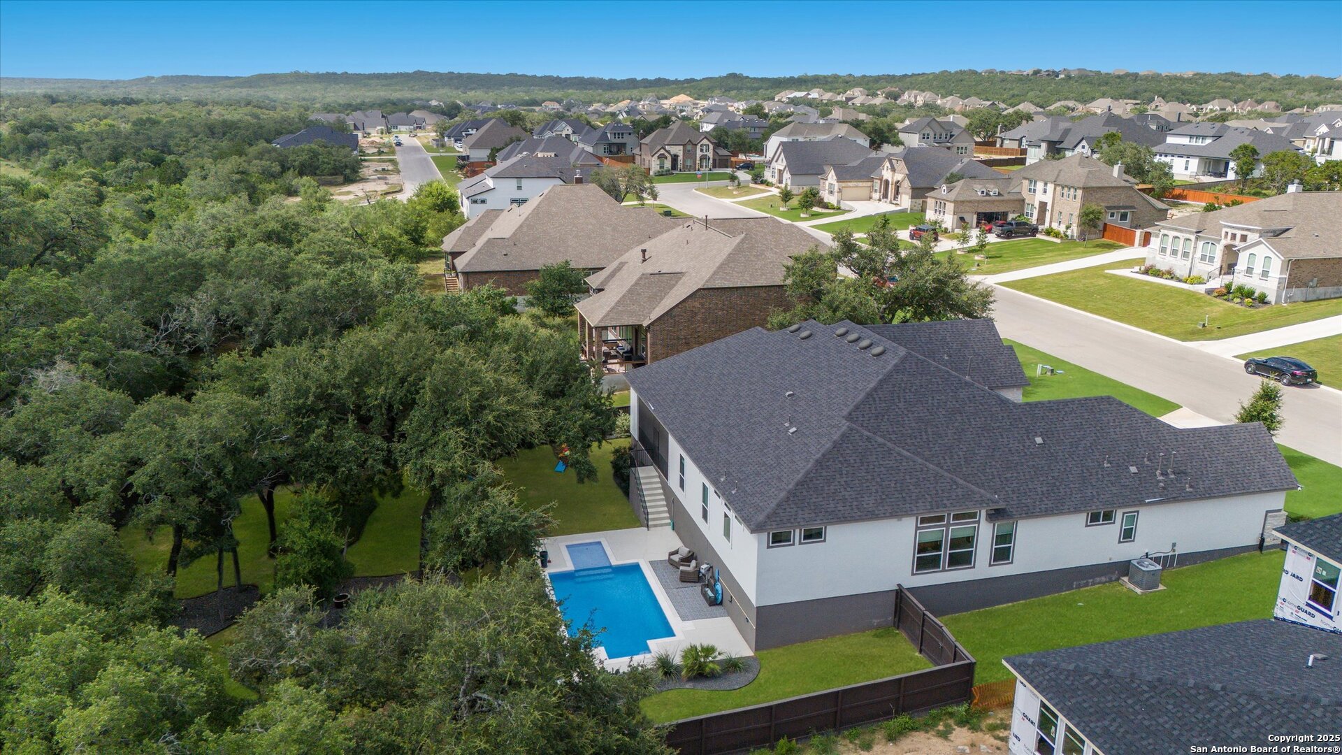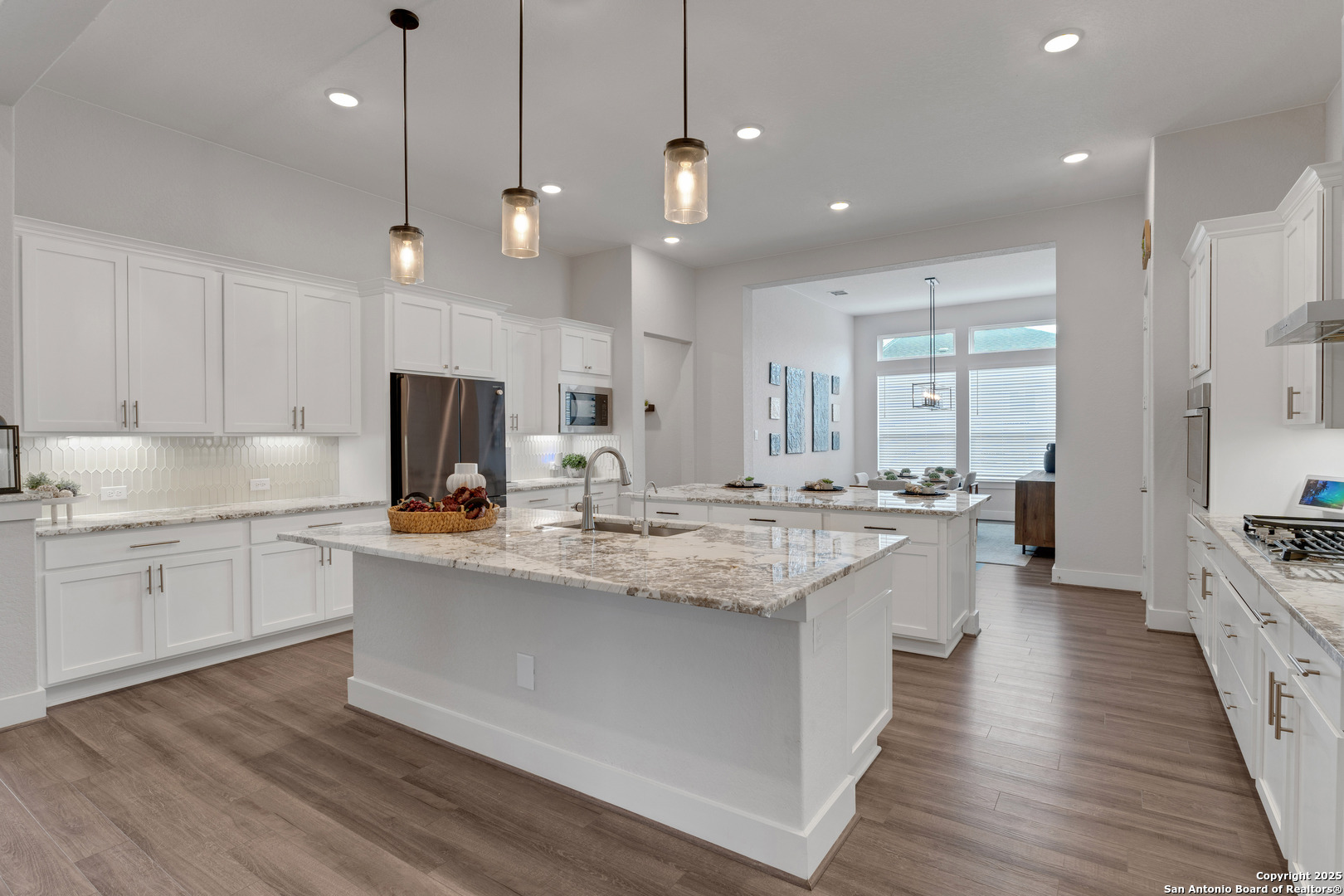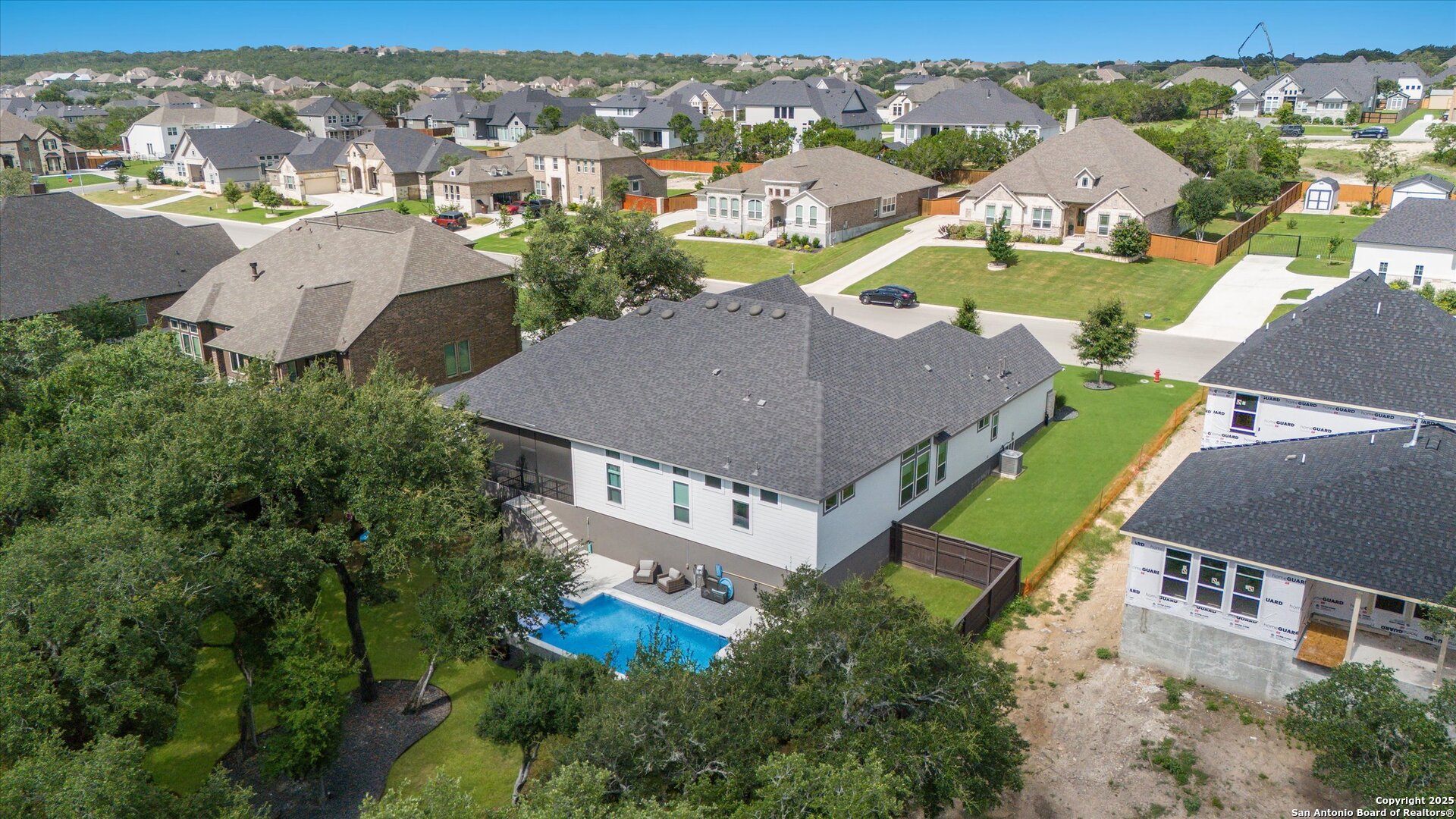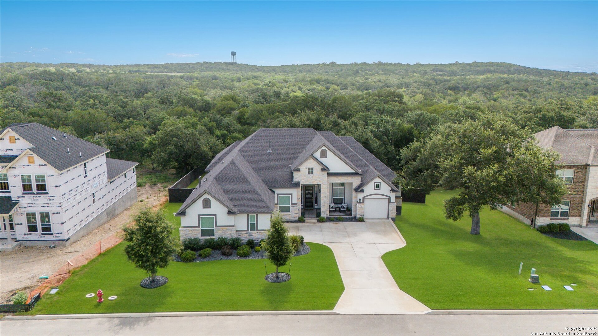 3.88% VA Assumable Loan available! Congratulations! You have found your next home! This absolutely stunning one-story home features one of Chesmar's most popular floor plans with soaring ceilings and a wide open layout that's built for both everyday living and entertaining! At the heart of the home is a spacious family room complete with custom-built-ins and a dramatic fireplace! The chef's kitchen features double islands, an oversized walk-in pantry, TONS of cabinetry and counter space, a reverse osmosis system, stainless steel appliances including a GE Profile five-burner gas cooktop, a convenient pot filler, and not one but two breakfast bars! Step outside to experience the incredible outdoor living area, beginning with a screened-in patio showcasing a cozy gas fireplace and stamped concrete floor. This opens to what just might be the most impressive backyard in the neighborhood! Enjoy the luxury of an in-ground pool with quad massaging jets, a sun deck with a sparkling fountain, and a state-of-the-art system that allows the pool to be heated or cooled to your preference. The .47 acre greenbelt lot is fully fenced and has a full sprinkler system to take care of the 20 mature trees that shade the professionally landscaped yard! The private primary suite offers custom window treatments, direct access to the outdoor living area, and a spa-like bathroom with a freestanding soaking tub, oversized walk-in shower, dual vanities, linen storage, and a custom walk-in closet with triple hanging rods and built-ins. Each spacious secondary bedroom has a private bath & a walk-in closet! The dedicated study features 12' ceilings and French doors for the ultimate work at home space! All mounted televisions are INCLUDED! Luxury utility room with cabinets, granite counters, refrigerator space, hanging rod and a drop zone just outside the door! The three car split garage boasts epoxy floors, custom storage shelving and a Defender Series water softener! Great location with easy access to Highway 90 & Loop 1604! Located in Medina Valley ISD with convenient access to Highway 90 and Loop 1604. Just minutes from Castroville attractions including Alsatian Golf Club, Castroville Regional Park, Haby's Alsatian Bakery, the Hillside Boutique Hotel, and more!