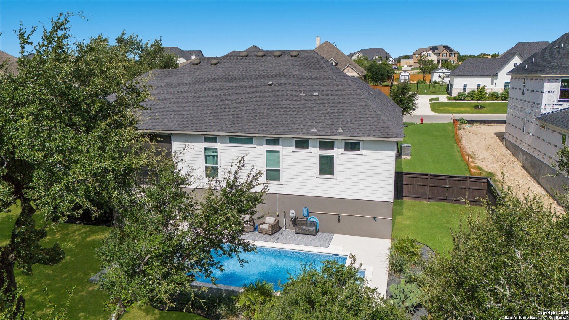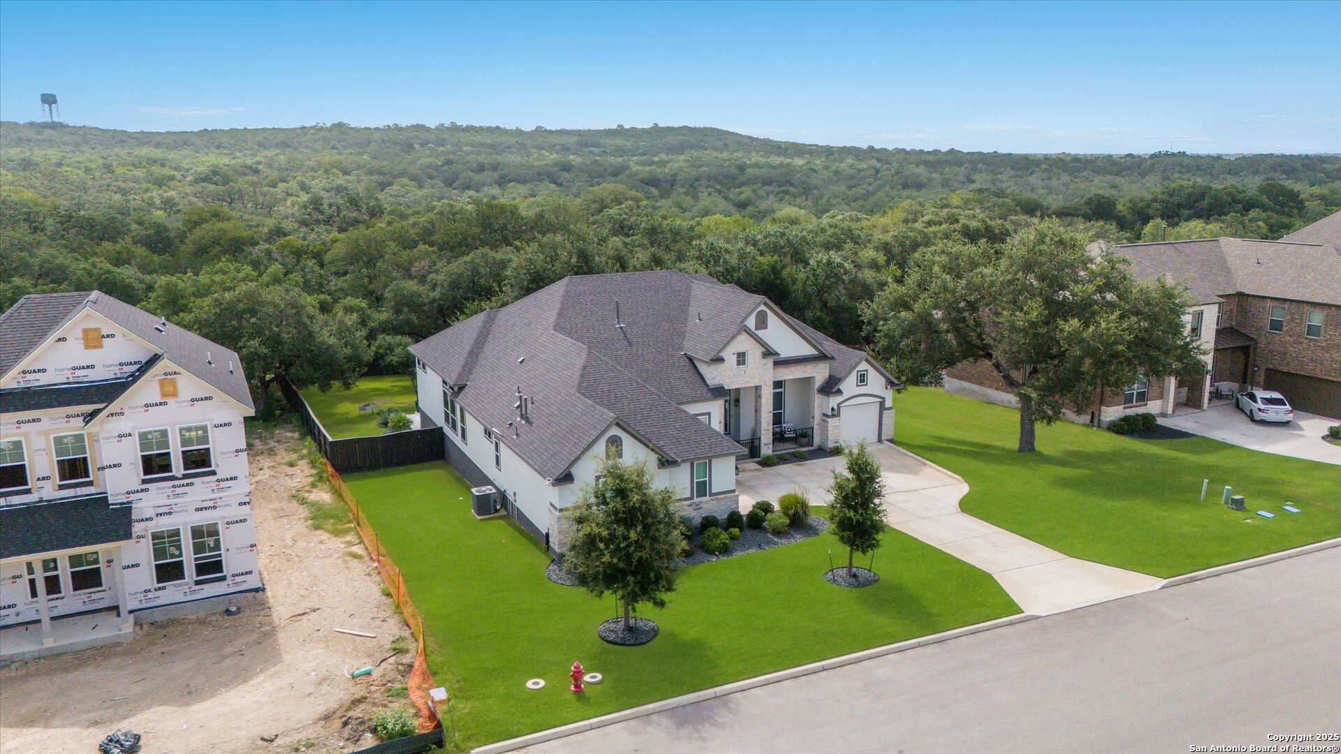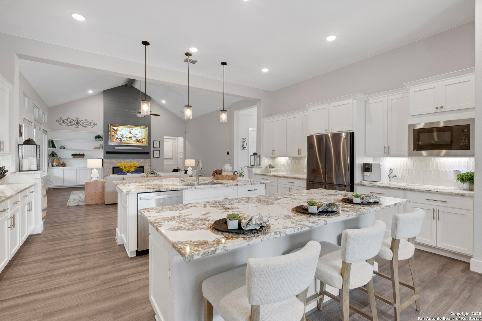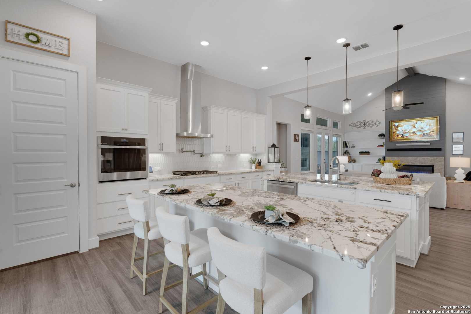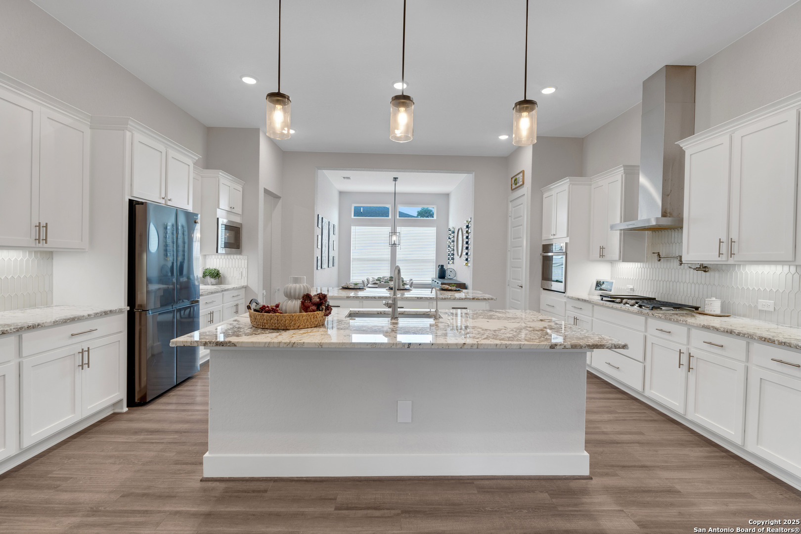 3.88% VA Assumable Loan available! Congratulations! You have found your next home! This absolutely stunning one-story home features one of Chesmar's most popular floor plans with soaring ceilings and a wide open layout that's built for both everyday living and entertaining! At the heart of the home is a spacious family room complete with custom-built-ins and a dramatic fireplace! The chef's kitchen features double islands, an oversized walk-in pantry, TONS of cabinetry and counter space, a reverse osmosis system, stainless steel appliances including a GE Profile five-burner gas cooktop, a convenient pot filler, and not one but two breakfast bars! Step outside to experience the incredible outdoor living area, beginning with a screened-in patio showcasing a cozy gas fireplace and stamped concrete floor. This opens to what just might be the most impressive backyard in the neighborhood! Enjoy the luxury of an in-ground pool with quad massaging jets, a sun deck with a sparkling fountain, and a state-of-the-art system that allows the pool to be heated or cooled to your preference. The .47 acre greenbelt lot is fully fenced and has a full sprinkler system to take care of the 20 mature trees that shade the professionally landscaped yard! The private primary suite offers custom window treatments, direct access to the outdoor living area, and a spa-like bathroom with a freestanding soaking tub, oversized walk-in shower, dual vanities, linen storage, and a custom walk-in closet with triple hanging rods and built-ins. Each spacious secondary bedroom has a private bath & a walk-in closet! The dedicated study features 12' ceilings and French doors for the ultimate work at home space! All mounted televisions are INCLUDED! Luxury utility room with cabinets, granite counters, refrigerator space, hanging rod and a drop zone just outside the door! The three car split garage boasts epoxy floors, custom storage shelving and a Defender Series water softener! Great location with easy access to Highway 90 & Loop 1604! Located in Medina Valley ISD with convenient access to Highway 90 and Loop 1604. Just minutes from Castroville attractions including Alsatian Golf Club, Castroville Regional Park, Haby's Alsatian Bakery, the Hillside Boutique Hotel, and more!