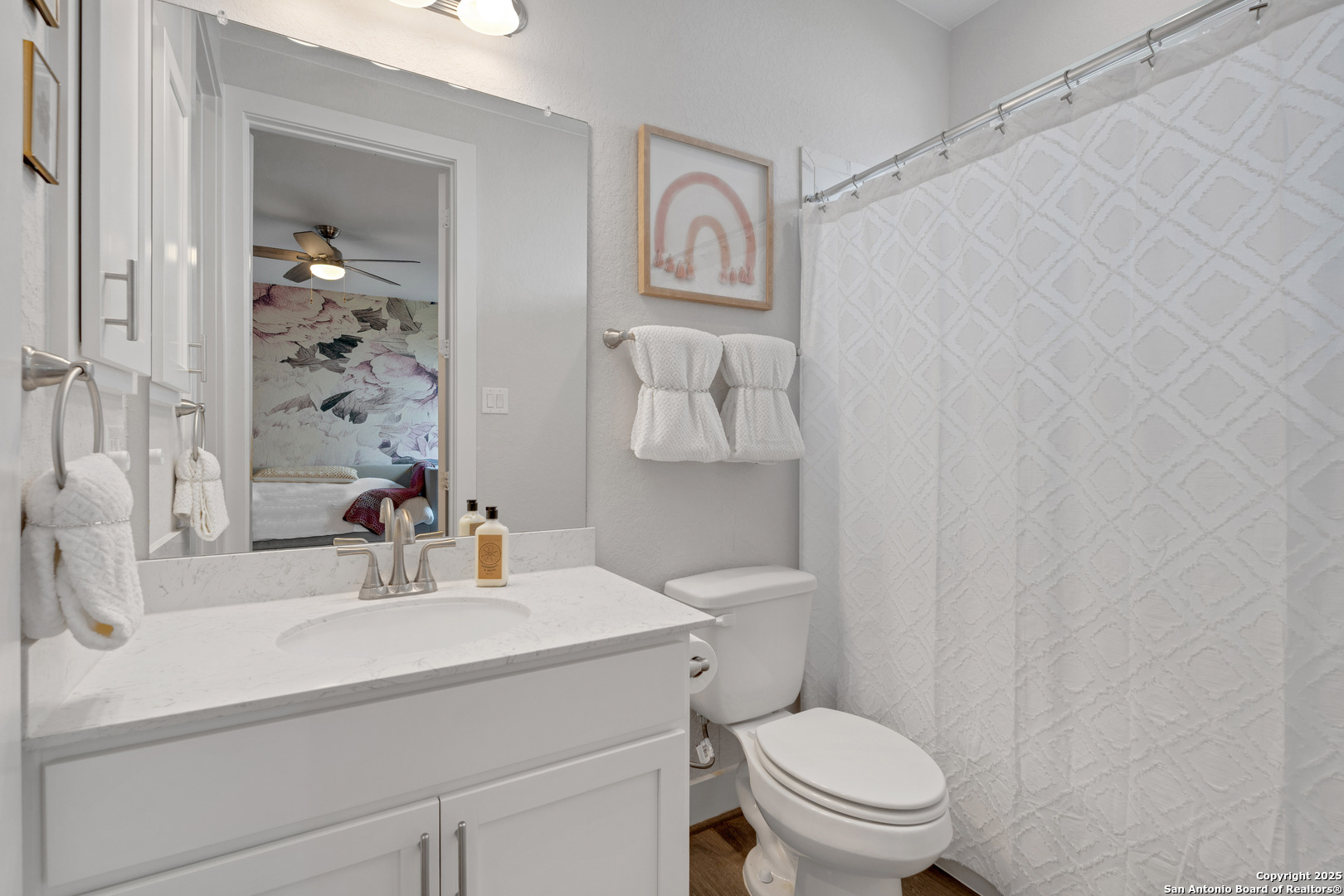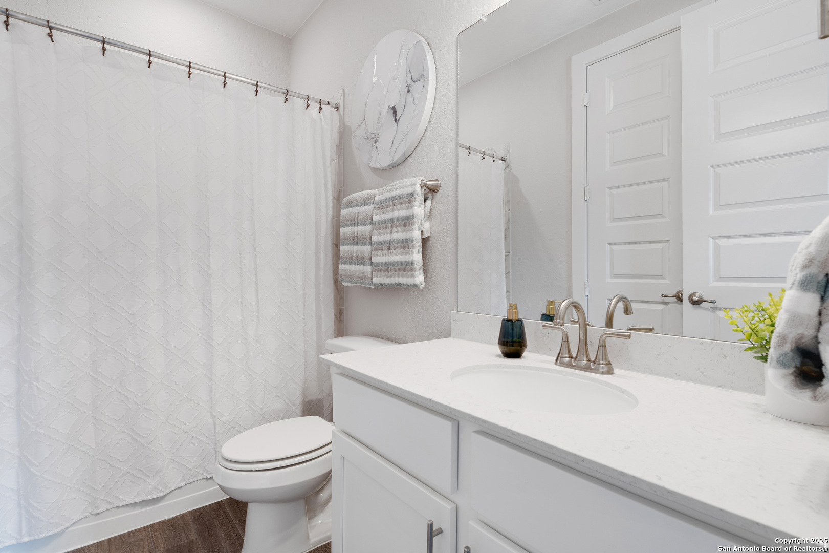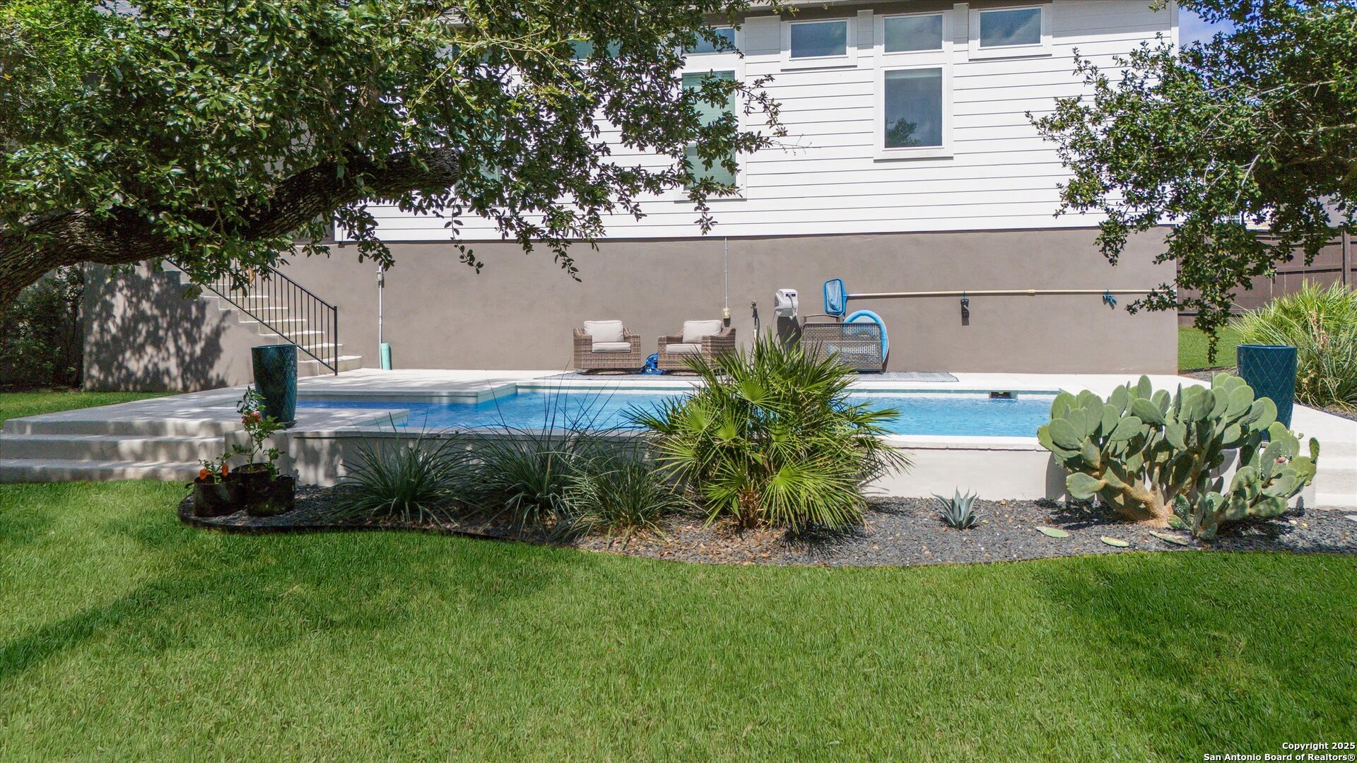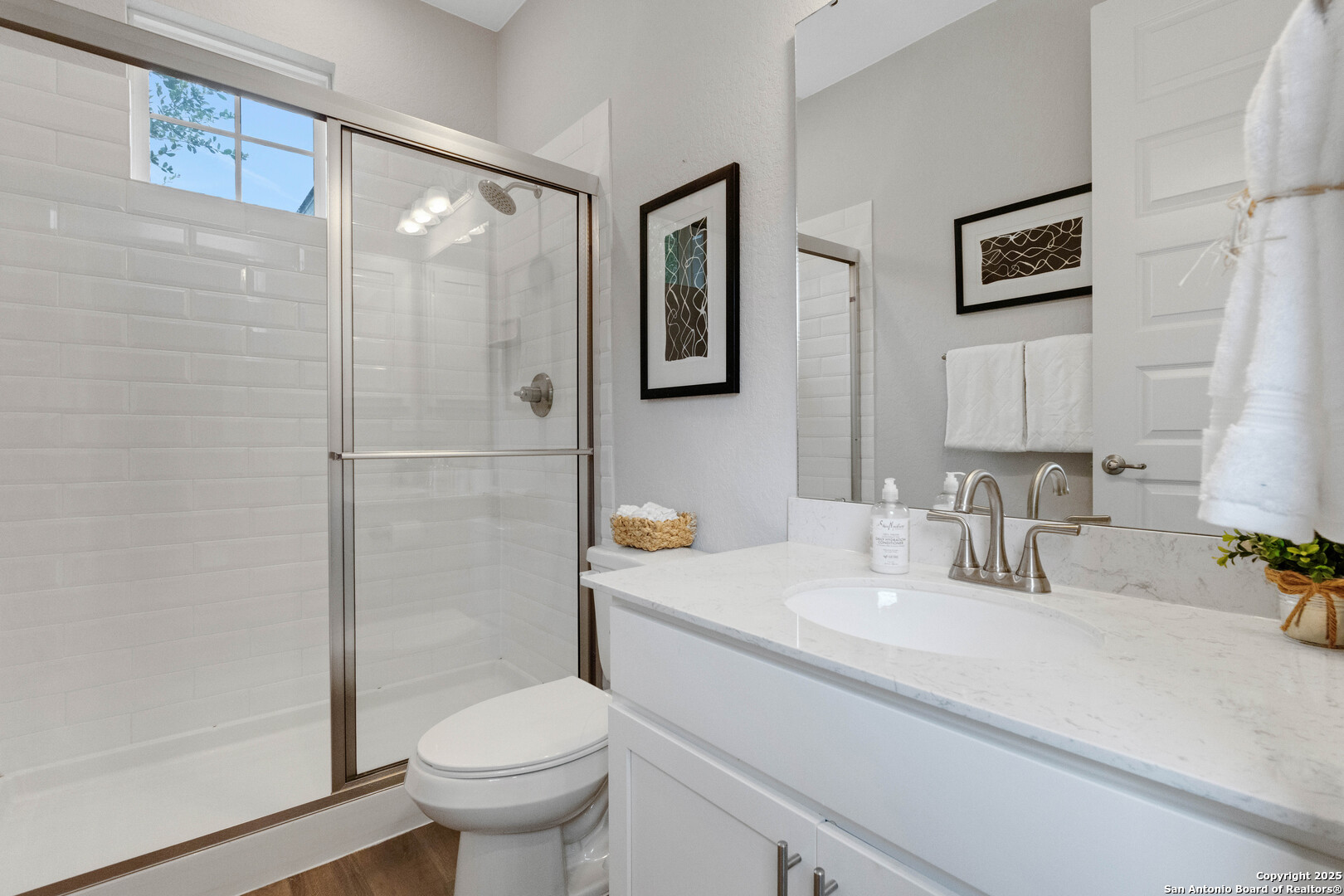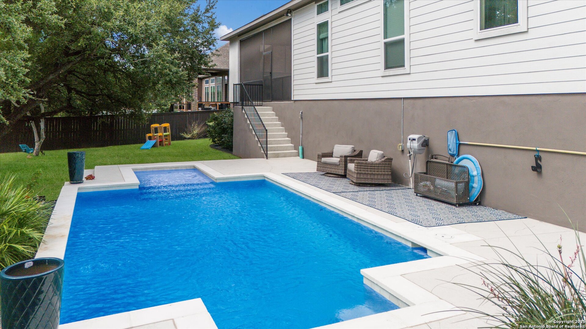 3.88% VA Assumable Loan available! Congratulations! You have found your next home! This absolutely stunning one-story home features one of Chesmar's most popular floor plans with soaring ceilings and a wide open layout that's built for both everyday living and entertaining! At the heart of the home is a spacious family room complete with custom-built-ins and a dramatic fireplace! The chef's kitchen features double islands, an oversized walk-in pantry, TONS of cabinetry and counter space, a reverse osmosis system, stainless steel appliances including a GE Profile five-burner gas cooktop, a convenient pot filler, and not one but two breakfast bars! Step outside to experience the incredible outdoor living area, beginning with a screened-in patio showcasing a cozy gas fireplace and stamped concrete floor. This opens to what just might be the most impressive backyard in the neighborhood! Enjoy the luxury of an in-ground pool with quad massaging jets, a sun deck with a sparkling fountain, and a state-of-the-art system that allows the pool to be heated or cooled to your preference. The .47 acre greenbelt lot is fully fenced and has a full sprinkler system to take care of the 20 mature trees that shade the professionally landscaped yard! The private primary suite offers custom window treatments, direct access to the outdoor living area, and a spa-like bathroom with a freestanding soaking tub, oversized walk-in shower, dual vanities, linen storage, and a custom walk-in closet with triple hanging rods and built-ins. Each spacious secondary bedroom has a private bath & a walk-in closet! The dedicated study features 12' ceilings and French doors for the ultimate work at home space! All mounted televisions are INCLUDED! Luxury utility room with cabinets, granite counters, refrigerator space, hanging rod and a drop zone just outside the door! The three car split garage boasts epoxy floors, custom storage shelving and a Defender Series water softener! Great location with easy access to Highway 90 & Loop 1604! Located in Medina Valley ISD with convenient access to Highway 90 and Loop 1604. Just minutes from Castroville attractions including Alsatian Golf Club, Castroville Regional Park, Haby's Alsatian Bakery, the Hillside Boutique Hotel, and more!