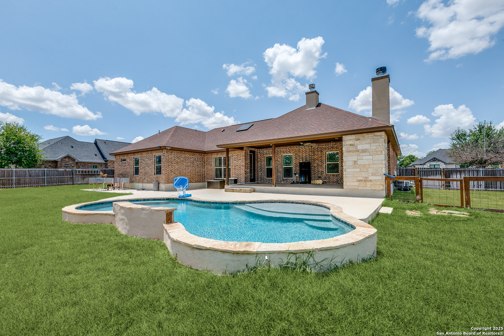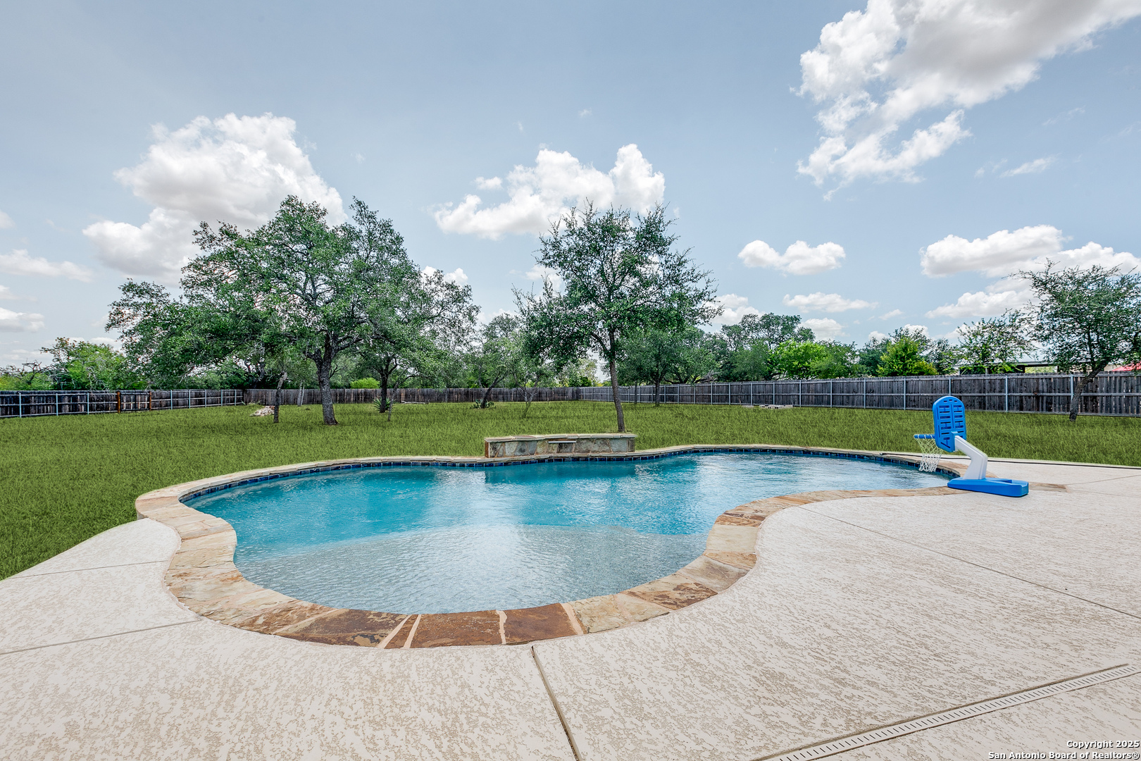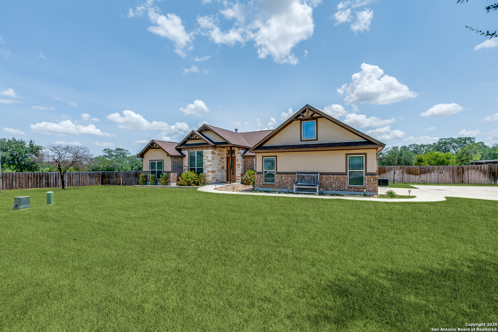 Situated on a generous 1.27-acre flat lot, this beautifully crafted 3-bedroom, 2-bath home offers exceptional curb appeal with brick, rock, and stucco wrapping all four sides for lasting durability and timeless style. Inside, the open layout features granite countertops, beautiful accents throughout, and a warm, inviting atmosphere that makes the space feel like home. Step outside to your own private retreat-an entertainer's dream with a sparkling pool and a fully equipped outdoor living area, complete with a cozy fireplace, perfect for gatherings year-round. A side yard double gate provides easy access for boats, RVs, or other large vehicles, while a smaller fenced area offers a safe and convenient space for pets. With plenty of usable space, mature trees, and peaceful surroundings, this property perfectly blends comfort, functionality, and refined outdoor living-ideal for those who value privacy, space, and style.