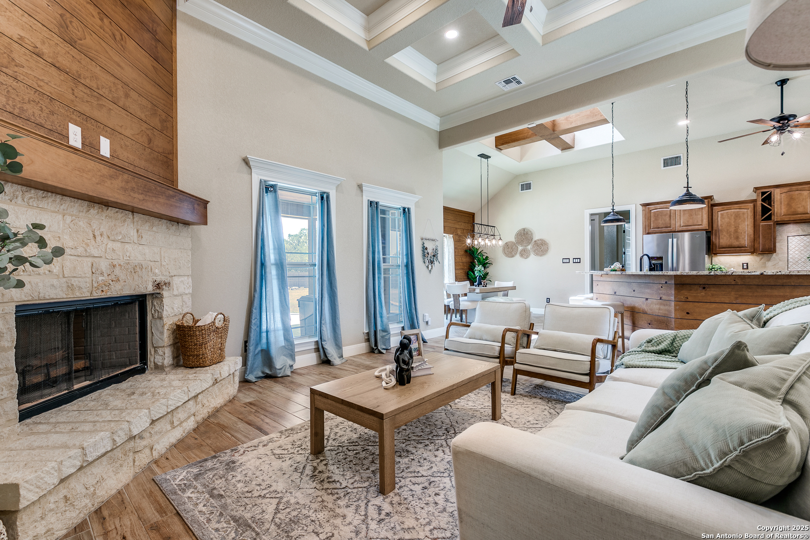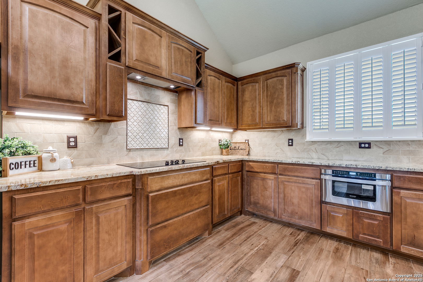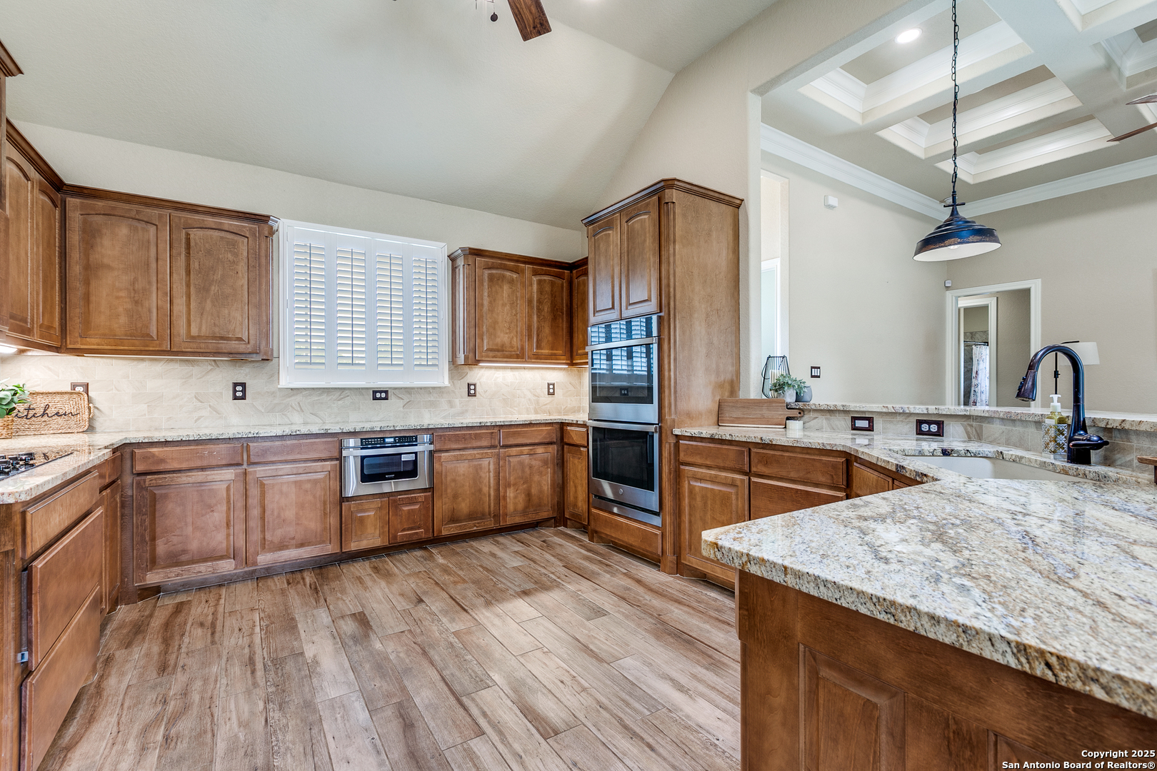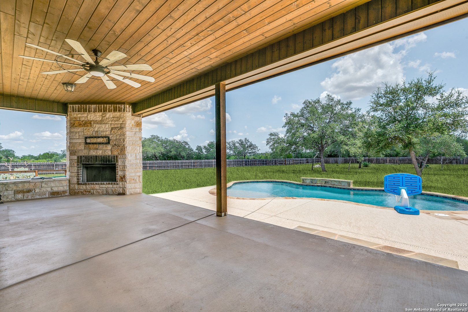 Situated on a generous 1.27-acre flat lot, this beautifully crafted 3-bedroom, 2-bath home offers exceptional curb appeal with brick, rock, and stucco wrapping all four sides for lasting durability and timeless style. Inside, the open layout features granite countertops, beautiful accents throughout, and a warm, inviting atmosphere that makes the space feel like home. Step outside to your own private retreat-an entertainer's dream with a sparkling pool and a fully equipped outdoor living area, complete with a cozy fireplace, perfect for gatherings year-round. A side yard double gate provides easy access for boats, RVs, or other large vehicles, while a smaller fenced area offers a safe and convenient space for pets. With plenty of usable space, mature trees, and peaceful surroundings, this property perfectly blends comfort, functionality, and refined outdoor living-ideal for those who value privacy, space, and style.