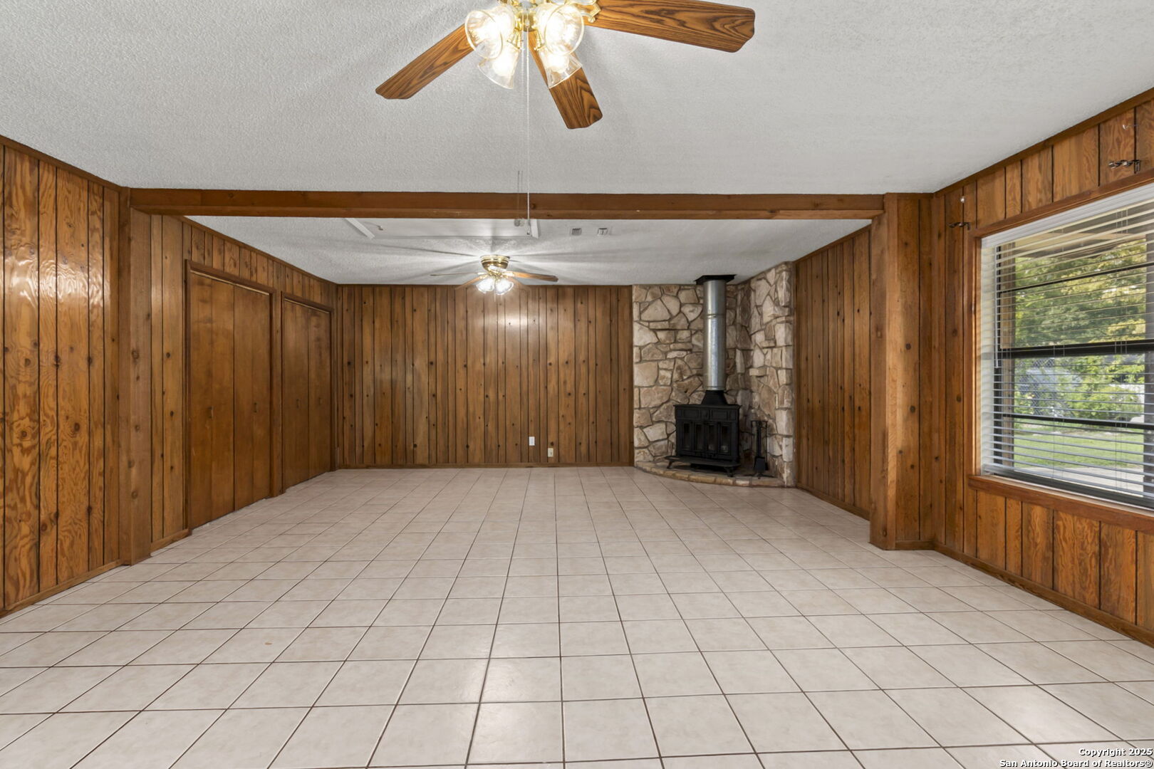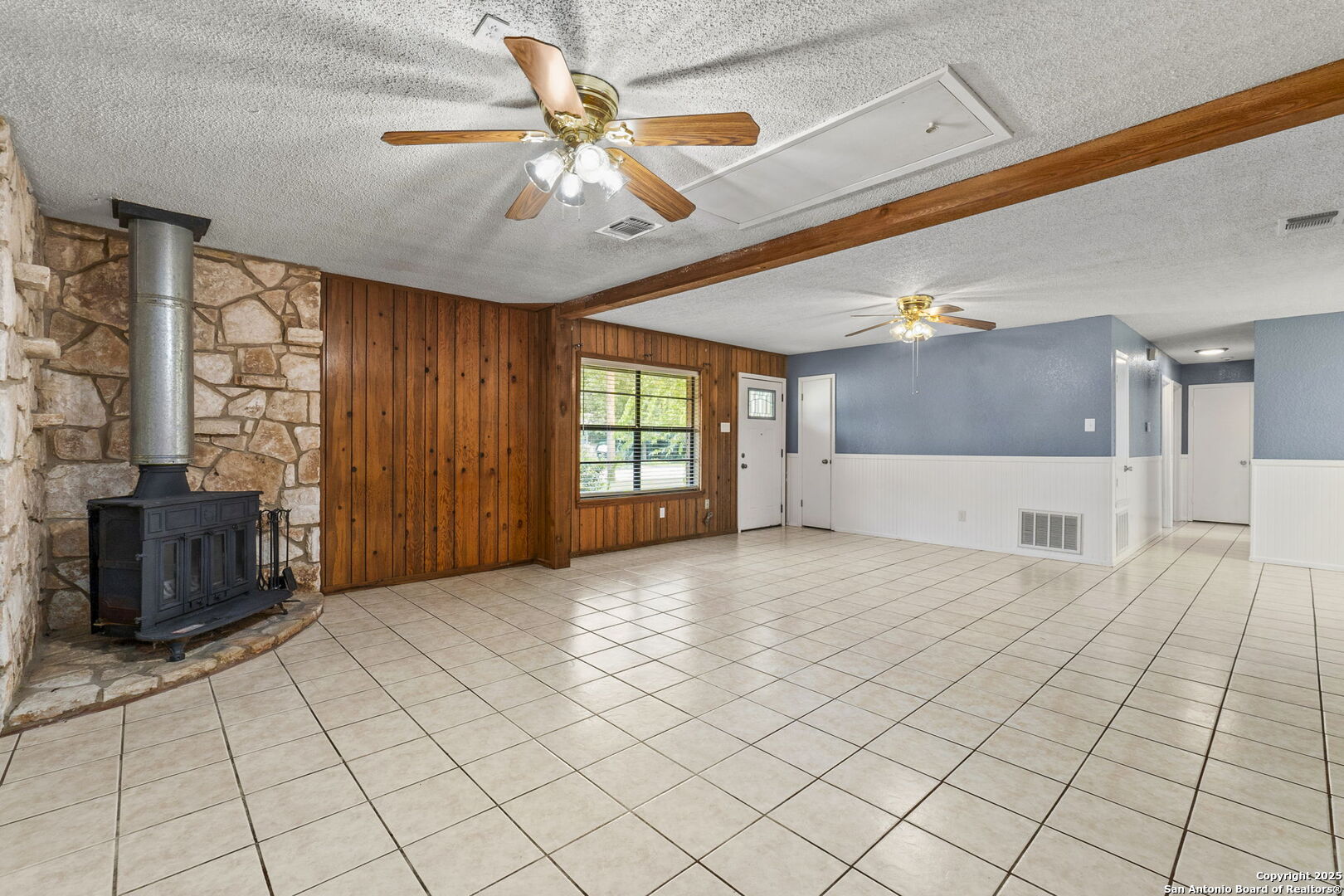 Tucked away in the heart of Center Point, TX., this charming property offers small-town living with endless potential. A home with great bones, this 3-bedroom, 1.5-bath home is perfect for those eager to bring their personal touch to a well-maintained space. Step inside to find a cozy living area anchored by a wood-burning stove-ideal for warming up on cool Hill Country evenings. The kitchen features updated appliances, including an electric stovetop and refrigerator. Two bedrooms offer plush carpeting for comfort, while the primary suite includes vinyl flooring and its own half bath. Outside, the spacious backyard is ready for your dream garden, play area, or entertaining space. A covered patio invites relaxing evenings, and a storage shed offers room for tools and projects. With its charming curb appeal and solid layout, this property is an ideal canvas for a custom home transformation. This opportunity to enjoy small-town charm at an affordable price point is rare. Don't miss your chance to make it your own!