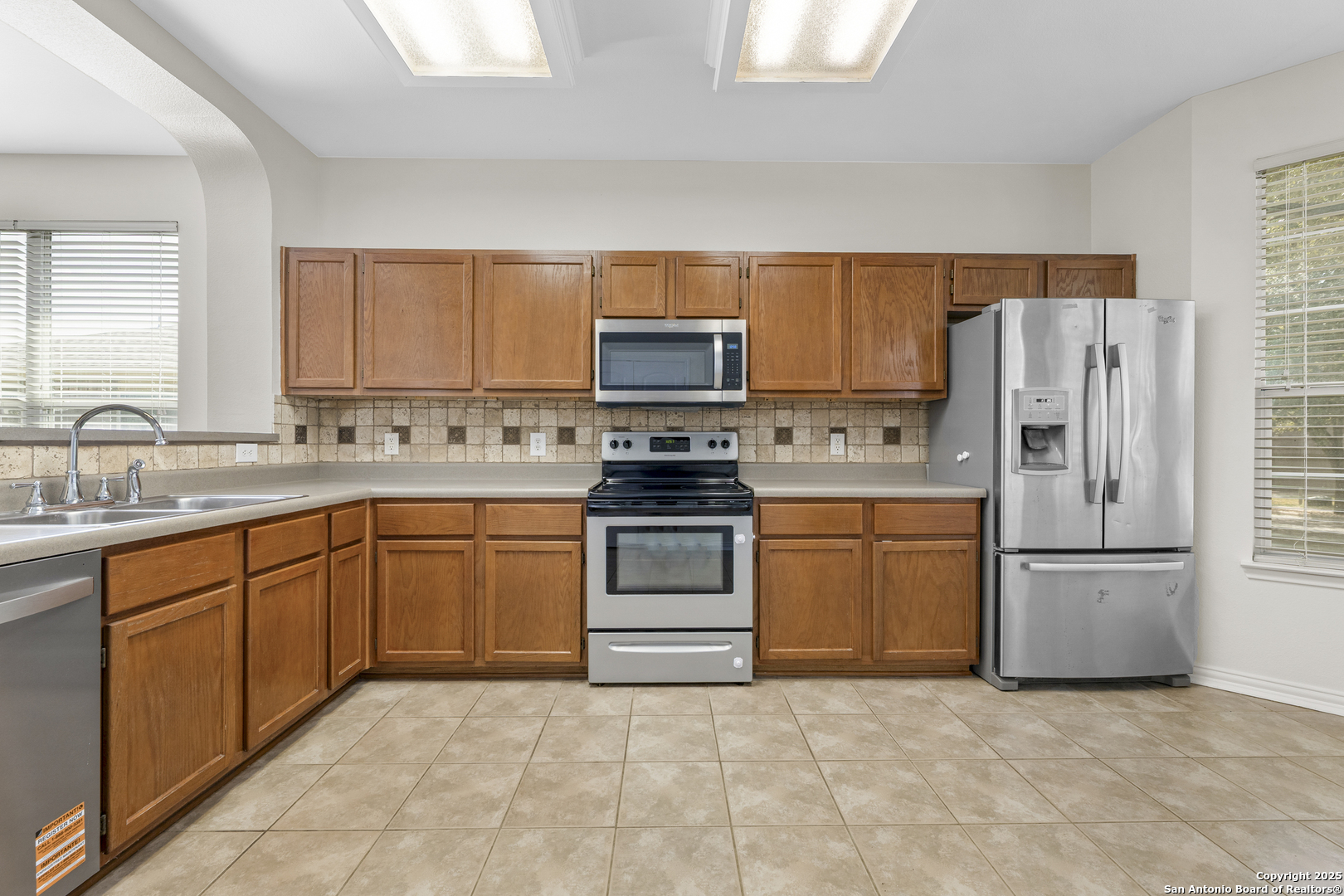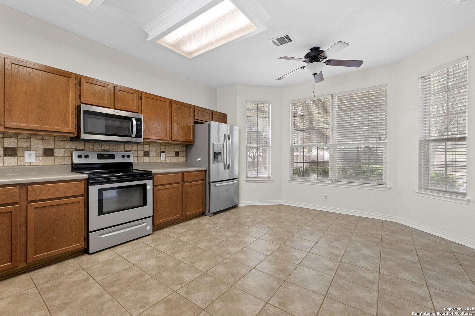 HUGE PRICE REDUCTION! The best deal in Cibolo is located at 117 Kitty Hawk Run! Move-in ready with preferred lender incentives- no appraisal fee and money towards closing costs or rate buy down - buyer's choice! Yes! There is still time to be in your new home for the holidays! Freshly painted well-maintained residence with no carpet- all hard surfaces offers 1,867 square feet of comfortable living space and an attached 2-car garage with one small step in from garage to living area. Inviting open floor from kitchen, dining to living room with lots of natural light and featuring a wood burning fireplace. The spacious living and dining areas flow seamlessly. Loads of counter space, cabinetry, and spacious eat-in breakfast area. The primary suite features a private en-suite bath and ample closet space, while two additional bedrooms provide flexibility for family, guests, or a home office. Outside, enjoy a private backyard with an oversized patio and privacy fence-ideal for weekend barbecues or unwinding at the end of the day. The home is three sides brick, the 4th side has new Hardie Board siding done in 2023. Roof replaced in 2024- As part of the Falcon Ridge community, you'll also have access to great amenities, including a neighborhood park and a refreshing community pool.