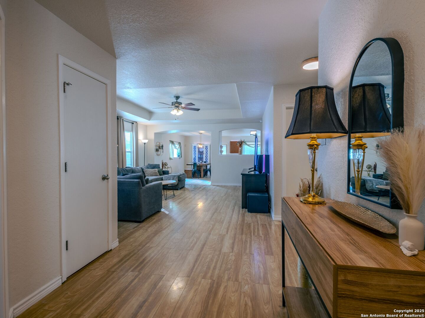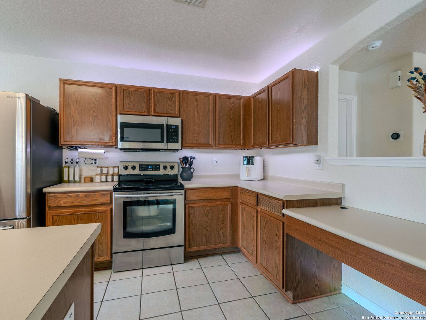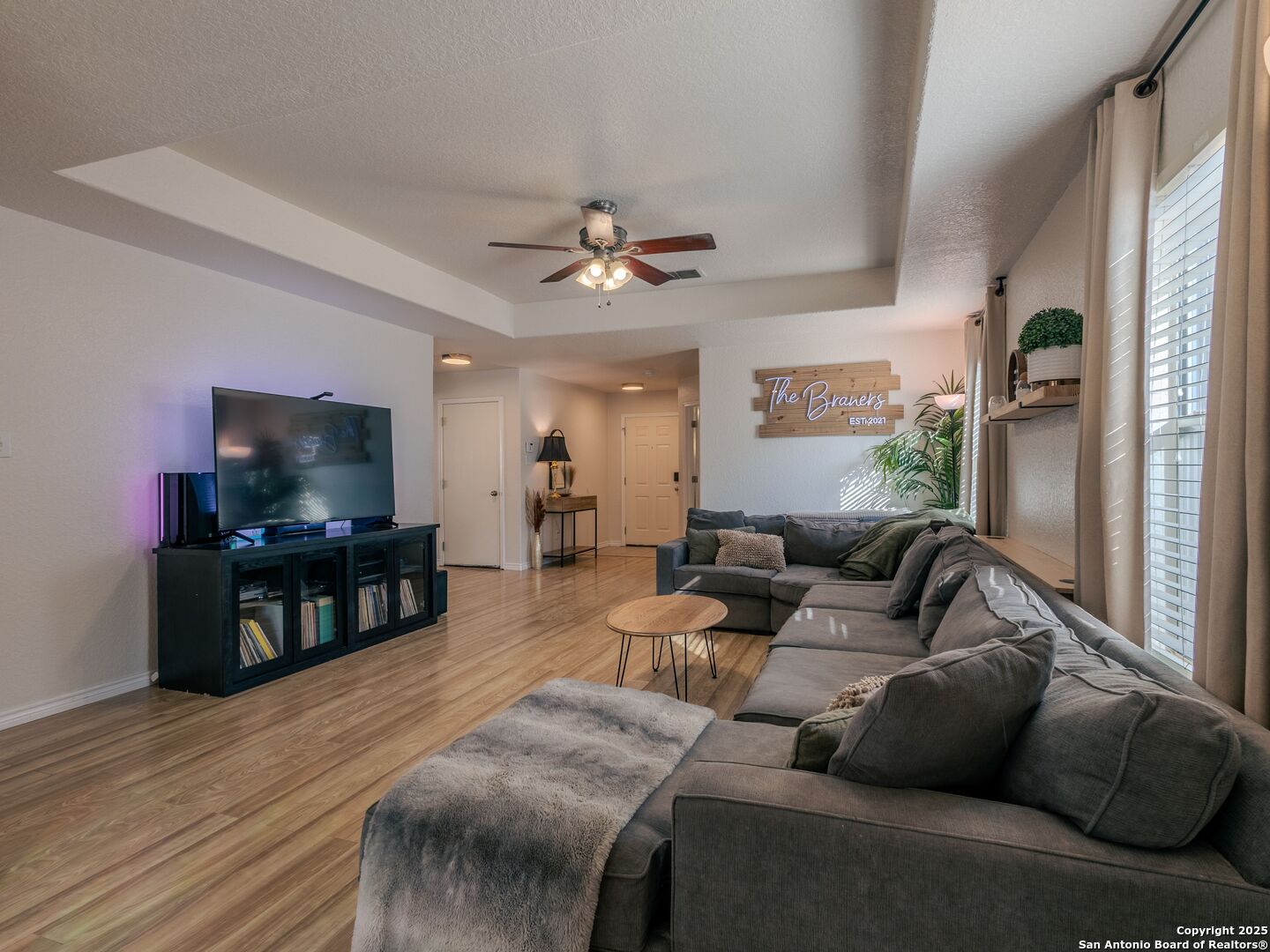 Welcome to this charming single-story home in the desirable Lantana community of Cibolo. Offering 3 bedrooms, 2 baths, and just over 1,500 sq. ft. of living space, this property blends comfort and convenience with a layout that works for everyday living. The open floor plan features a spacious living area that flows easily into the kitchen and dining spaces - ideal for entertaining or family gatherings. The kitchen offers an oversized island, ample counter space, and plenty of storage. The home has no carpet, making it both low-maintenance and move-in ready. The primary suite includes a walk-in closet and private bath, while two additional bedrooms share a full bath. Step outside to a private backyard that backs to a greenbelt for added privacy, with a patio perfect for enjoying quiet evenings or weekend barbecues. Additional highlights include a 2-car garage, mature landscaping, and an HOA with very low quarterly dues. Conveniently located near shopping, dining, and quick highway access, this home is also in the highly regarded SCUCISD school district.