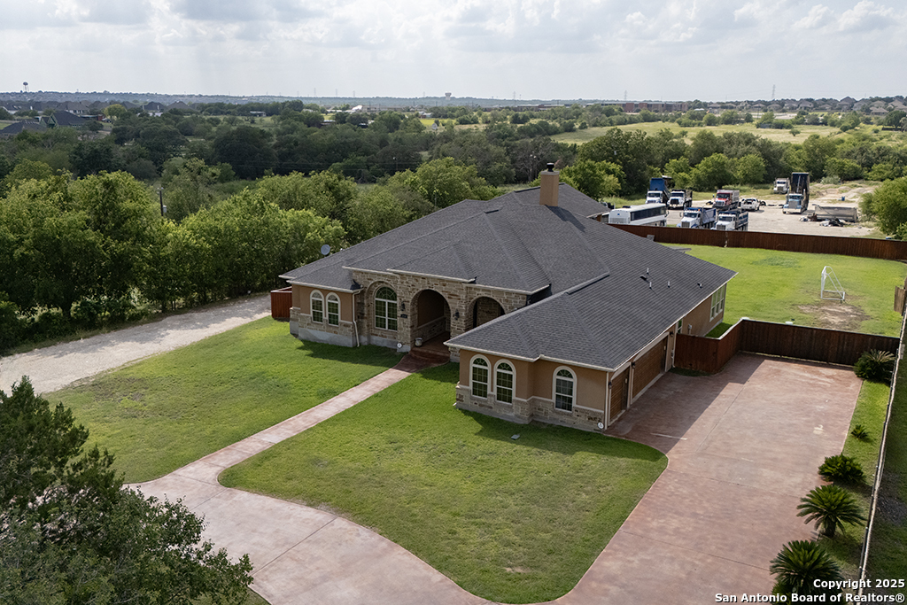 Welcome to your dream lifestyle-where luxury living meets limitless potential. Tucked away on a sprawling 3.017-acre estate just off Wiedner Road in charming Cibolo, this stunning custom home offers the perfect blend of comfort, elegance, and opportunity. Whether you're looking for space to breathe, a place to build your dream shop, or acreage with the freedom to invest in future development, this one has it all. Inside, you'll find 3,611 square feet of thoughtfully designed living space with four generously sized bedrooms, two and a half baths, and room to spread out. Work from home in the private study, unwind in the upstairs game room, or sip your morning coffee from the huge balcony that stretches across the back. The chef-inspired kitchen features custom cabinets, granite countertops, built-in appliances, and a walk-through butler's pantry that makes entertaining a breeze. The master suite is a true retreat, complete with private outdoor access and a spa-like bath with dual vanities, a soaking tub, and a separate shower. Two AC units keep you cool all year long, and the oversized 3-car garage has space for all your toys. But what really sets this property apart? The freedom. With MF-2 multifamily zoning already in place and utilities ready to go, you have the unique opportunity to build additional residences, income-generating duplexes, or even a custom workshop. No strict subdivision rules, no tight lot lines-just wide-open potential. Rents for new duplexes in the area average between $1,500-$2,000 per unit, making this a smart play for homeowners who want to invest where they live. Cibolo is booming, with major growth and infrastructure upgrades already underway nearby. Wiedner Road is expanding, and nearby developments are bringing new dining, shopping, and community amenities to your doorstep-without sacrificing that peaceful, rural vibe. So whether you're dreaming of wide-open skies, a big backyard, or your own mini compound with room to grow and earn, this property is ready to help you live large and plan smart. Come see what freedom feels like.