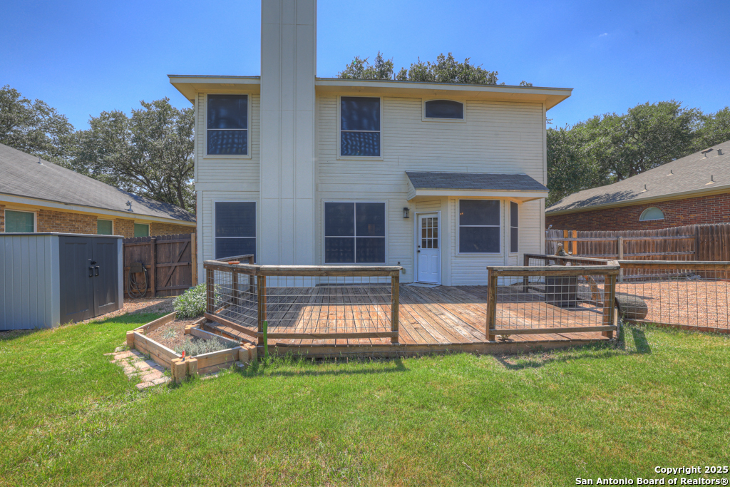 Nestled on a quiet, tree-lined street, this beautifully updated 3-bedroom, 2.5-bath home features modern fixtures throughout and an ideal layout with all bedrooms and the laundry room conveniently located upstairs. Located in the highly sought-after Schertz-Cibolo-Universal City ISD, the home offers thoughtful upgrades including a rain catchment system, solar screens, gutters, reverse osmosis water system, and a full irrigation system. The spacious, private backyard includes a large deck perfect for entertaining. Situated in the established Thistle Creek neighborhood just off FM 3009, you'll enjoy quick access to I-35, shopping, Randolph Brooks AFB, and Fort Sam Houston/Brooke Army Medical Center.