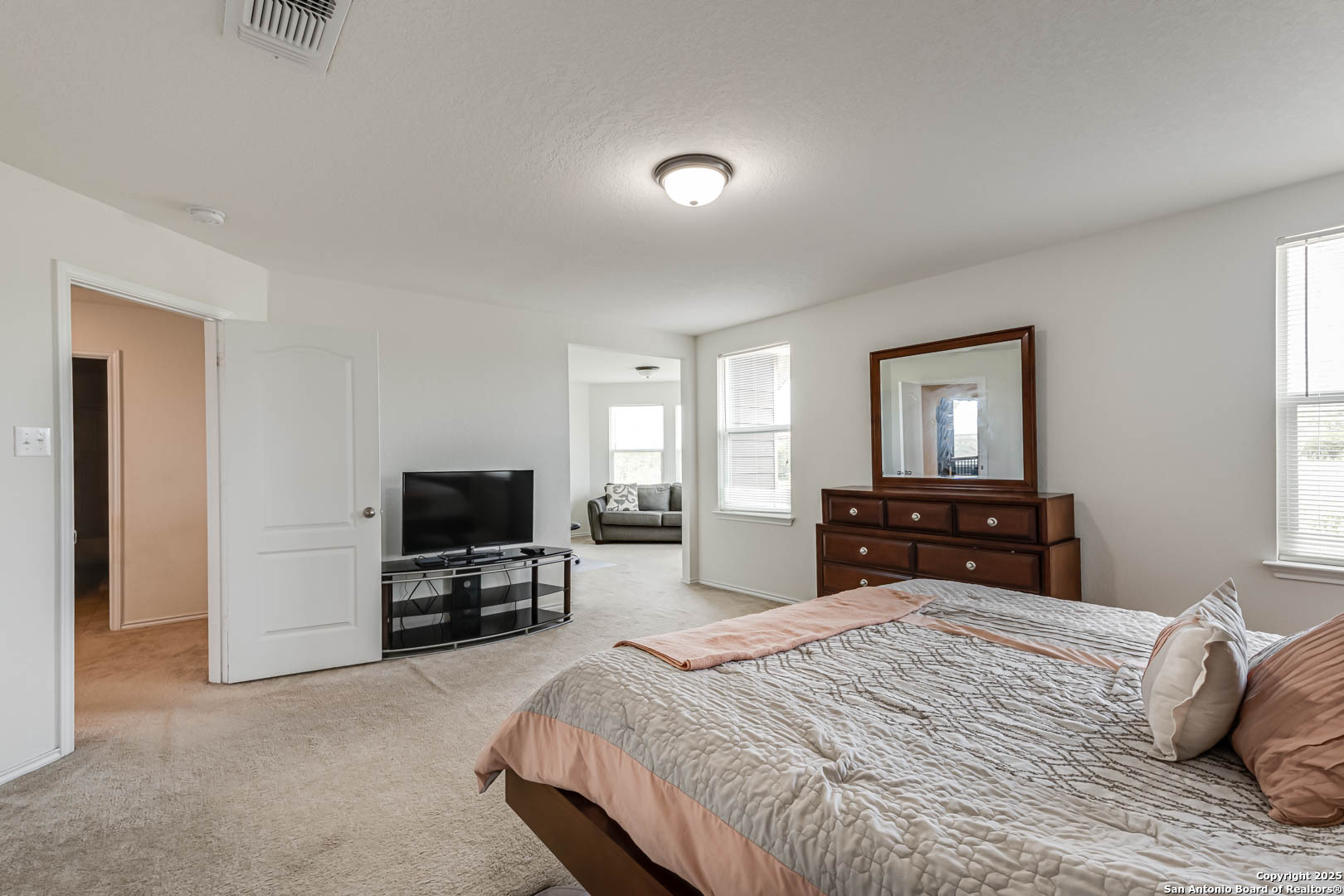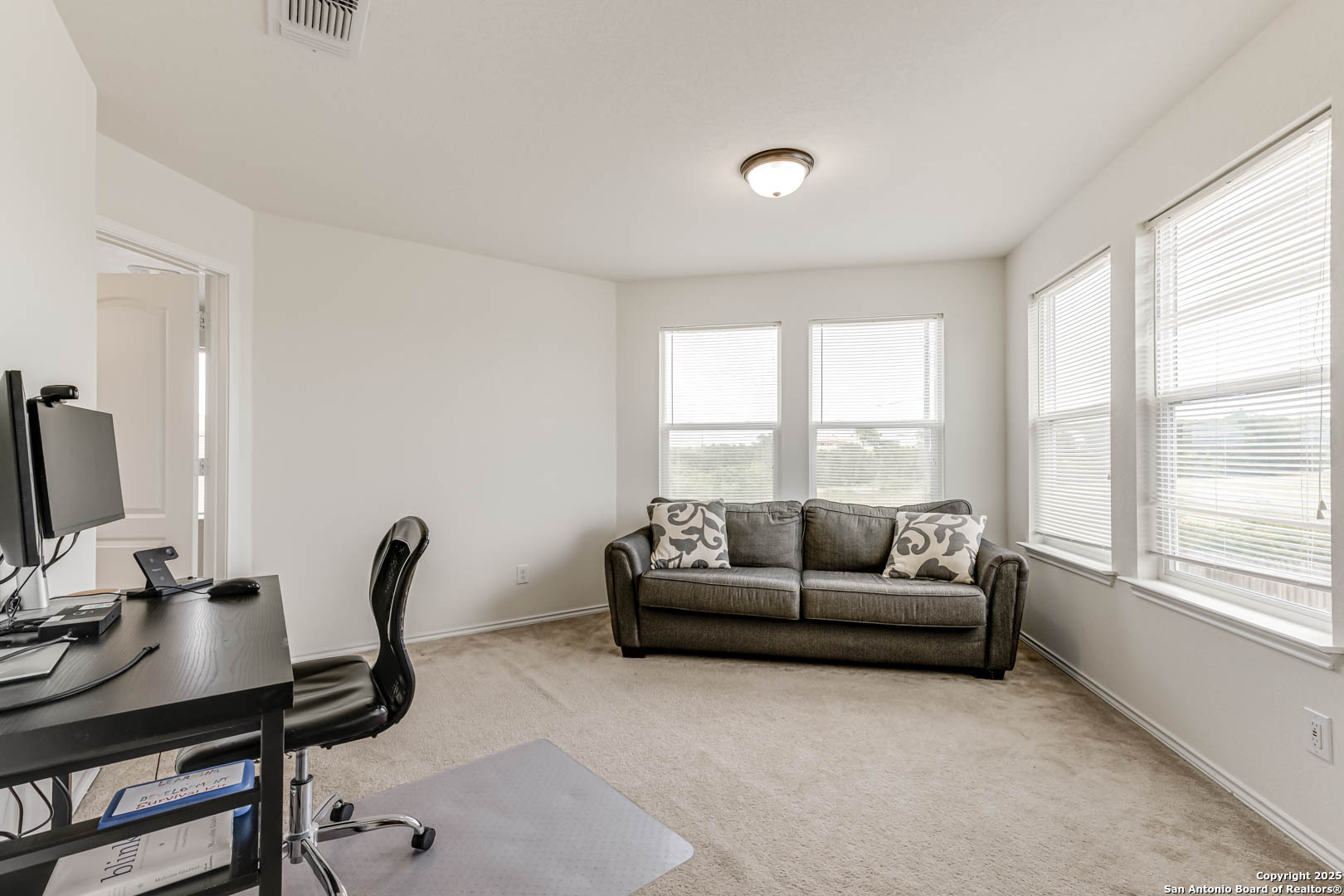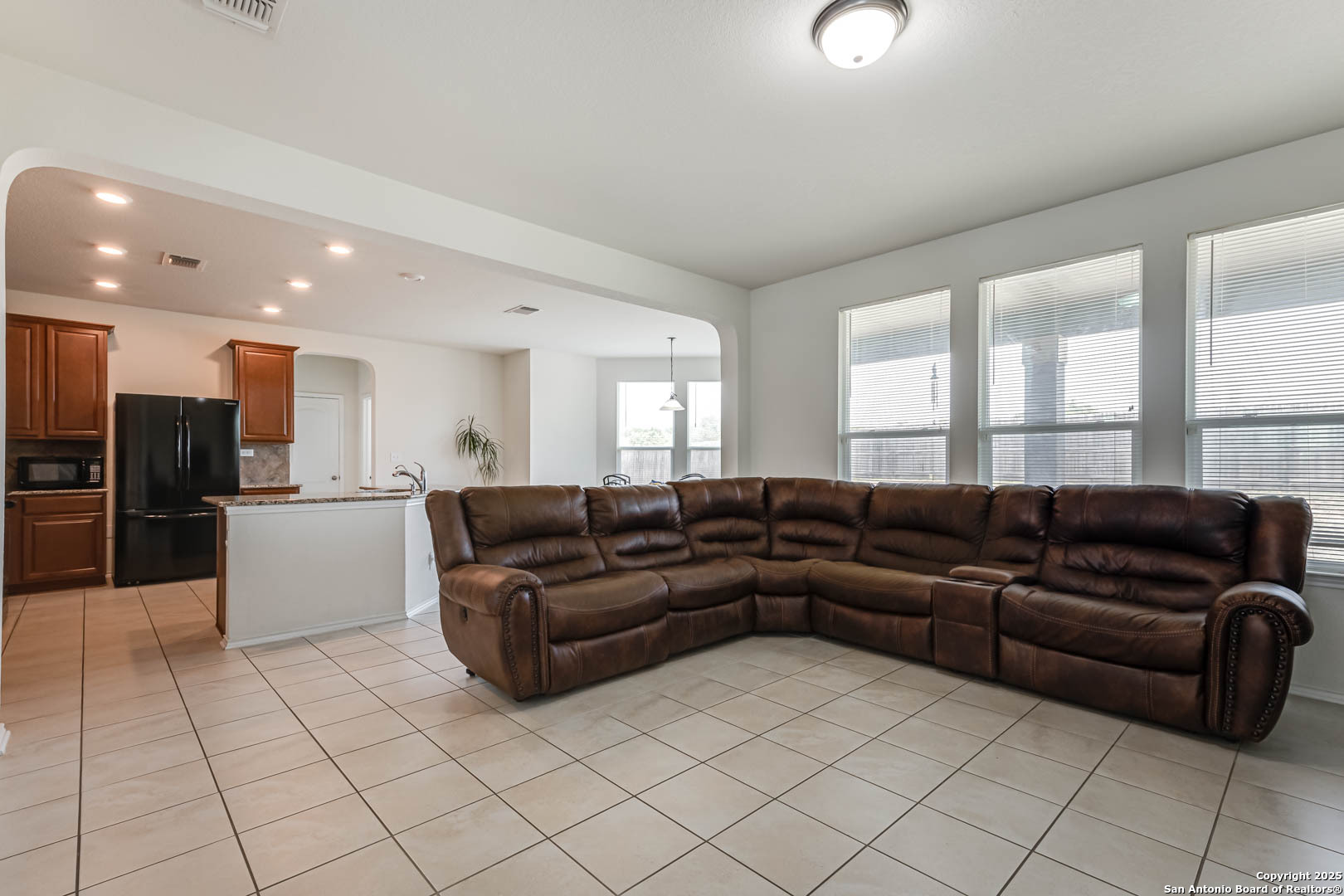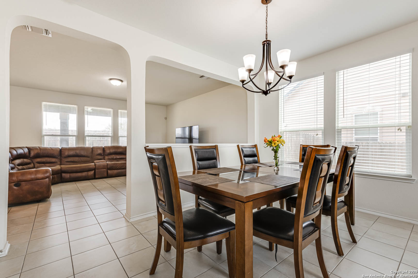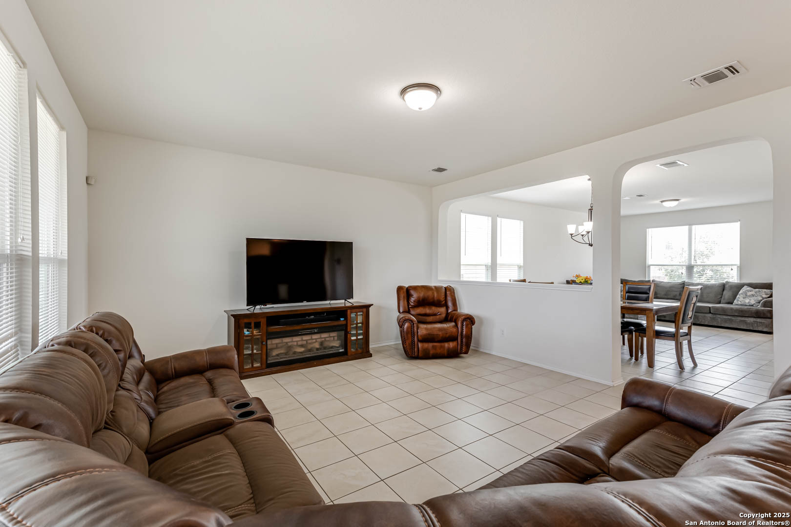 Welcome to this stunning two-story home that combines comfort, space, and style. From the moment you arrive, you'll be captivated by the charming brick exterior that adds timeless curb appeal. Inside, the home offers an ideal layout for both entertaining and everyday living. Upon entry, you'll find a spacious front living room that flows seamlessly into a private dining area-perfect for hosting family dinners or holiday gatherings. Toward the back of the home, a second, open-concept living area connects effortlessly with the kitchen and casual dining space, creating the perfect hub for family activities and socializing. Step outside to enjoy a generous backyard complete with a covered patio-ideal for outdoor entertaining, play, or simply relaxing in your own private retreat. Plus, with no rear neighbors, you'll enjoy added privacy and peaceful views. Upstairs, you'll discover a versatile third living area, perfect for a game room, media space, or home office. All bedrooms are located on the upper level, including a spacious primary suite featuring a bonus space ideal for a home office, nursery, or cozy sitting area. This home is move-in ready and waiting for you to make it your own. Don't miss this exceptional opportunity! Up to 1% buy down available.