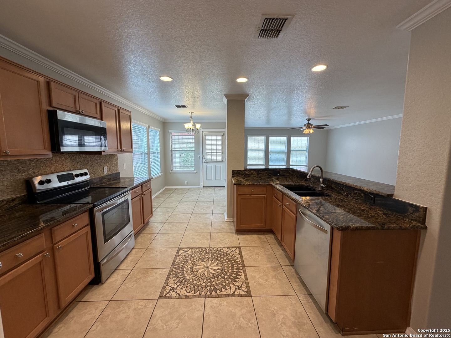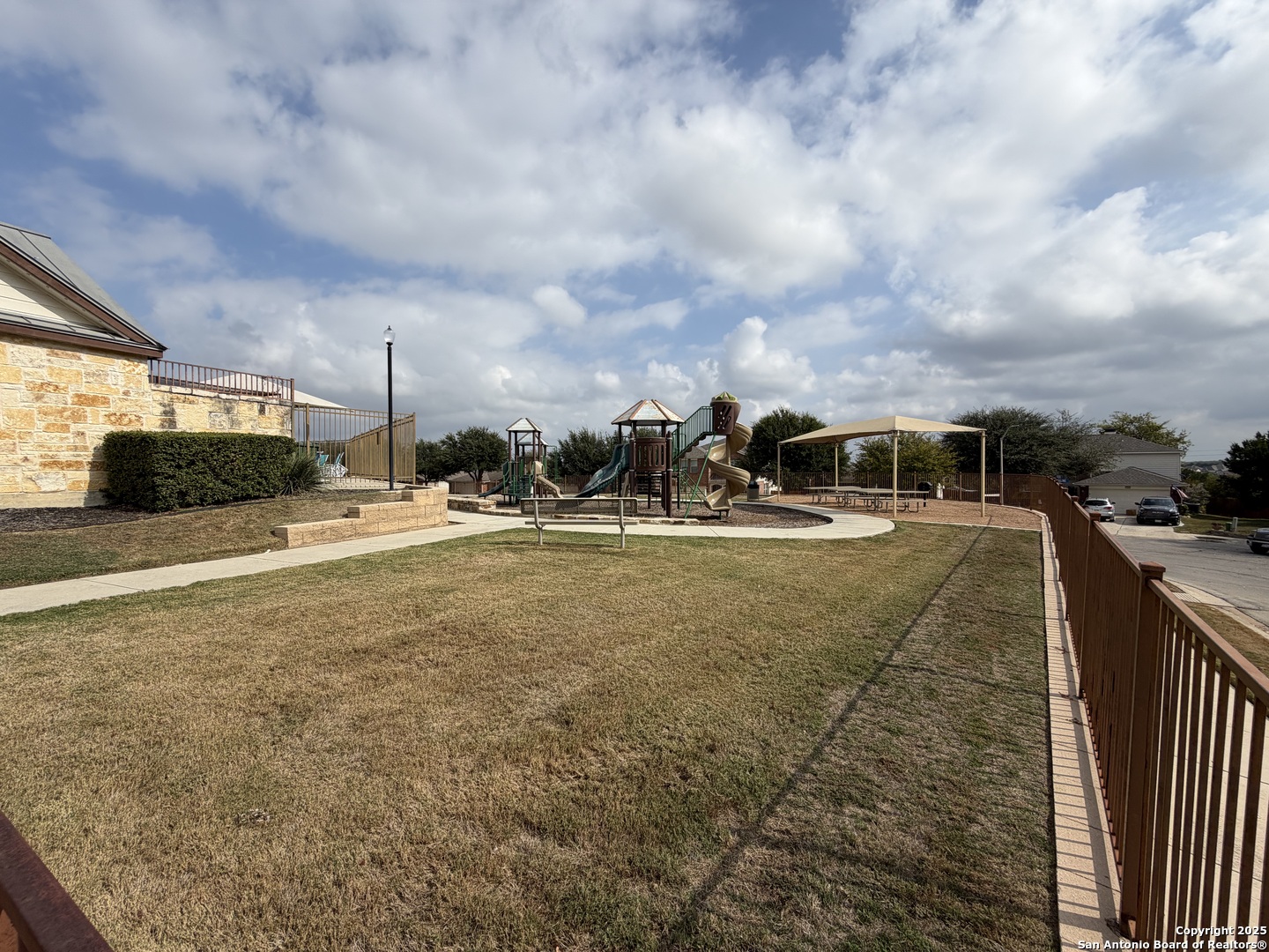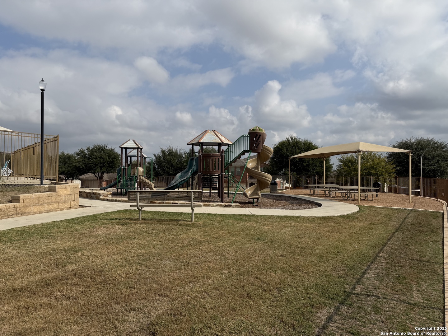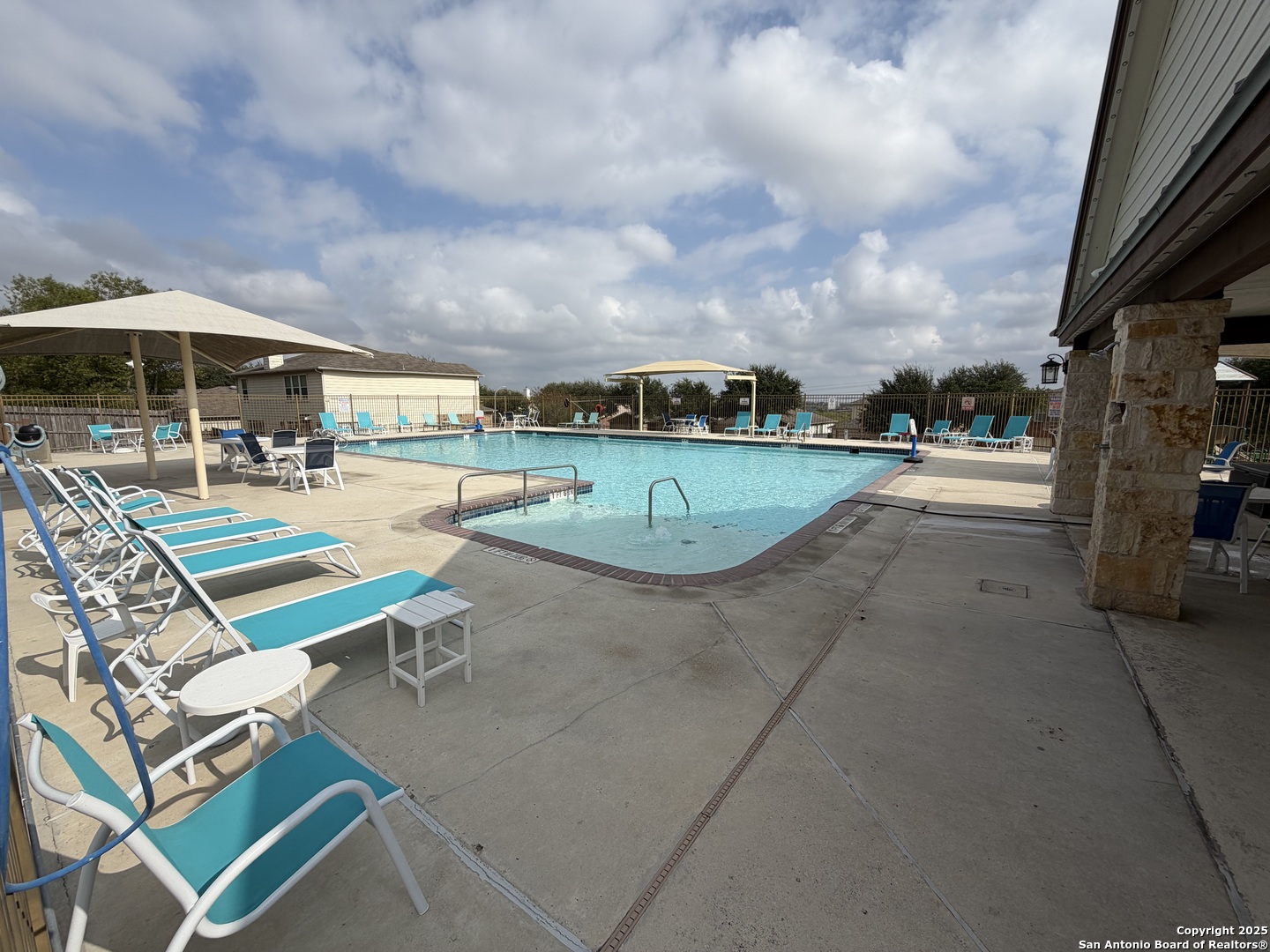 Charming beautifully maintained one-story home nestled on a corner lot offering the perfect blend of comfort, style, and convenience in the heart of Cibolo. Walking distance to the community pool & playground. Located in a quiet, family-friendly community with easy access to shopping, dining, Randolph AFB, and Schertz-Cibolo school district, this home is truly a must-see. Step inside to an inviting open-concept layout designed for modern living. The spacious living area flows seamlessly into the dining space and kitchen-ideal for entertaining or everyday comfort. Large windows fill the space with natural light, creating a warm and welcoming atmosphere. The kitchen features ample cabinetry, granite countertops, stainless steel appliances, and a functional layout perfect for both cooking and hosting. The primary suite offers a peaceful retreat with an ensuite bathroom, walk-in closet, separate shower & garden tub, & double vanity. Secondary bedrooms are separate from master & provide excellent flexibility for guests, kids, a home office, or a hobby room. Enjoy outdoor living in the private backyard-great for weekend barbecues, pets, or simply relaxing. Covered patio in front & back. The property also includes an attached 2 car garage w/ opener, mature landscaping, and a clean, move-in ready presentation.