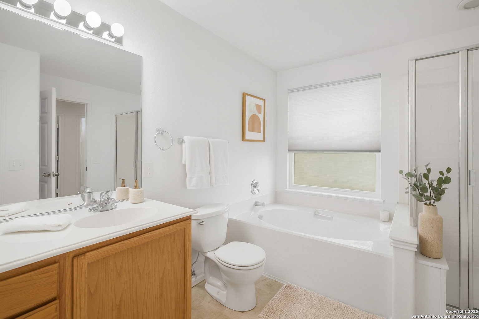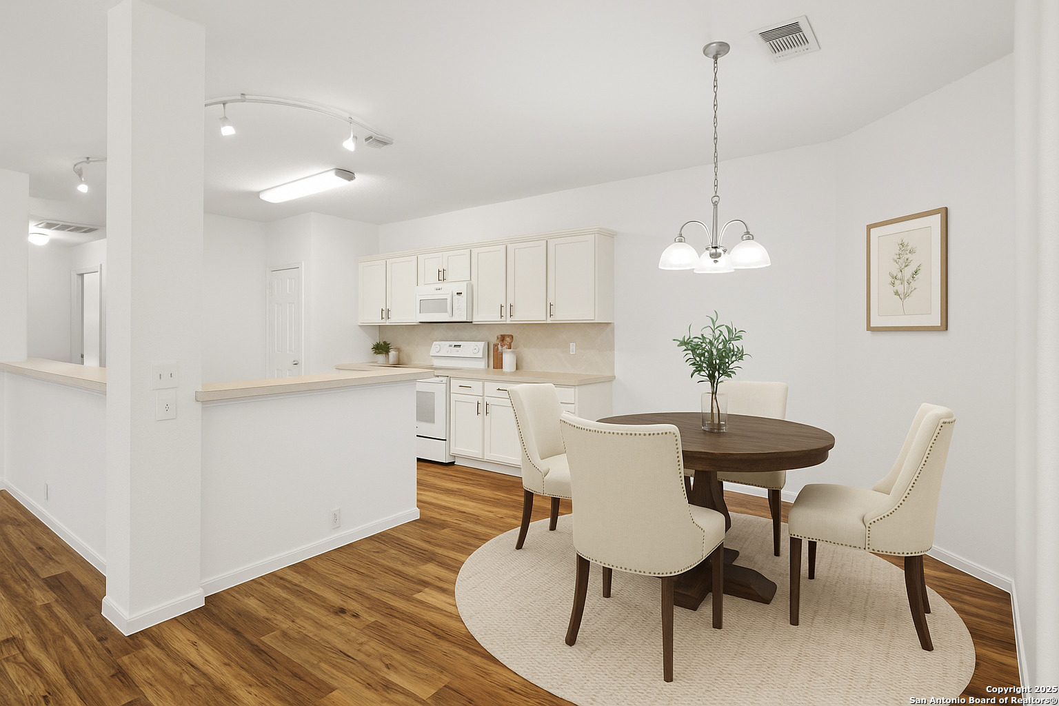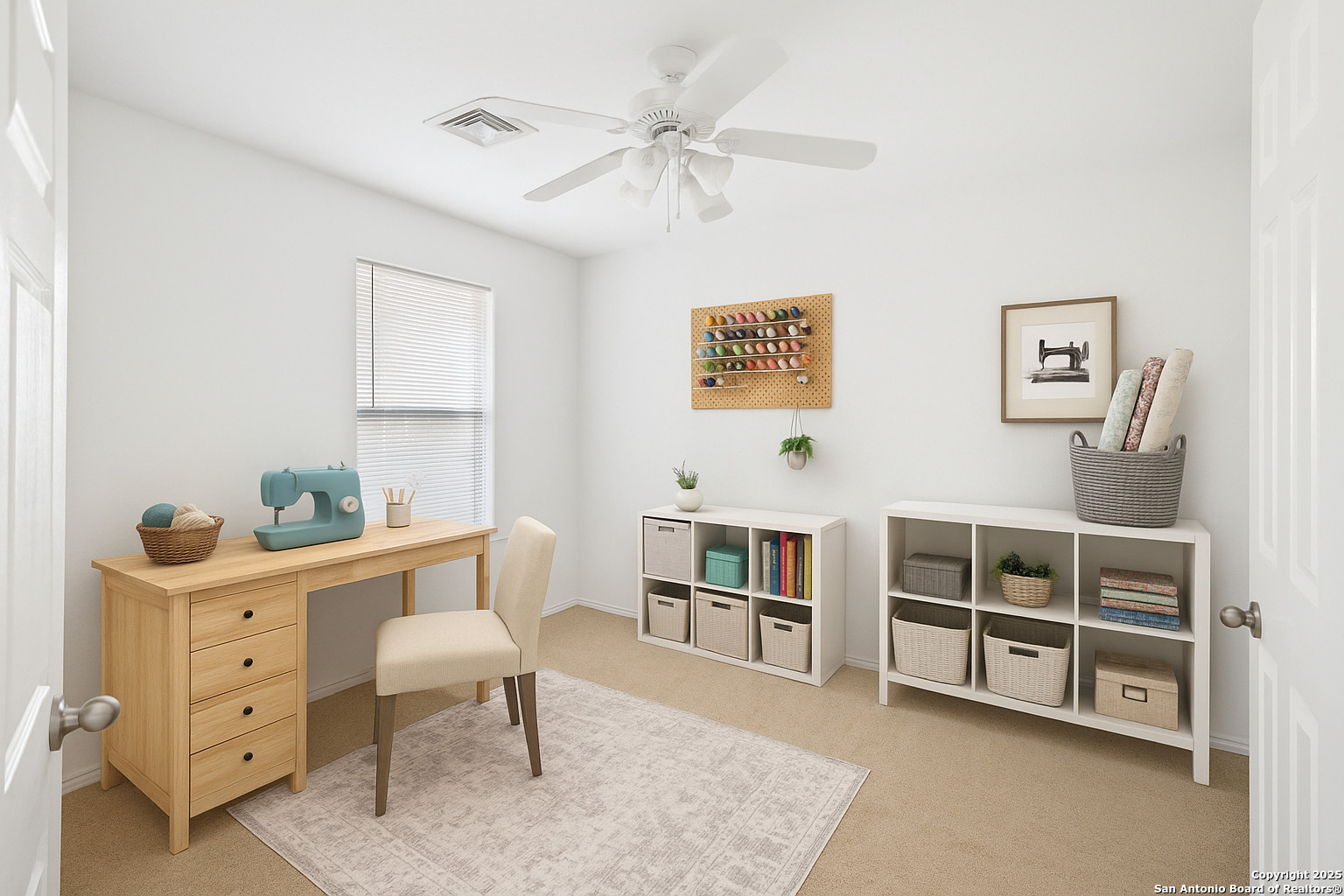 Located on a quiet cul-de-sac and corner lot in the Fairways at Scenic Hills, this well-maintained one-story Pulte home features the popular Orleans II floor plan with 3 bedrooms, 2 full baths, and a private home office with French doors. Recent updates include new hardwood flooring, brand new carpet, fresh interior paint, updated blinds, recent water heater, and smoke detectors. The open kitchen offers bar seating, ample storage, and connects seamlessly to the living and dining areas-perfect for gatherings. The spacious primary suite includes a walk-in closet and a renovated bath with dual vanities, a soaking tub, and a walk-in shower. Enjoy the oversized covered back patio with ceiling fan, mature trees, gutters, and a large, enclosed workshop or storage space. Foundation & plumbing upgrades recently completed with a transferable warranty. With no Bexar County taxes, recent landscaping, and access to top-rated Comal ISD schools, this move-in ready home offers unbeatable value and charm.