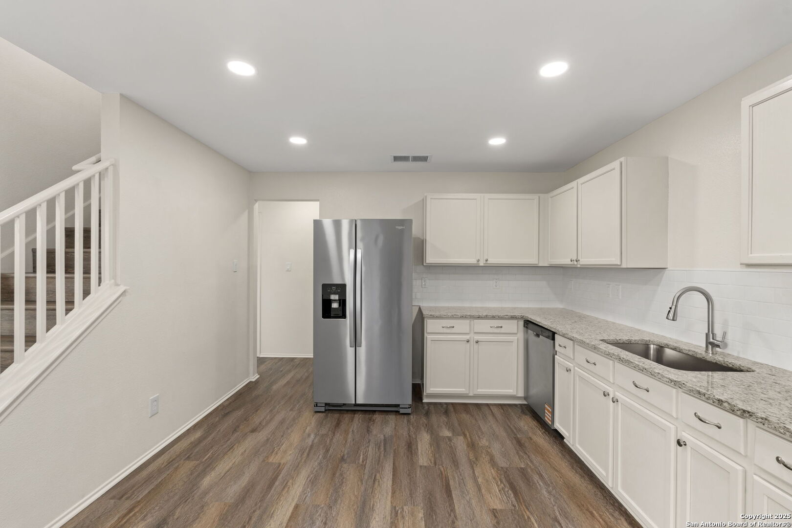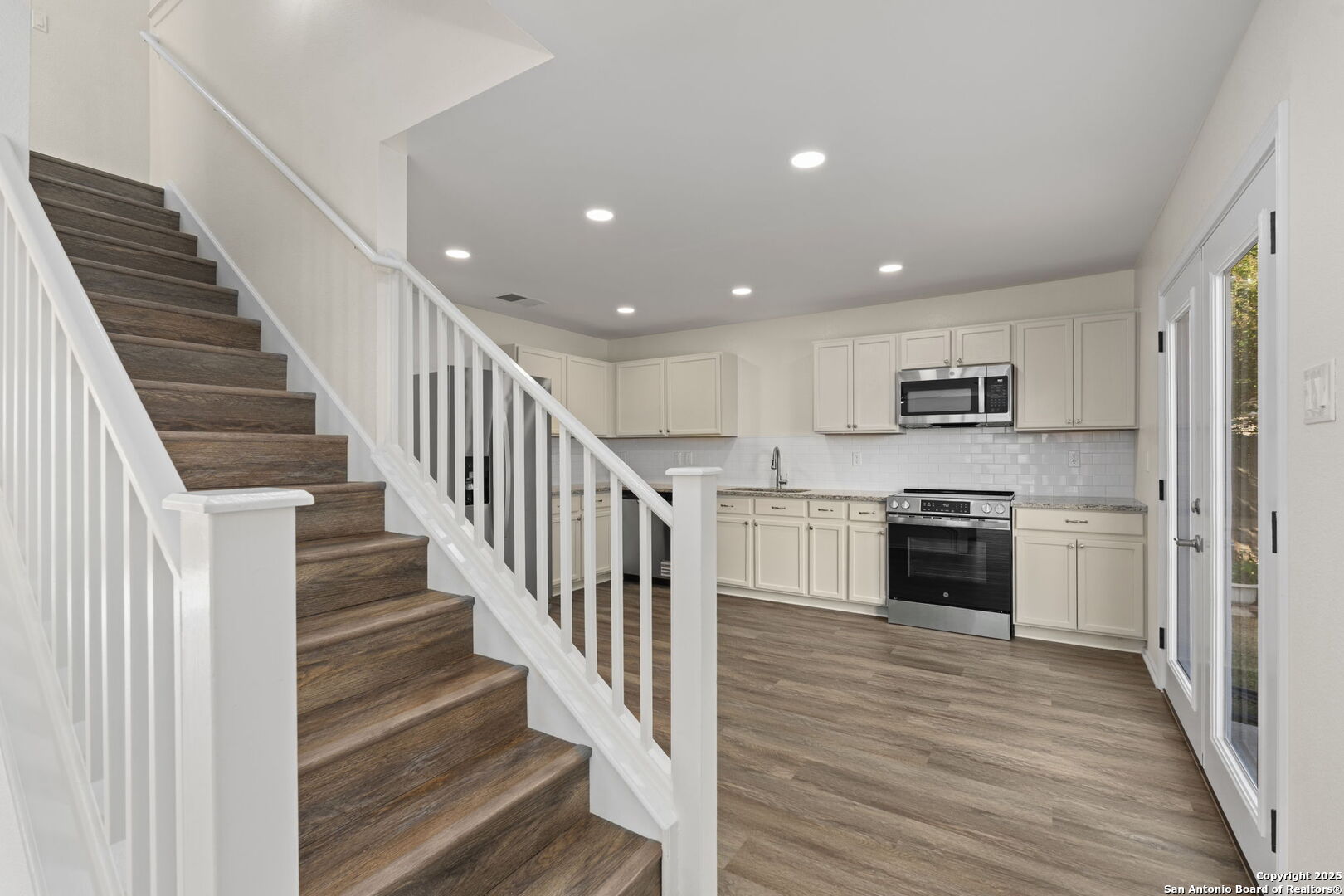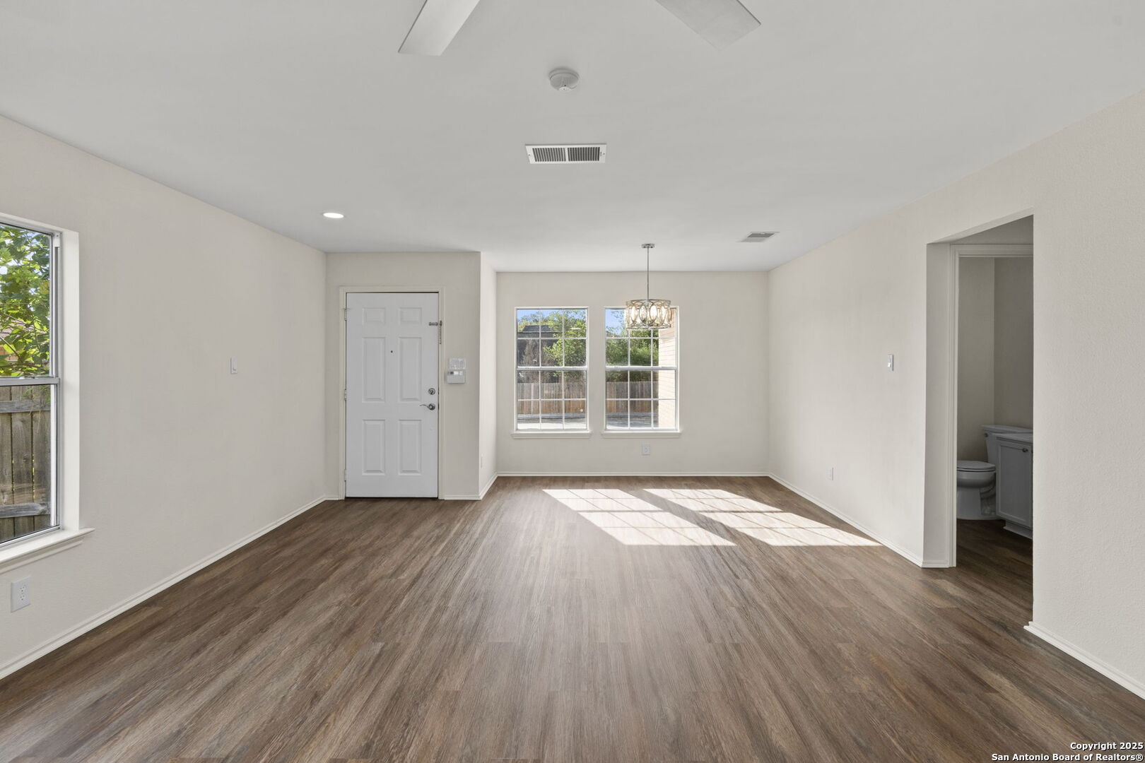 Fresh updates and timeless design define this beautifully maintained 3-bedroom, 2.5-bath move-in ready home in Converse, Texas, cared for by its original owner since 2000. Recent renovations create a bright, open-concept layout filled with natural light and modern finishes, including new French doors, luxury vinyl plank flooring, fresh paint, updated lighting, and ceiling fans throughout. The spacious eat-in kitchen is a true centerpiece, featuring granite countertops, a new stainless steel sink, and stainless steel appliances perfect for everyday living or hosting guests. Upstairs, all bedrooms are thoughtfully arranged for privacy and functionality. The primary suite includes a walk-in closet and an updated en-suite bath, while secondary bedrooms provide flexible space for a home office, hobby room, or visitors. Outdoors, enjoy a large, shaded backyard with mature oak trees, ideal for relaxing, gardening, or entertaining. With its no-carpet interior, low-maintenance design, and fresh modern updates, this home is ready to enjoy from day one. Conveniently located minutes from Randolph Air Force Base, Converse North Park, and Live Oak Shopping Center, this property offers easy access to major highways, local dining, and everyday conveniences. Experience move-in ready comfort. Schedule your private showing today!