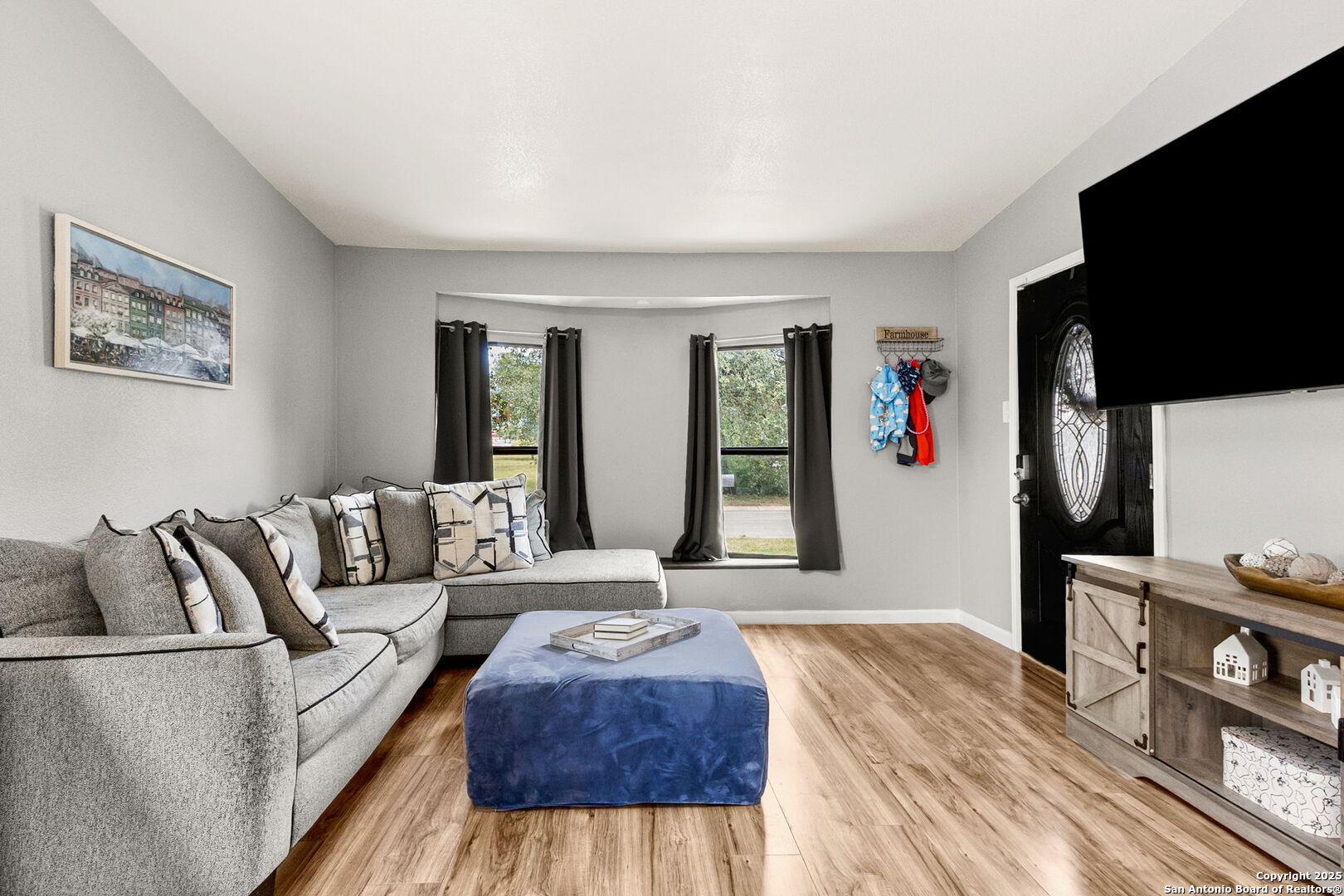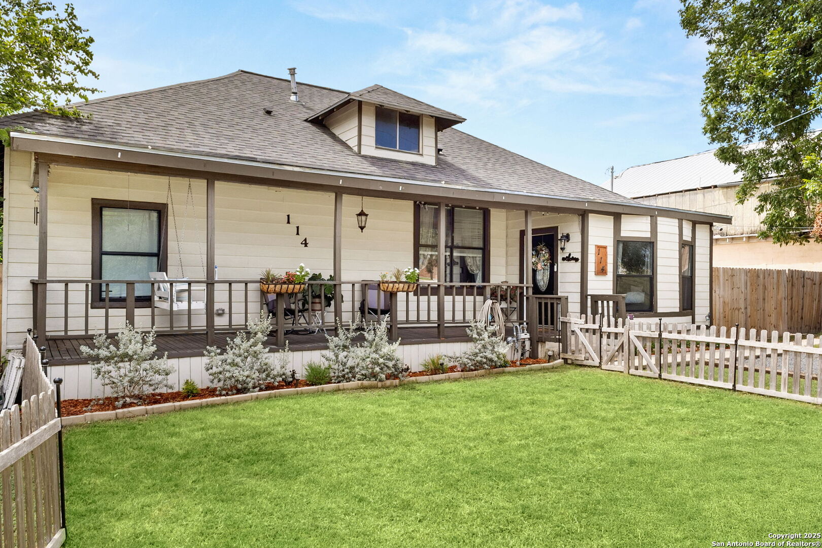 Welcome to 114 Avenue B. This beautifully updated 3-bedroom, 3-bath single-story home is full of warmth, character, and modern upgrades. Built in 1912 and thoughtfully renovated, this 1,600 sqft residence sits on a spacious 1/4-acre lot with a brand new gravel driveway, elegant landscaping, and a large, private yard perfect for outdoor entertaining or future expansion. Step onto the inviting front porch, complete with a classic swing, the perfect spot to unwind. Inside, you'll love the open-concept layout featuring farmhouse inspired wood planking in the dining area, an updated kitchen with modern finishes, and stylishly refreshed bathrooms. Expansive new windows in the primary suite and family room let in loads of natural light, blending the home's original charm with contemporary comfort. Located just minutes from Loop 1604, Randolph AFB, Converse City Park, and a variety of local shops and restaurants, this home offers both convenience and tranquility in a fast-growing area. Don't miss this rare blend of historic character and modern living - schedule your showing today!