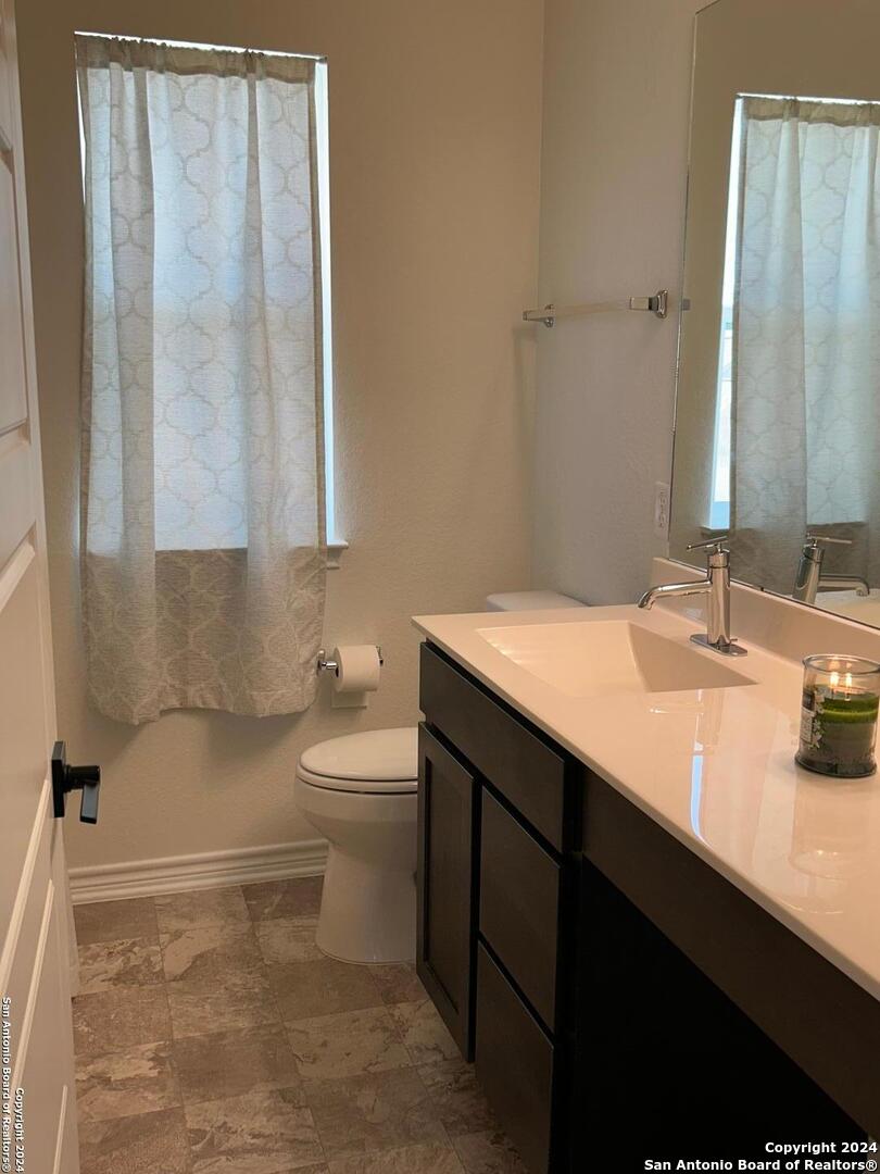 Enjoy this beautiful home with an open floor plan that contains 2 living areas. The kitchen boasts stainless steel Whirlpool appliances, including a microwave/hood combo, Shaker panel, 42-in. upper cabinets, quartz countertops and tile backsplash. The refrigerator, washer and dryer will convey. Relax in the primary bath with a raised vanity, garden tub, and a separate shower. Enjoy the privacy of your fenced backyard featuring an automatic sprinkler system to help maintain your lawn. There are no neighbors to the back of the home. Additional features include a high ceilings, reverse osmosis system, a soft water loop, wired for security system, built-in pest control system, designated gas for your BBQ grill. Don't miss the chance to make this stunning 2 story home your own. Schedule a viewing today and discover all the wonderful features this property has to offer! Close to JBSA and the Forum shopping center.
