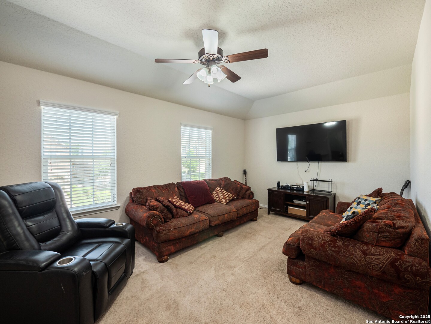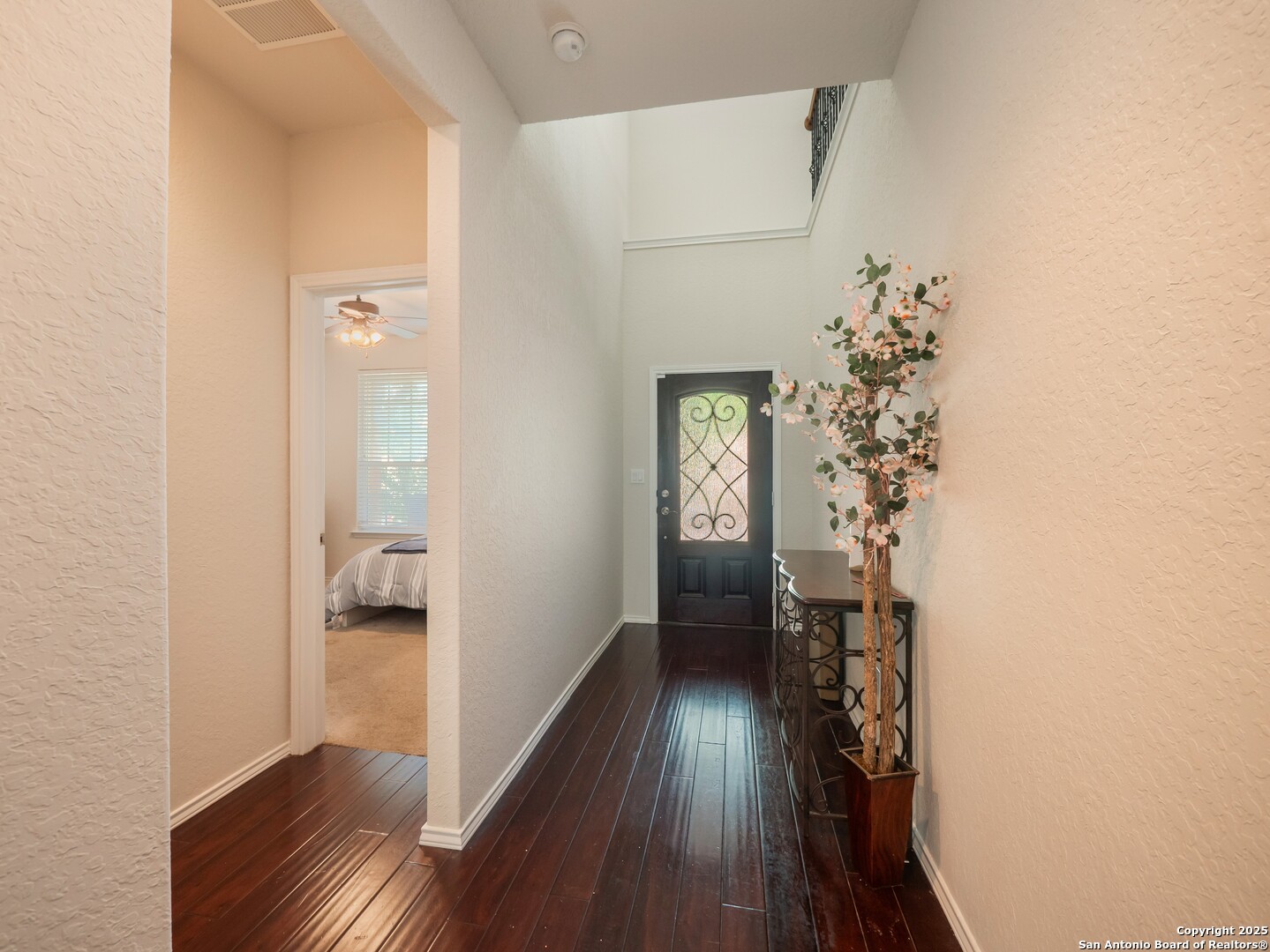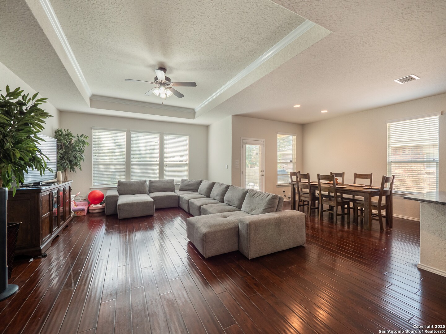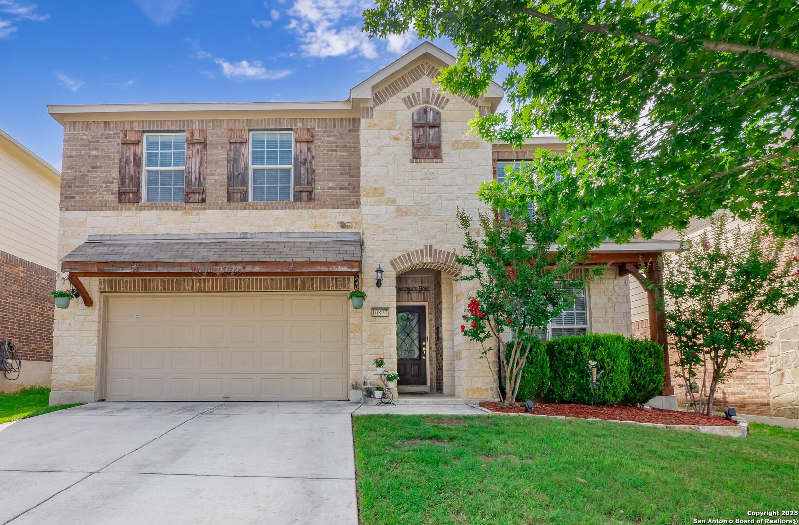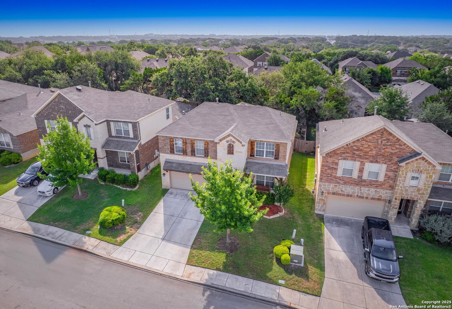 Welcome to this beautifully designed 5-bedroom, 4-bath, two-story home offering 2,923 sq ft of comfortable living space on a 0.14-acre lot. This home combines thoughtful design with everyday functionality. Step into a high-ceiling foyer that leads into an open-concept layout featuring a spacious living, dining, and kitchen combo. A tray ceiling highlights the living room, while the huge kitchen island offers plenty of prep and seating space - perfect for entertaining. A mudroom, a dedicated office, and a laundry room are all conveniently located on the main level. The primary bedroom is located on the main floor and boasts a spacious walk-in closet and a private ensuite bath with a dual vanity and walk-in shower. A secondary bedroom is also located downstairs, offering flexible space for guests or multigenerational living. All bedrooms are carpeted for added comfort. Upstairs, you'll find a carpeted versatile game room or media room, along with an additional office, ideal for remote work or study space. Enjoy the outdoors on the covered patio slab overlooking a fully fenced wooden backyard - perfect for relaxing or entertaining. Additional highlights include a two-car attached garage, sidewalk and curb appeal. Located in a quiet, low-traffic neighborhood - perfect for casual walks at any time of day - and just five lots down from the neighborhood playground. Perfectly situated just minutes from Dean H. Krueger Elementary School, H-E-B Plus, Walmart, and Neighborhood Walmart. Offers easy access to Loop 1604 and is centrally located between Alamo Ranch and La Cantera, and conventionally positioned between major attractions like SeaWorld and Six Flags Fiesta Texas. Close to Old Town Helotes, which hosts a farmers market on the first Saturday of each month. The City of Helotes also features annual events such as a rodeo, carnival, and parades - including Christmas parade. This home offers space, flexibility, and convenience - all in one well-appointed package. Schedule your tour today!