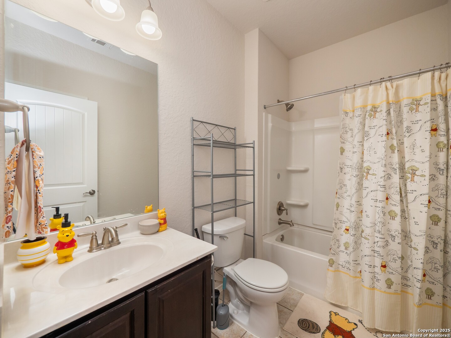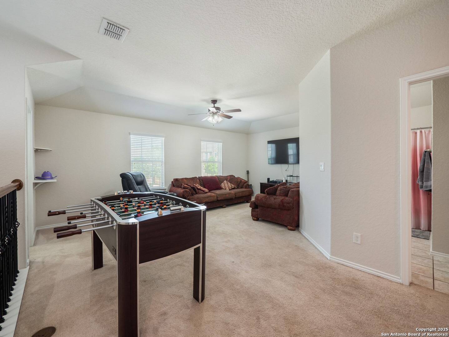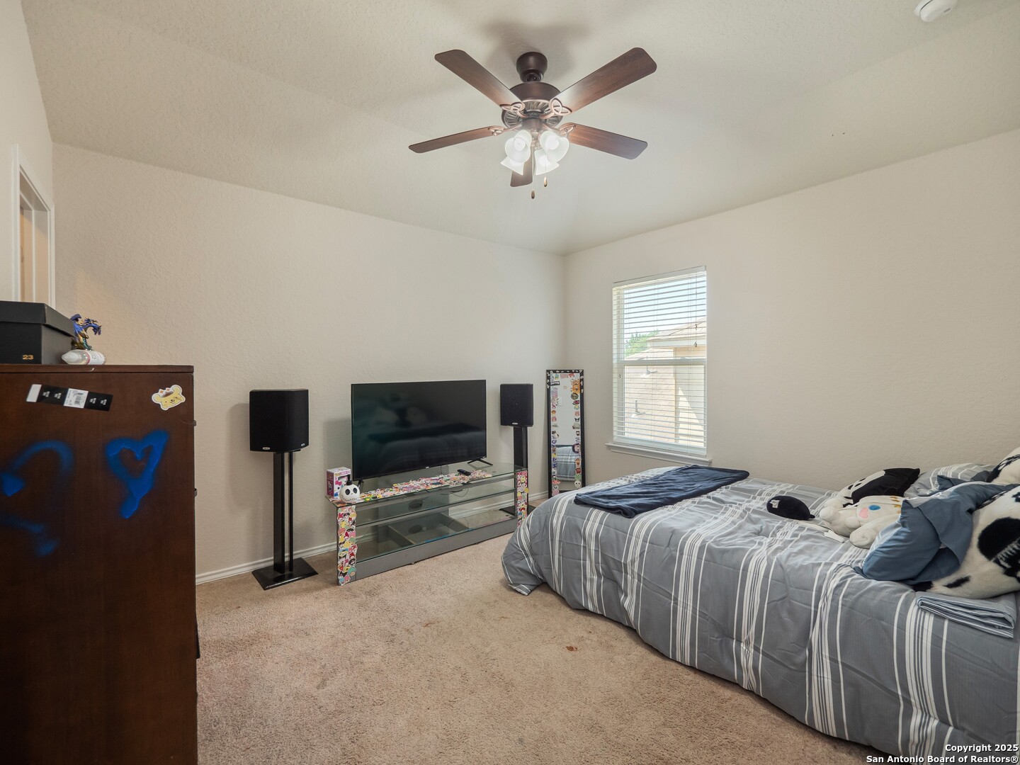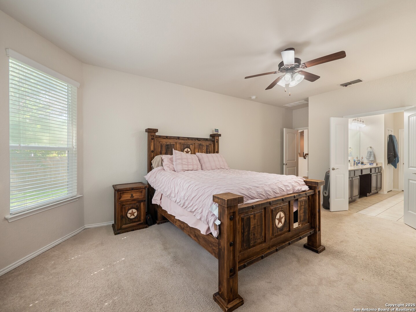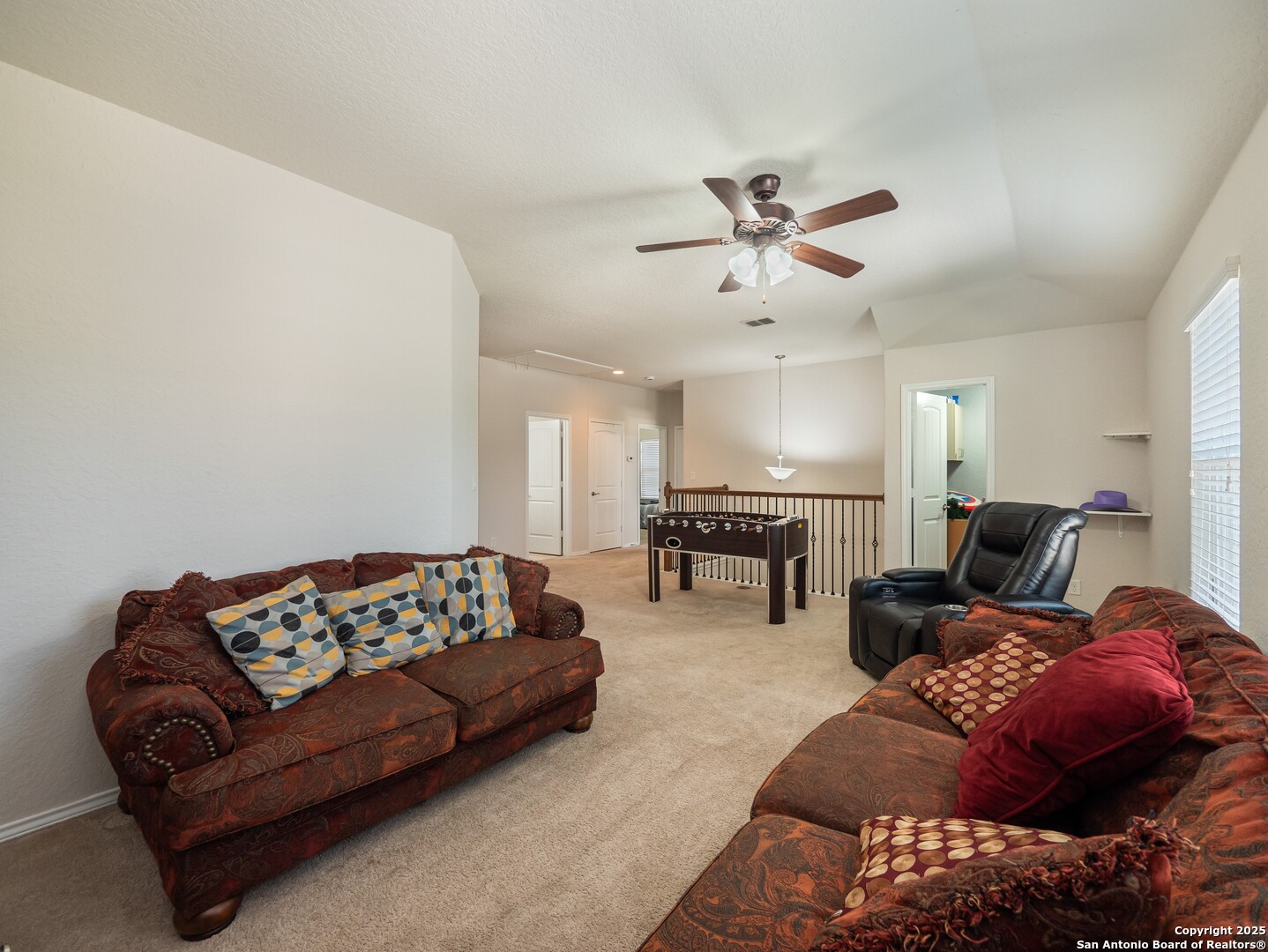 Welcome to this beautifully designed 5-bedroom, 4-bath, two-story home offering 2,923 sq ft of comfortable living space on a 0.14-acre lot. This home combines thoughtful design with everyday functionality. Step into a high-ceiling foyer that leads into an open-concept layout featuring a spacious living, dining, and kitchen combo. A tray ceiling highlights the living room, while the huge kitchen island offers plenty of prep and seating space - perfect for entertaining. A mudroom, a dedicated office, and a laundry room are all conveniently located on the main level. The primary bedroom is located on the main floor and boasts a spacious walk-in closet and a private ensuite bath with a dual vanity and walk-in shower. A secondary bedroom is also located downstairs, offering flexible space for guests or multigenerational living. All bedrooms are carpeted for added comfort. Upstairs, you'll find a carpeted versatile game room or media room, along with an additional office, ideal for remote work or study space. Enjoy the outdoors on the covered patio slab overlooking a fully fenced wooden backyard - perfect for relaxing or entertaining. Additional highlights include a two-car attached garage, sidewalk and curb appeal. Located in a quiet, low-traffic neighborhood - perfect for casual walks at any time of day - and just five lots down from the neighborhood playground. Perfectly situated just minutes from Dean H. Krueger Elementary School, H-E-B Plus, Walmart, and Neighborhood Walmart. Offers easy access to Loop 1604 and is centrally located between Alamo Ranch and La Cantera, and conventionally positioned between major attractions like SeaWorld and Six Flags Fiesta Texas. Close to Old Town Helotes, which hosts a farmers market on the first Saturday of each month. The City of Helotes also features annual events such as a rodeo, carnival, and parades - including Christmas parade. This home offers space, flexibility, and convenience - all in one well-appointed package. Schedule your tour today!
