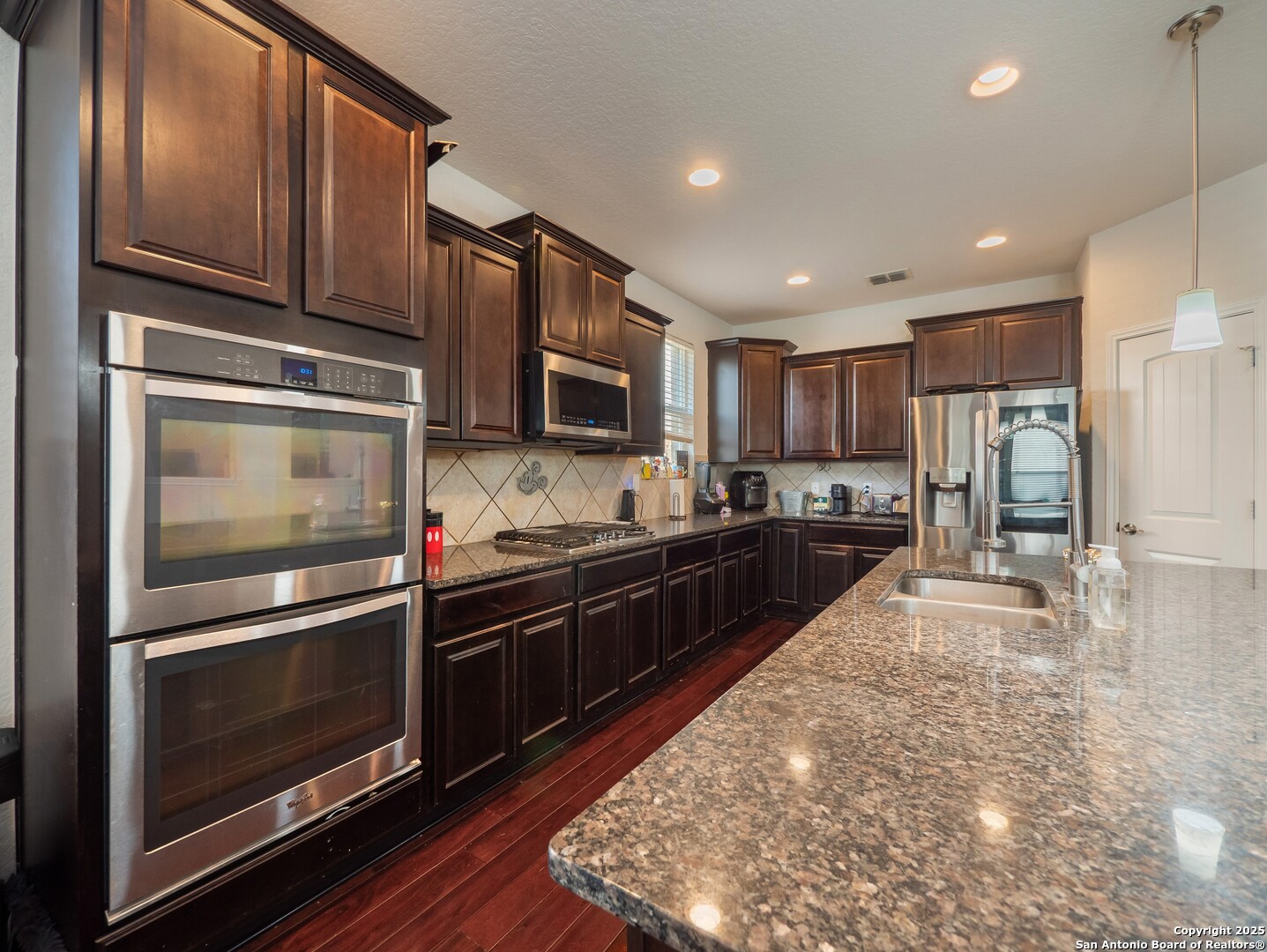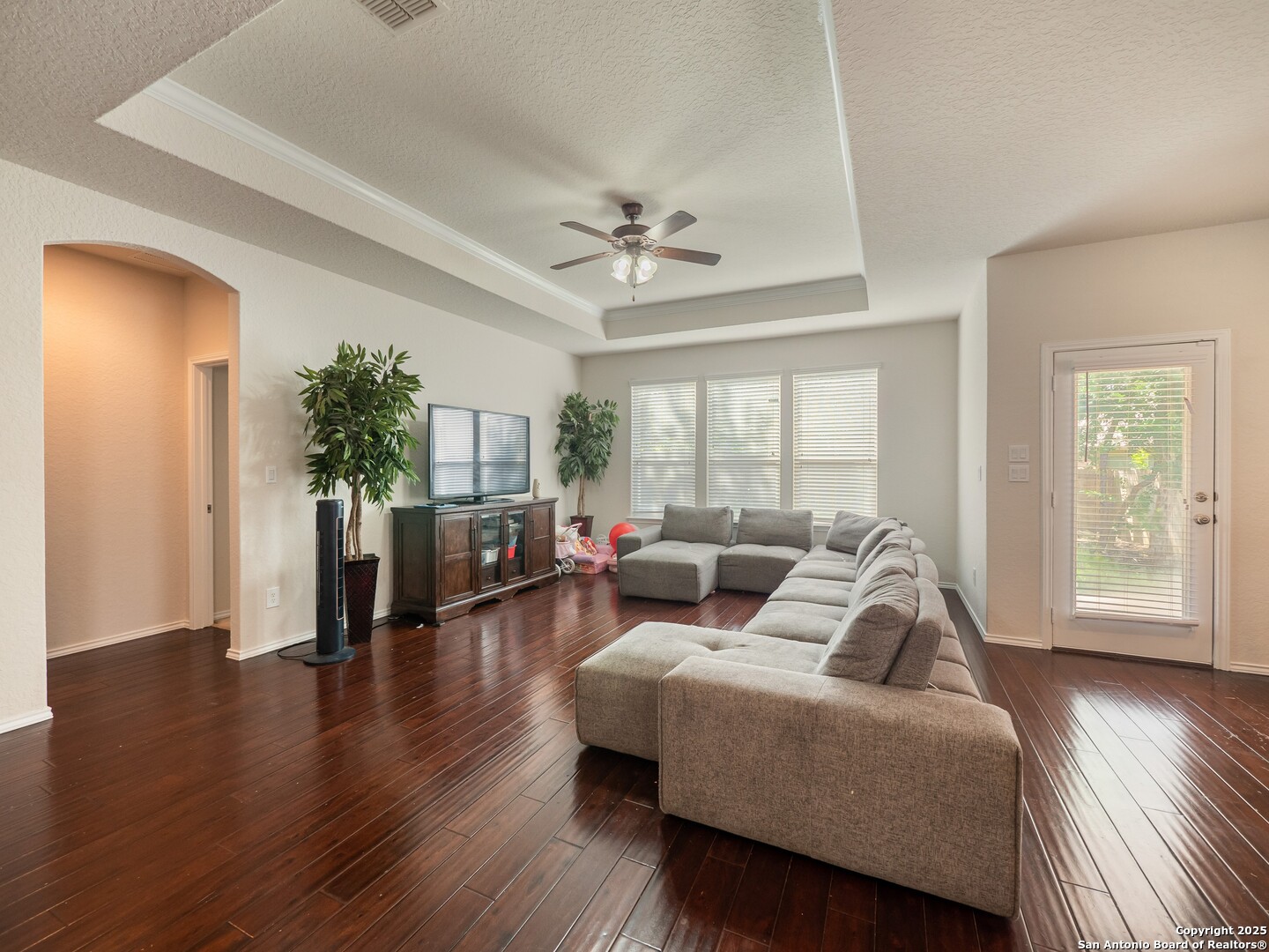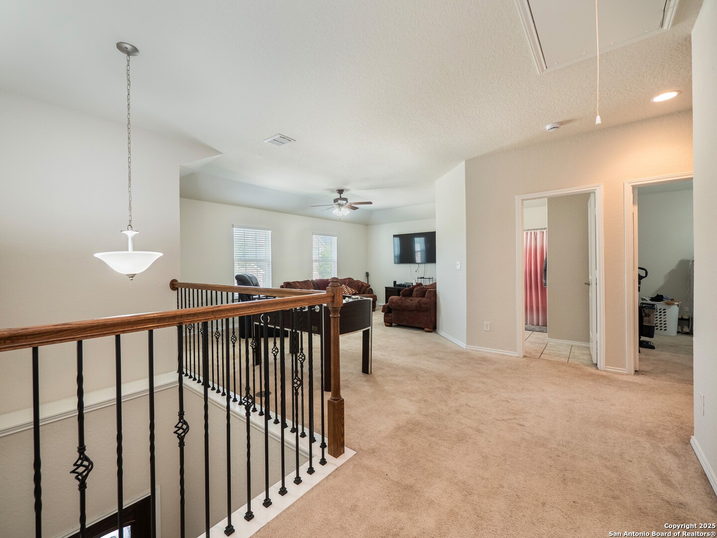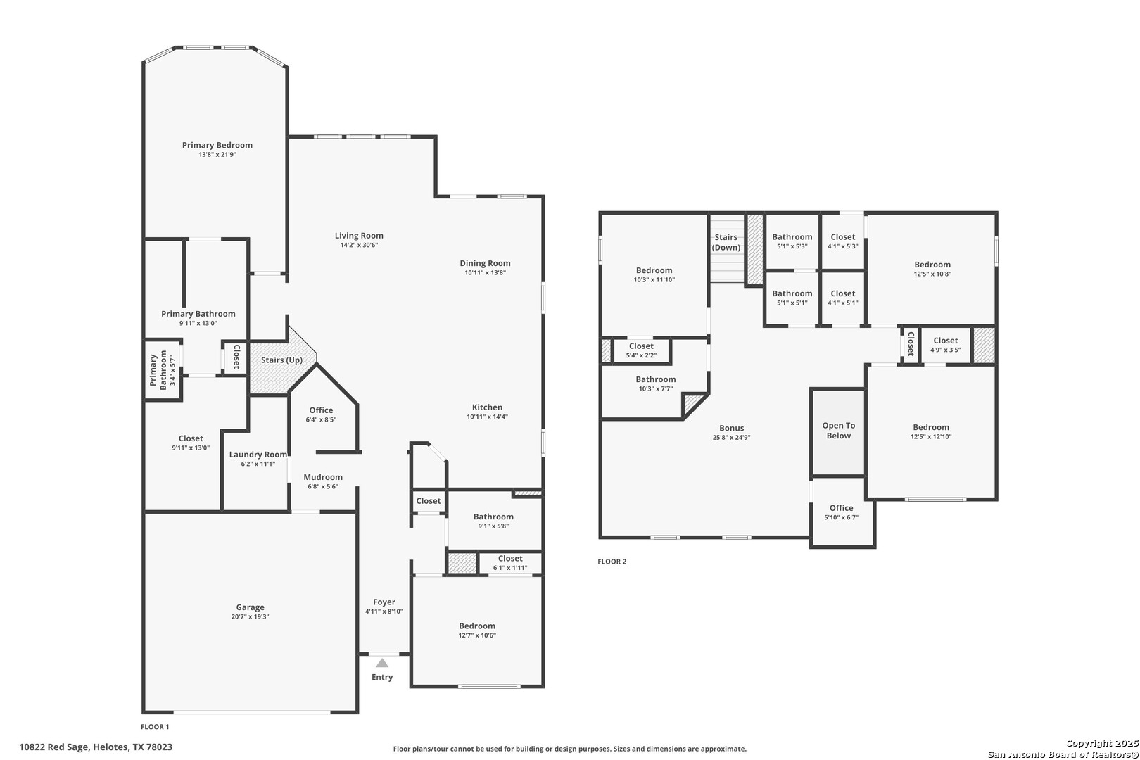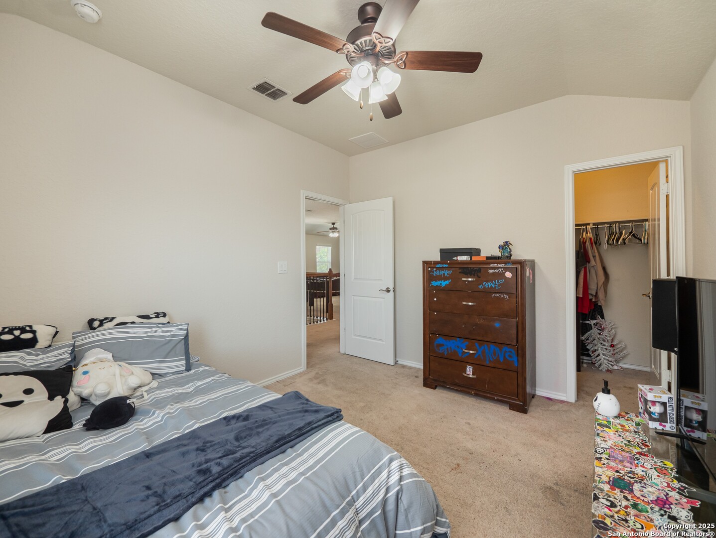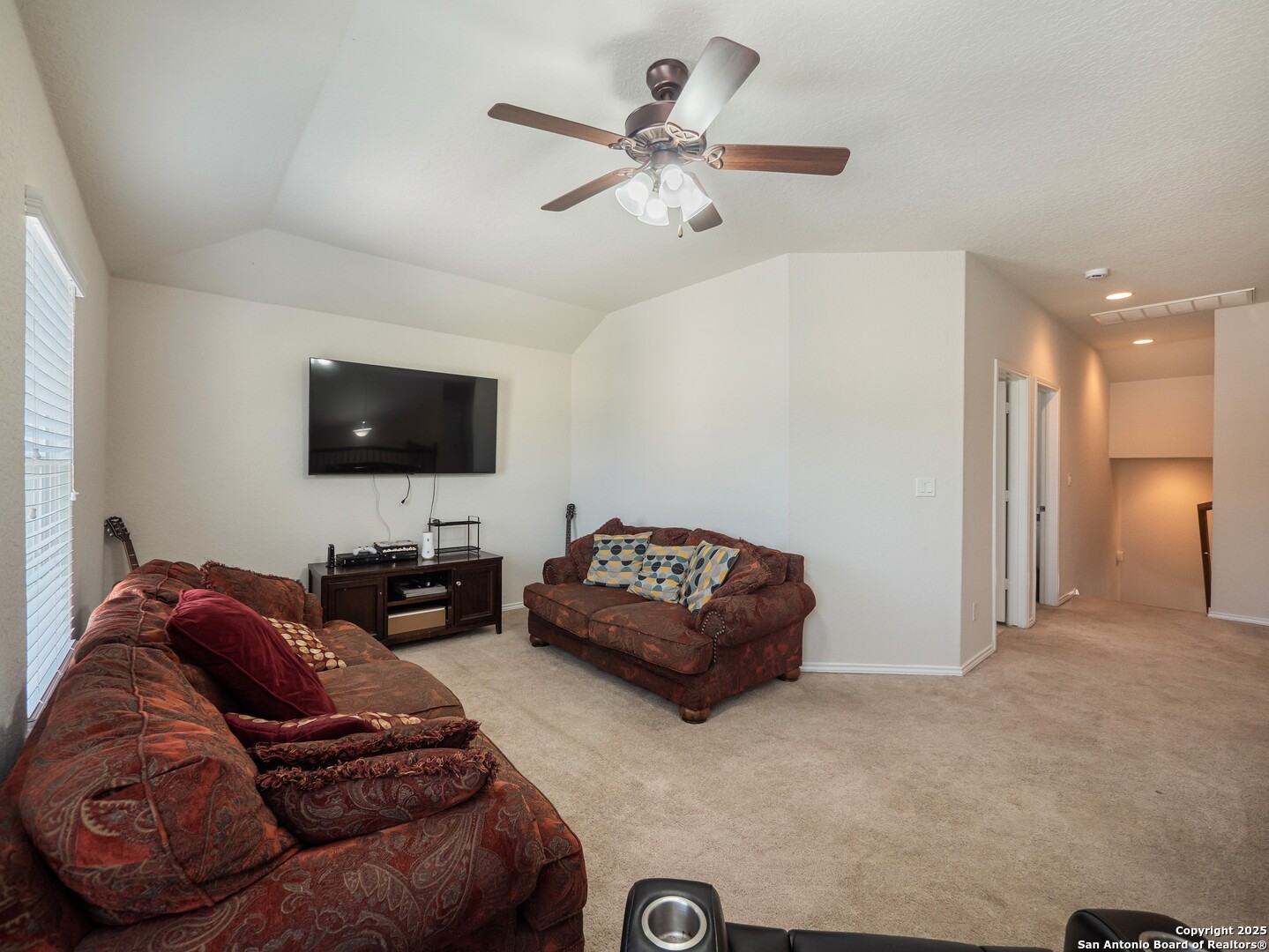 Welcome to this beautifully designed 5-bedroom, 4-bath, two-story home offering 2,923 sq ft of comfortable living space on a 0.14-acre lot. This home combines thoughtful design with everyday functionality. Step into a high-ceiling foyer that leads into an open-concept layout featuring a spacious living, dining, and kitchen combo. A tray ceiling highlights the living room, while the huge kitchen island offers plenty of prep and seating space - perfect for entertaining. A mudroom, a dedicated office, and a laundry room are all conveniently located on the main level. The primary bedroom is located on the main floor and boasts a spacious walk-in closet and a private ensuite bath with a dual vanity and walk-in shower. A secondary bedroom is also located downstairs, offering flexible space for guests or multigenerational living. All bedrooms are carpeted for added comfort. Upstairs, you'll find a carpeted versatile game room or media room, along with an additional office, ideal for remote work or study space. Enjoy the outdoors on the covered patio slab overlooking a fully fenced wooden backyard - perfect for relaxing or entertaining. Additional highlights include a two-car attached garage, sidewalk and curb appeal. Located in a quiet, low-traffic neighborhood - perfect for casual walks at any time of day - and just five lots down from the neighborhood playground. Perfectly situated just minutes from Dean H. Krueger Elementary School, H-E-B Plus, Walmart, and Neighborhood Walmart. Offers easy access to Loop 1604 and is centrally located between Alamo Ranch and La Cantera, and conventionally positioned between major attractions like SeaWorld and Six Flags Fiesta Texas. Close to Old Town Helotes, which hosts a farmers market on the first Saturday of each month. The City of Helotes also features annual events such as a rodeo, carnival, and parades - including Christmas parade. This home offers space, flexibility, and convenience - all in one well-appointed package. Schedule your tour today!